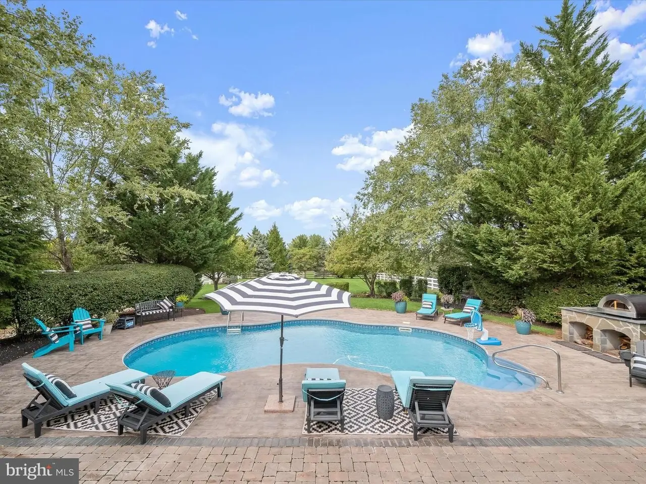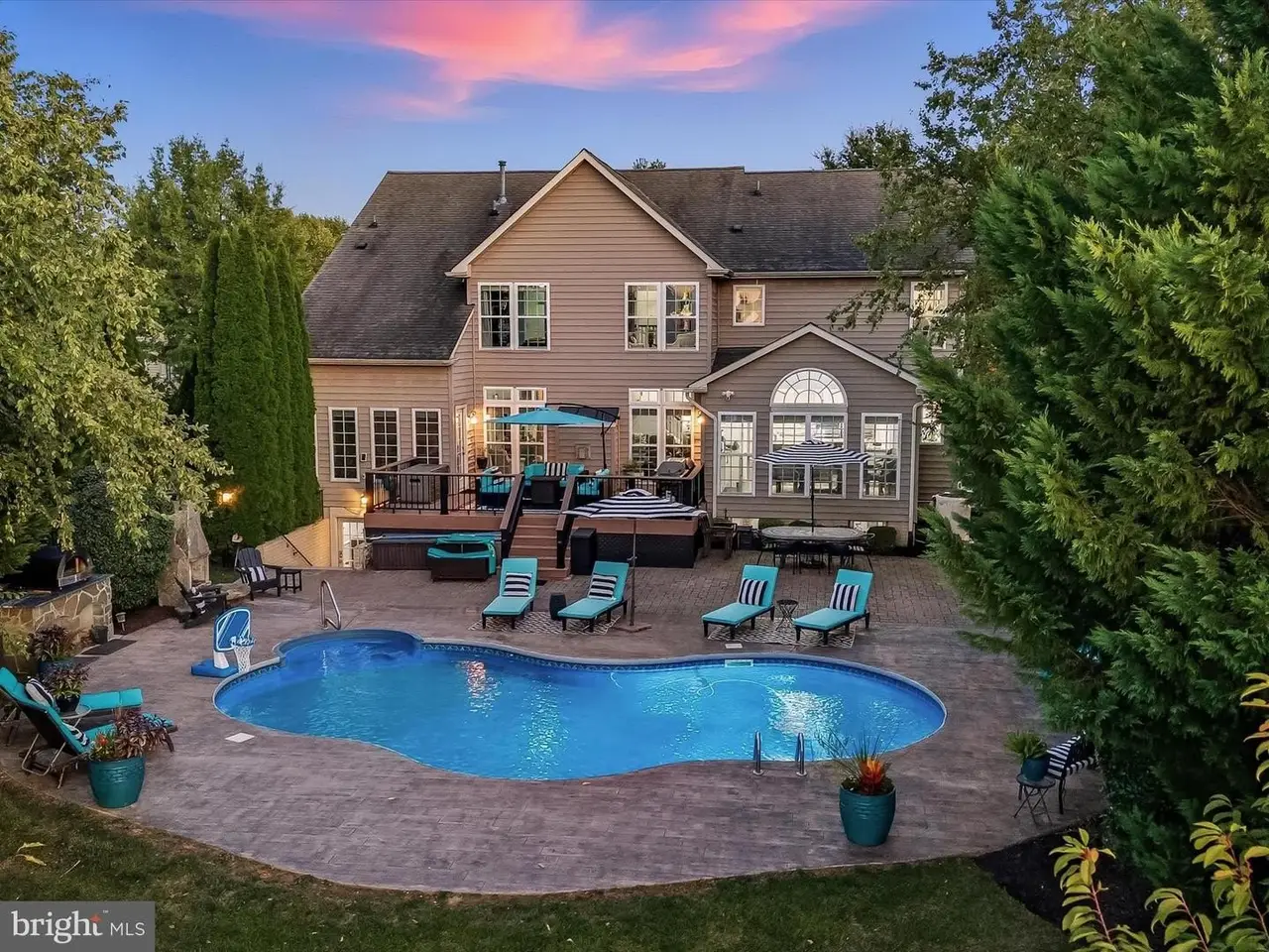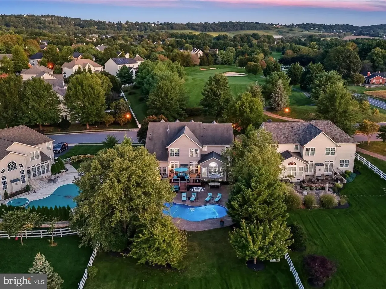 This gracious home was designed to promote relaxation and effortless entertaining and was custom re-designed by All Together Design, LLC Interiors. Located in beautiful Middletown, Maryland with mountain views from the front and back of the home, this home was landscaped by Gardens of Eden and features beautiful mature trees all around the property providing a private backyard oasis! Situated on one half acre of fully fenced in yard with two gates on a popular golf course, this home offers resort style living with a heated in ground pool, large stamped concrete patio, generous Wolfe Deck, stone fireplace, and a custom industrial pizza oven on a stone and leathered granite stand. The home sits on the largest lot in the Glenbrook community and is a short walk to award winning schools, restaurants and shopping on the fully lighted sidewalks that are all throughout the neighborhood! Glenbrook features three play grounds, a soccer field, walking trails, and more! The home features gleaming new wide plank solid Bella hardwood floors throughout the main level, second floor hallway and office. A custom designed wrought iron staircase greets you in the large foyer. The lower level features a fully finished basement complete with a home gym with custom rubber flooring, a newly renovated full bathroom, a large open area with brand new LVP wide plank flooring, a bedroom, a beautiful gas fireplace, a built in beverage station with dual wine fridges, and a walk up basement. The main floor features a newly renovated gourmet kitchen complete with stainless steel Bosch appliances including a custom designed island with built-in drawer microwave. A generous walk-in pantry with solid wood shelving can store everything you need to entertain, while the custom beverage station with dual zone temperature control LED lighted fridge, matching custom cut Dolomite counter tops, a Ruvati sink and work station complete with cutting board, dish rack, and fruit basket and a convenient and stunning pot filler on Italian marble herringbone backsplash located over the 6 burner gas cooktop, round out this beautiful kitchen. This home won't last long!