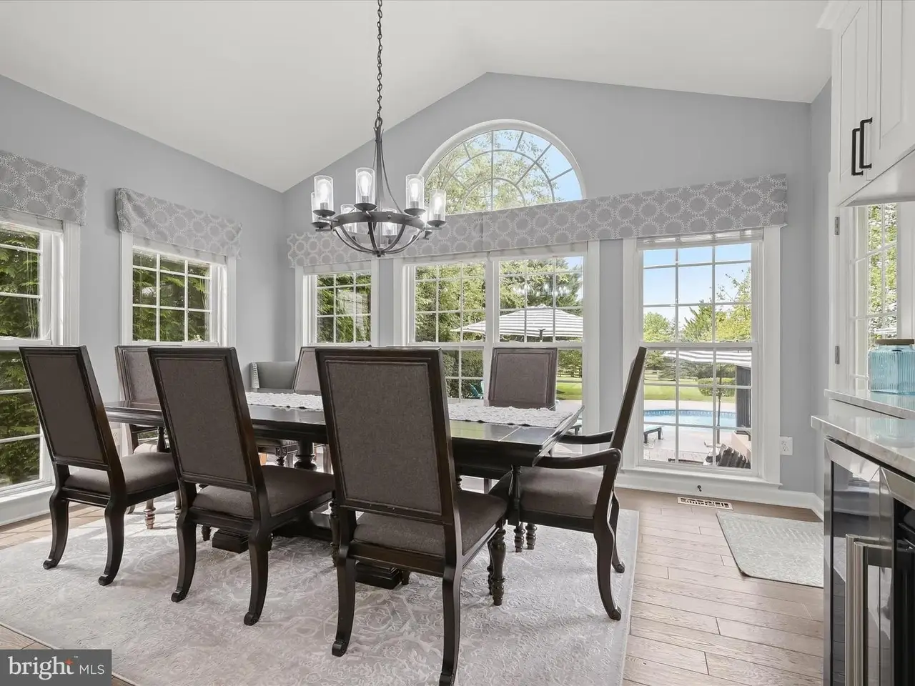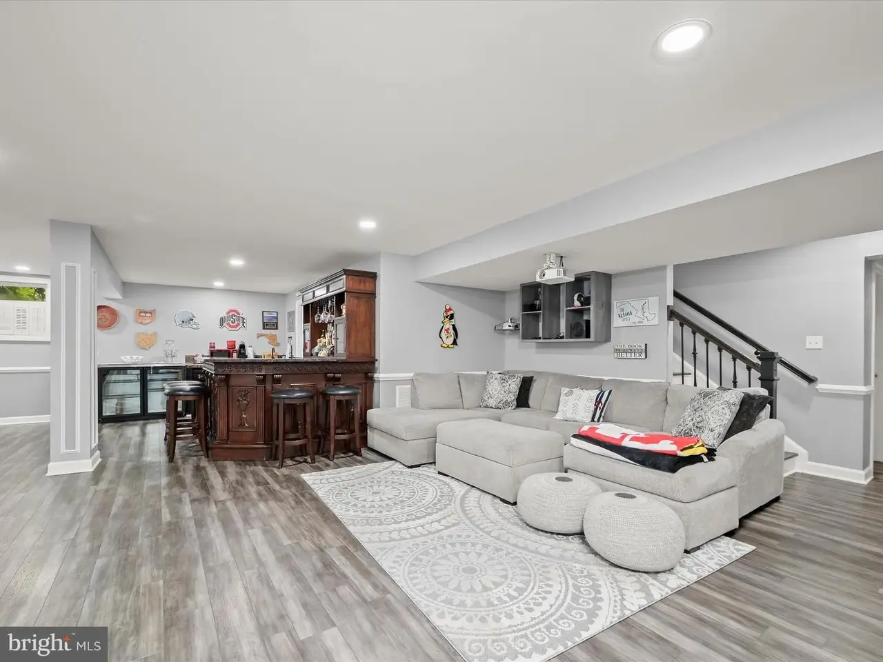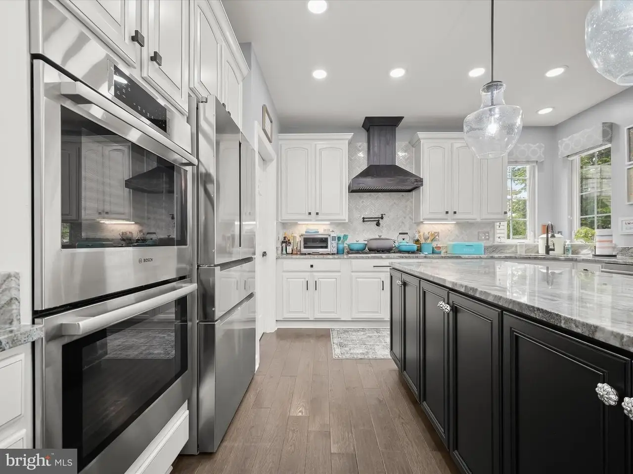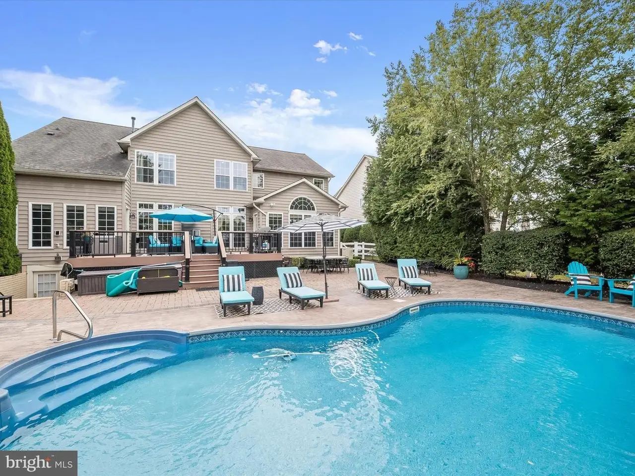 This gracious home was designed to promote relaxation and effortless entertaining and was custom re-designed by All Together Design, LLC Interiors. Located in beautiful Middletown, Maryland with mountain views from the front and back of the home, this home was landscaped by Gardens of Eden and features beautiful mature trees all around the property providing a private backyard oasis! Situated on one half acre of fully fenced in yard with two gates on a popular golf course, this home offers resort style living with a heated in ground pool, large stamped concrete patio, generous Wolfe Deck, stone fireplace, and a custom industrial pizza oven on a stone and leathered granite stand. The home sits on the largest lot in the Glenbrook community and is a short walk to award winning schools, restaurants and shopping on the fully lighted sidewalks that are all throughout the neighborhood! Glenbrook features three play grounds, a soccer field, walking trails, and more! The home features gleaming new wide plank solid Bella hardwood floors throughout the main level, second floor hallway and office. A custom designed wrought iron staircase greets you in the large foyer. The lower level features a fully finished basement complete with a home gym with custom rubber flooring, a newly renovated full bathroom, a large open area with brand new LVP wide plank flooring, a bedroom, a beautiful gas fireplace, a built in beverage station with dual wine fridges, and a walk up basement. The main floor features a newly renovated gourmet kitchen complete with stainless steel Bosch appliances including a custom designed island with built-in drawer microwave. A generous walk-in pantry with solid wood shelving can store everything you need to entertain, while the custom beverage station with dual zone temperature control LED lighted fridge, matching custom cut Dolomite counter tops, a Ruvati sink and work station complete with cutting board, dish rack, and fruit basket and a convenient and stunning pot filler on Italian marble herringbone backsplash located over the 6 burner gas cooktop, round out this beautiful kitchen. This home won't last long!
