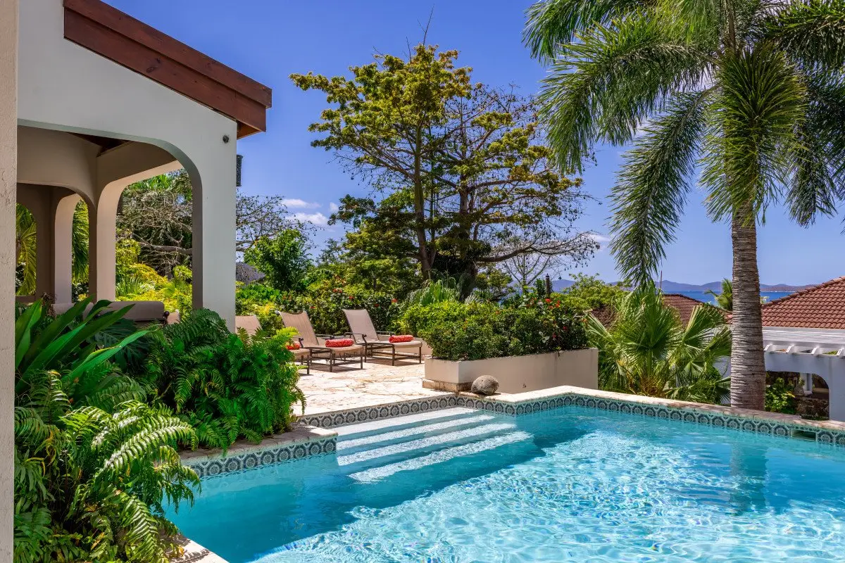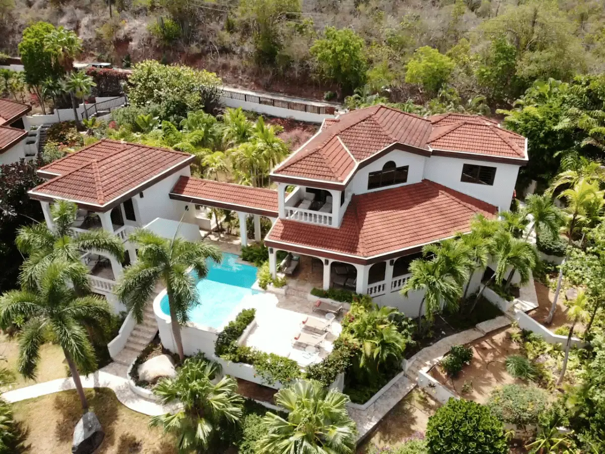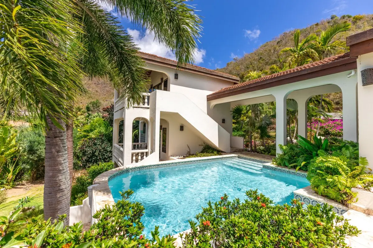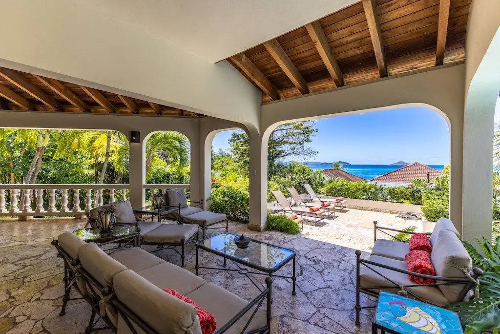 Bellamare is about 100 yards to Mahoe Bay, a beautiful beach of crystal clear water.  It affords an exotic lifestyle of year-round warm temperatures, brilliant sunsets and cooling Trade Winds on a small island.  Bellamare is built slightly hillside overlooking the islands of Sir Francis Drake Channel. This 4-bedroom house is situated in a low-density, private estate within 10 minutes’ drive of the airport, the yacht harbor and excellent restaurants and shops. It is skillfully designed to capture the spectacular ocean view while ensuring perfect privacy. A sunny free-form pool and a tanning deck are centrally located. This is a rare opportunity to own a home very close to a beautiful beach.  For more details about ownership of this vacation rental villa, contact the agent, Bernadette George. Price:                                       $2.65M USD Property type:                        House (completed 1999) Bedrooms:                              4 Bathrooms                              4.5 Site Acreage:                           0.379 acres /0.15 hectare Title:                                        Freehold Location:                                 Hillside on Mahoe Bay, Virgin Gorda Estate:                                     Covenanted Estate House size:                              Approximately 4500 covered space Pool:                                        Yes, and tanning deck. Air Condition                          All bedroom suites have AC Water                                      Cistern of 50,000 and BVI Government Mains water Electricity:                               BVI Electric Corporation Generator                               Mahoe Bay Estate Generator Tennis Courts                          Yes Watersports                           Storage and rental of watersports equipment nearby Beach Access                          Yes – concreted walkway of 200 yards to Mahoe Bay Vacation Rental                      Has been a highly successful vacation rental property