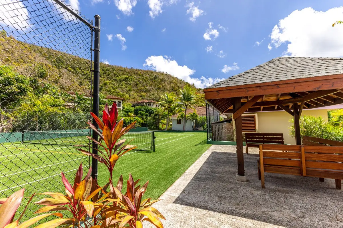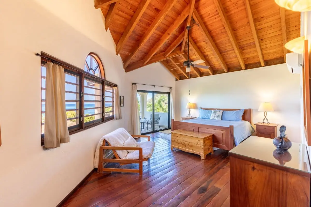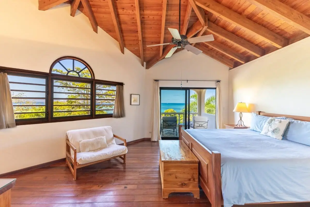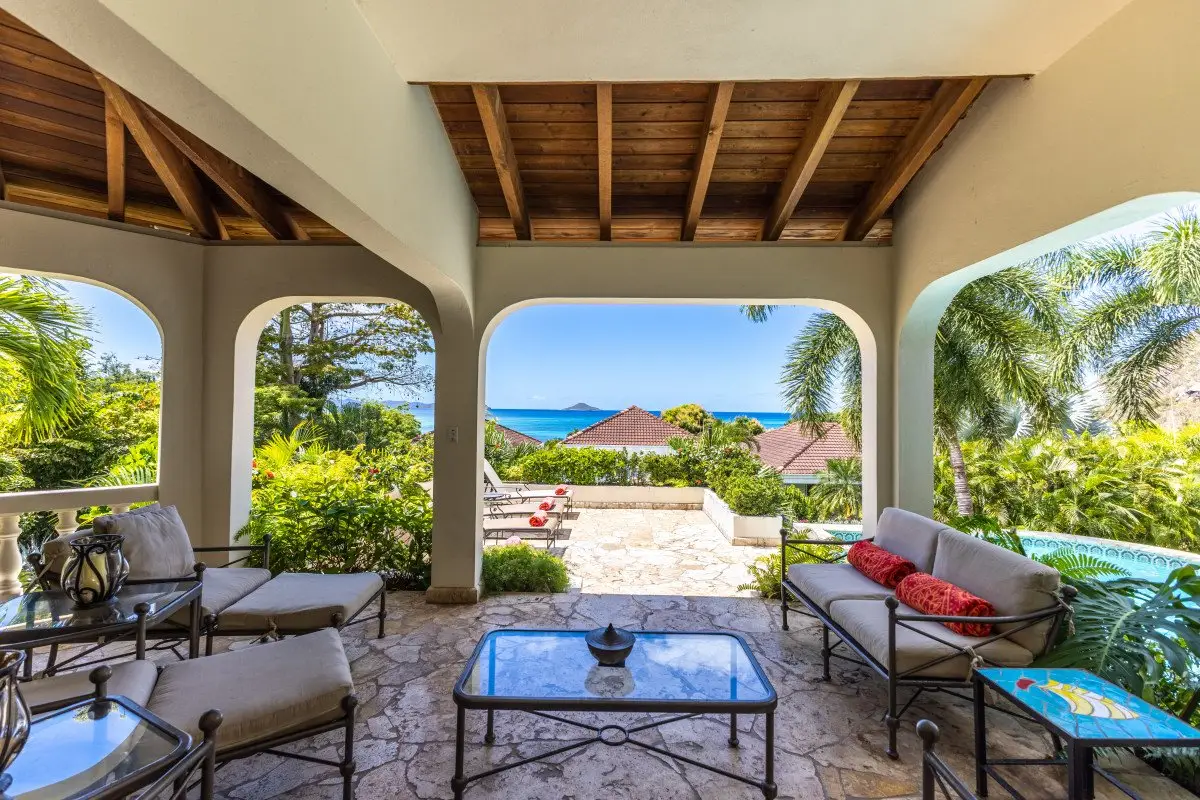 Bellamare is about 100 yards to Mahoe Bay, a beautiful beach of crystal clear water.  It affords an exotic lifestyle of year-round warm temperatures, brilliant sunsets and cooling Trade Winds on a small island.  Bellamare is built slightly hillside overlooking the islands of Sir Francis Drake Channel. This 4-bedroom house is situated in a low-density, private estate within 10 minutes’ drive of the airport, the yacht harbor and excellent restaurants and shops. It is skillfully designed to capture the spectacular ocean view while ensuring perfect privacy. A sunny free-form pool and a tanning deck are centrally located. This is a rare opportunity to own a home very close to a beautiful beach.  For more details about ownership of this vacation rental villa, contact the agent, Bernadette George. Price:                                       $2.65M USD Property type:                        House (completed 1999) Bedrooms:                              4 Bathrooms                              4.5 Site Acreage:                           0.379 acres /0.15 hectare Title:                                        Freehold Location:                                 Hillside on Mahoe Bay, Virgin Gorda Estate:                                     Covenanted Estate House size:                              Approximately 4500 covered space Pool:                                        Yes, and tanning deck. Air Condition                          All bedroom suites have AC Water                                      Cistern of 50,000 and BVI Government Mains water Electricity:                               BVI Electric Corporation Generator                               Mahoe Bay Estate Generator Tennis Courts                          Yes Watersports                           Storage and rental of watersports equipment nearby Beach Access                          Yes – concreted walkway of 200 yards to Mahoe Bay Vacation Rental                      Has been a highly successful vacation rental property