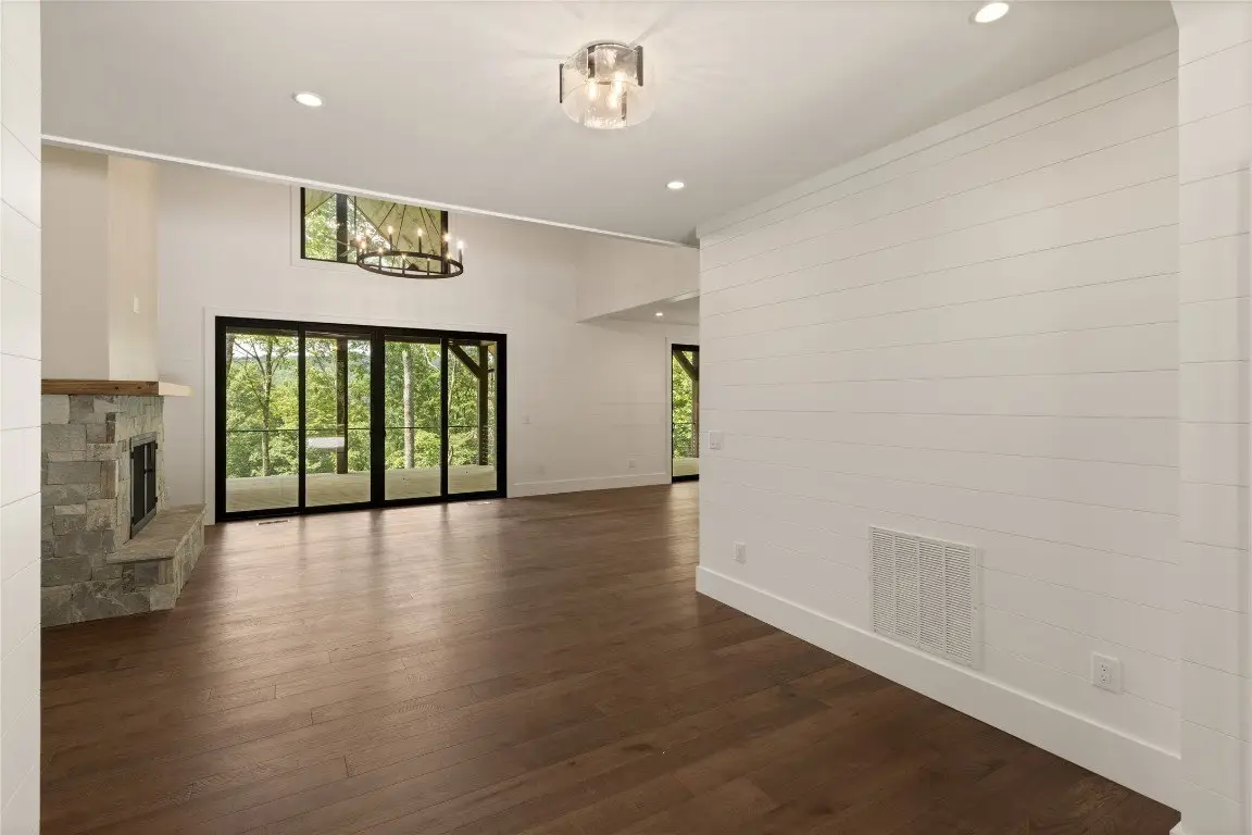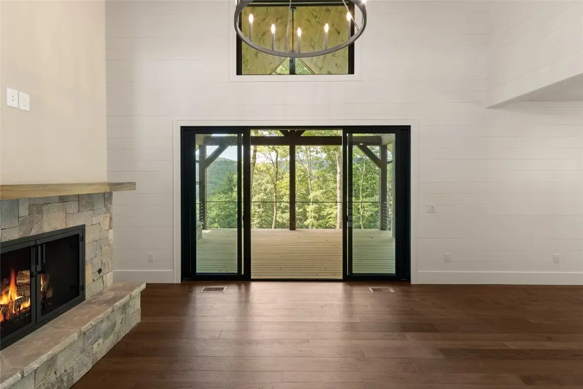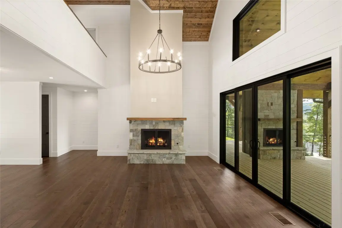 Set on 2.3 gentle acres just minutes from the pristine Lake Glenville, this stunning new construction offers an elegant mountain retreat designed to capture sweeping views of the Western North Carolina landscape. The three-bedroom home, thoughtfully planned over two levels, welcomes you with a grand great room featuring a soaring two-story vaulted ceiling and an expansive porch. Both spaces are anchored by inviting fireplaces, perfect for enjoying the crisp mountain evenings. The open-concept kitchen, equipped with Thermador appliances, flows seamlessly into the dining area, creating a warm, versatile space ideal for both intimate family meals and entertaining friends. Upstairs, a spacious loft leads to two generously appointed guest bedrooms, each with ensuite baths for the ultimate in privacy and comfort. With an attached two-car garage and gentle topography surrounding the home, this property combines convenience with natural beauty. Completed in 2025, this residence is designed to offer a refined lifestyle with a perfect blend of mountain charm and modern sophistication. Virtually staged photos are included to showcase the potential of the property.