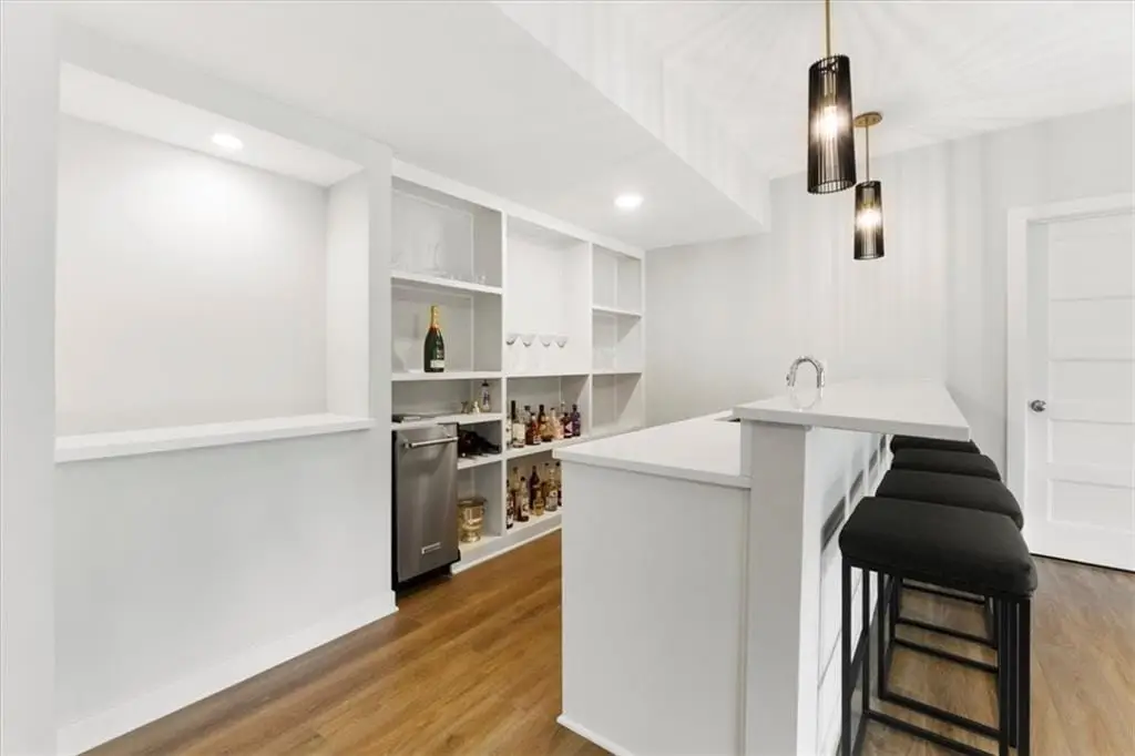 Welcome to this stunning 1.5-story 5 bedroom home, nestled on a premium lot backing to trees and green space in the coveted Preserve at Forest Ridge Estates. From the moment you enter, you’ll be impressed by the attention to detail and thoughtful layout that blends luxury, comfort, and functionality. Gorgeous hardwoods throughout first 2 levels. The spacious great room is a true centerpiece, featuring custom built-ins, designer finishes & large windows that bathe the space in natural light. Step directly from the great room onto the oversized, covered patio w/fireplace, perfect for hosting! The gourmet kitchen is a chef's dream, offering an abundance of cabinetry, a large quartz center island, beautiful fixtures, and a walk-through butler's pantry with an additional oven for added convenience and storage. Whether you're hosting a formal dinner in the elegant dining room or enjoying casual meals, the open-concept layout ensures seamless traffic flow for any occasion. Also on the main level, you’ll find a private home office ideal for remote work, along with a luxurious primary suite and bath complete w/ soaker tub, tiled shower, make up counter, HUGE walk in closet w/direct access to the laundry room w/ utility sink and ample folding space. Upstairs, three spacious bedrooms await, including one with its own cozy playroom nook. A generous loft area provides the perfect space for a homework station, TV room, or creative play zone. Bedroom features also include walk-in closets, well appointed bathrooms and an extra washer and dryer connection. The finished lower level offers even more living space, luxury vinyl flooring, large rec room with a full bar, perfect for game nights or hosting guests. A large 5th bedroom and walk-out access to a beautifully landscaped fenced backyard complete this versatile and inviting level. Don't miss the 2 large storage rooms! This home is EVERYTHING! Taxes and sq footage are approximate and should be verified by Buyer/Buyer agent.