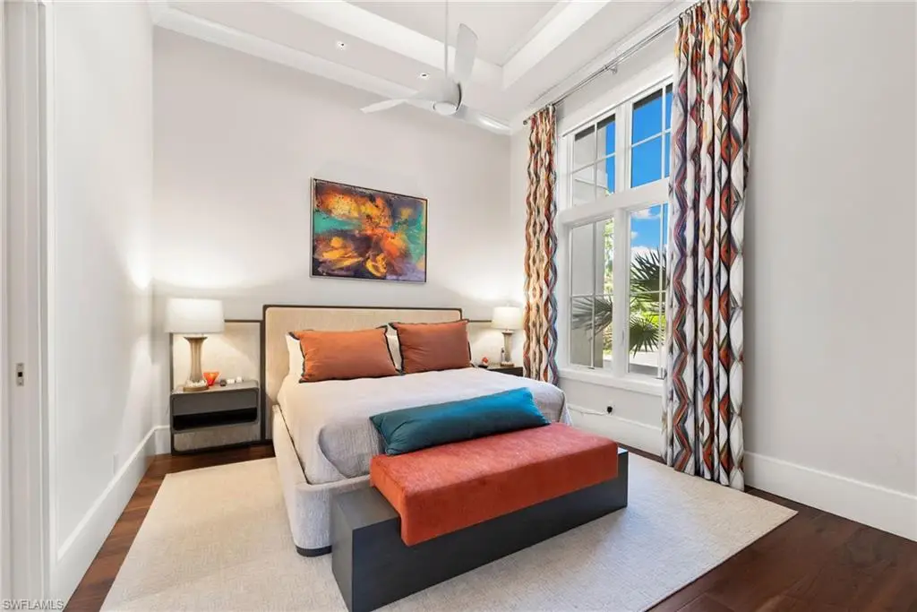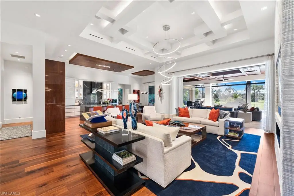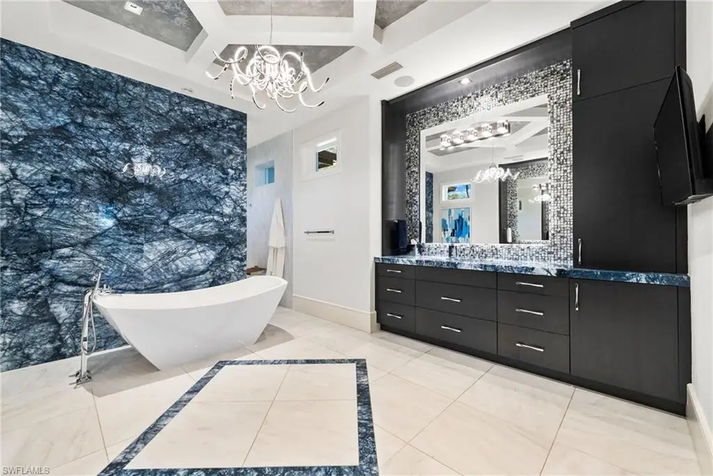 A residence conceived with the poise and indulgence of a world-class Las Vegas retreat - nestled within the exclusive enclave of Bonita Bay. Commandingly set along the 18th fairway of the Marsh Course, this 2022 architectural statement by Harwick Homes, in collaboration with renowned designer Sherri DuPont, redefines bespoke living through an extraordinary fusion of artistry, innovation, and precision craftsmanship. Each space within the home reflects a distinct vision of grandeur: five ensuite bedrooms plus a study, framed by expressive architecture and opulent material selections. The interiors unfold like a private gallery - where custom furnishings, commissioned art, and sculptural lighting create a cinematic interplay of texture, color, and form. Every detail was conceived not simply to impress, but to immerse. The outdoor realm rivals a five-star resort, with expansive terraces, tranquil water features, and a resort-caliber pool environment that transitions seamlessly from day to dusk, overlooking the course's most dramatic vistas. Entertaining flows effortlessly between interior and exterior spaces, each crafted for both lavish gatherings and quiet reflection.