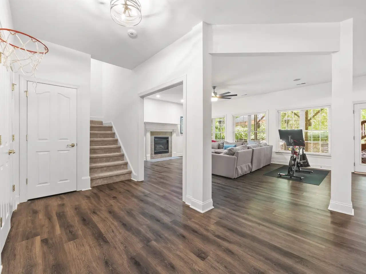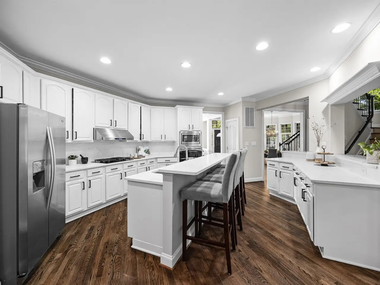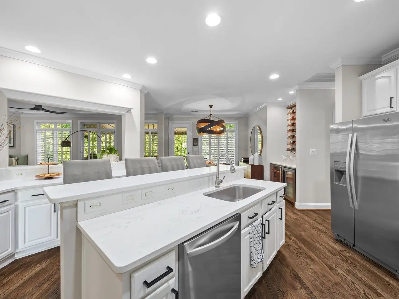 This stunning move-in ready 5-bedroom, 5-bathroom home boasts 5,000 sq ft. Nestled in highly sought-after Providence Plantation, known for its top-rated schools, the home offers unparalleled privacy on a serene, tree-lined street. The open floor plan is complemented by tasteful updates and renovations throughout.The light filled chef's kitchen is equipped with stainless steel GE Profile double wall ovens, an oversized sink, white quartz countertops, and two pantries. Extensive renovations completed in 2020 include the full bathroom on the main floor, beautifully refinished hardwood floors, custom built-in cabinetry in the office, custom wine bar complete with a built-in beverage fridge, laundry/mudroom featuring a convenient drop zone/bench, and large second pantry.Enjoy Sonos surround sound extending throughout the home and onto the deck. Three gas log fireplaces create a cozy ambiance, framed by custom built-in cabinets and a custom mantle (2020). Additional upgrades include an irrigation system for both front and backyard, a new garage door with a quiet motor (2023), new doors leading into the garage and on the main level (2024), a new door opening to the deck (2024), and oversized gutters and downspouts (2024).The finished walk-out basement, thoughtfully remodeled in 2024 with new luxury vinyl plank flooring and fresh paint, offers versatile additional living space. This expansive area is perfect for a home gym with an additional bedroom, and full bathroom, and seamlessly opens to a large stone patio.Step outside to a private backyard oasis, where a covered deck awning overlooks an exceptionally private wooded lot spanning approximately .70 acres. Providence Plantation residents enjoy access to a swim and racquet club and will benefit from easy access to the new 485/Weddington Rd. exit, expected to be completed in 2025. The home's prime location offers convenient proximity to gyms, Harris Teeter, Publix, and an array of other great shops and restaurants.