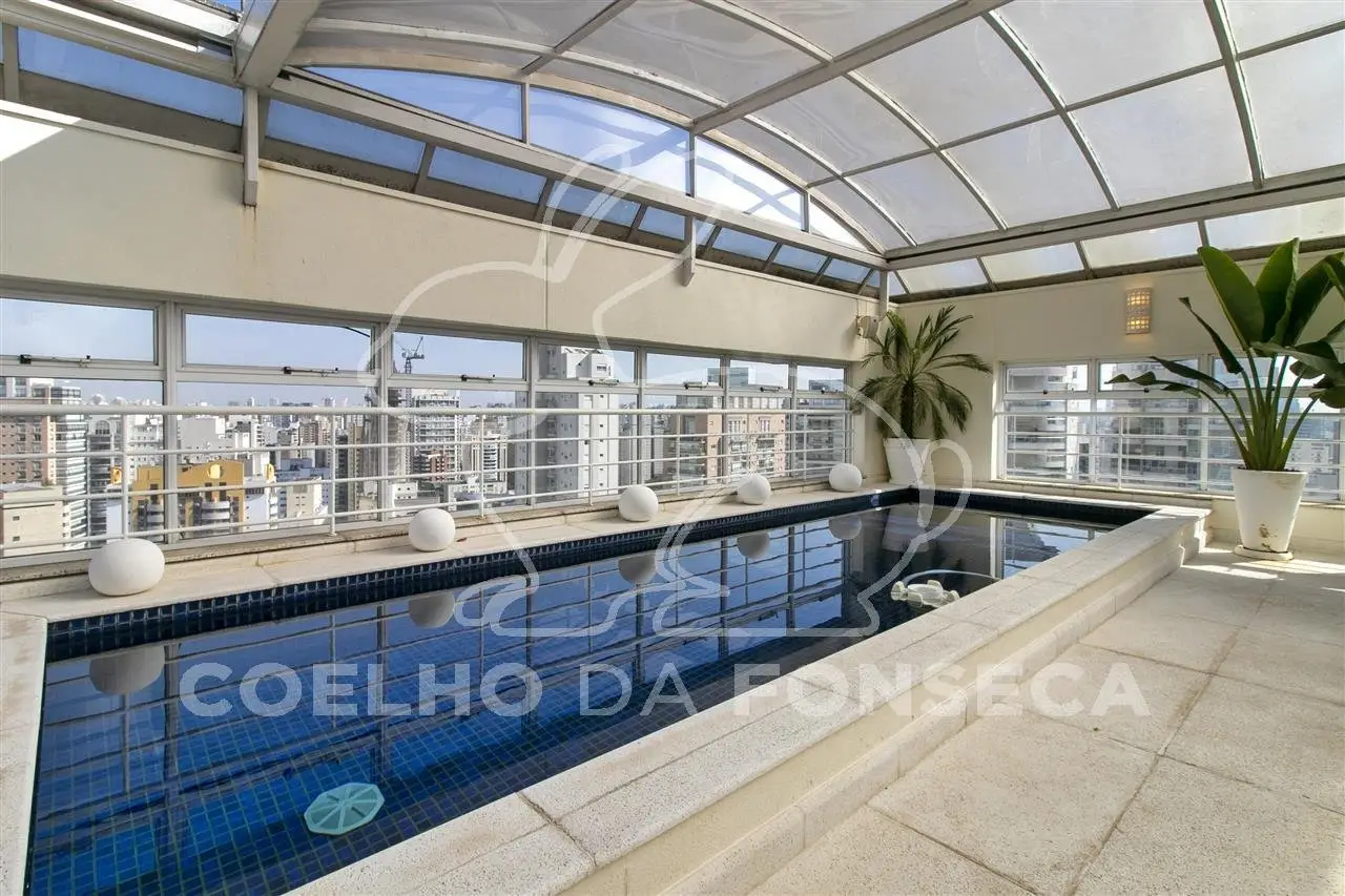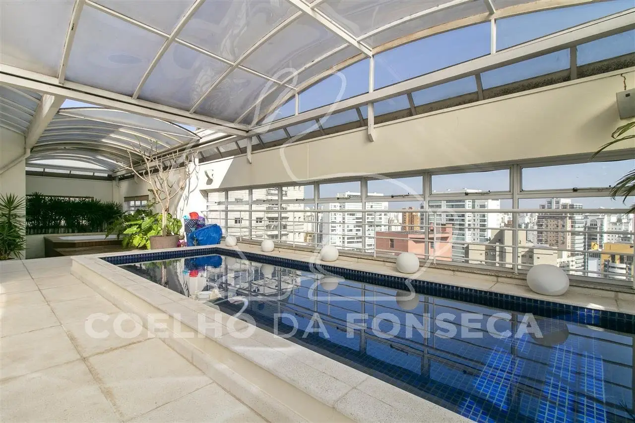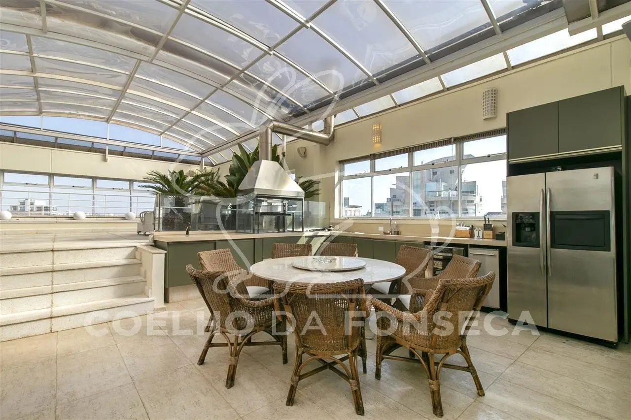 Beautiful penthouse with 360-degree views. From most rooms, you can see the sunrise, sunset and moonrise. Just a few steps from Ibirapuera Park. 2 social elevators that reach the lower and upper floors, providing total privacy. Armored social and service area doors. The lower floor contains the suites, living rooms, terrace with views, kitchen and service area. The upper floor has a home office, heated pool with retractable roof, gourmet space, barbecue, sauna and a small gym. Building with full leisure facilities. Penthouse in the Vila Nova Conceição neighborhood with 649m² of private/useful area, 4 bedroom(s), 4 suite(s), 8 parking space(s), 6 bathroom(s), pool, barbecue, terrace, duplex, air conditioning, maid's quarters, gourmet balcony.