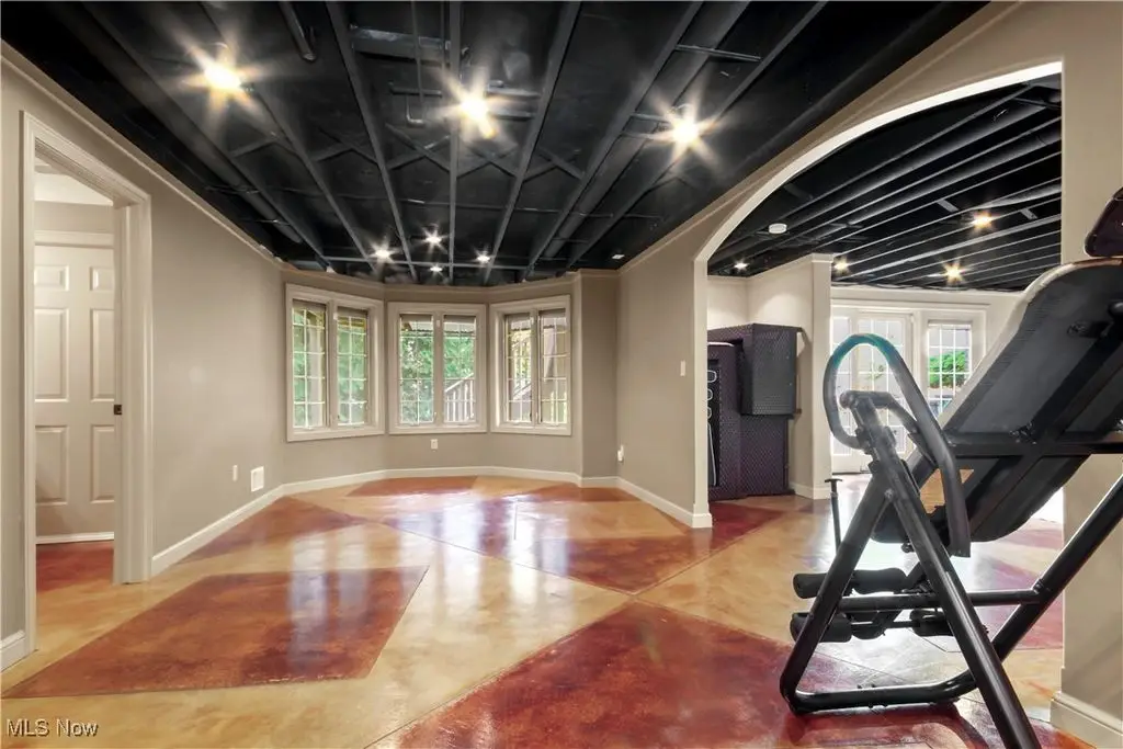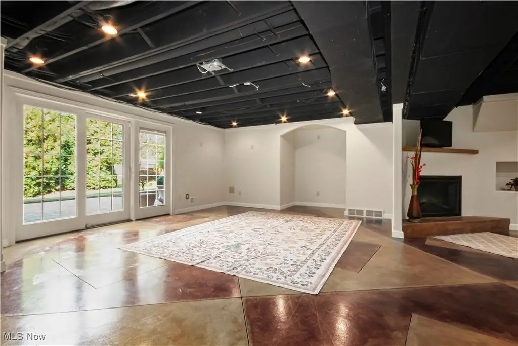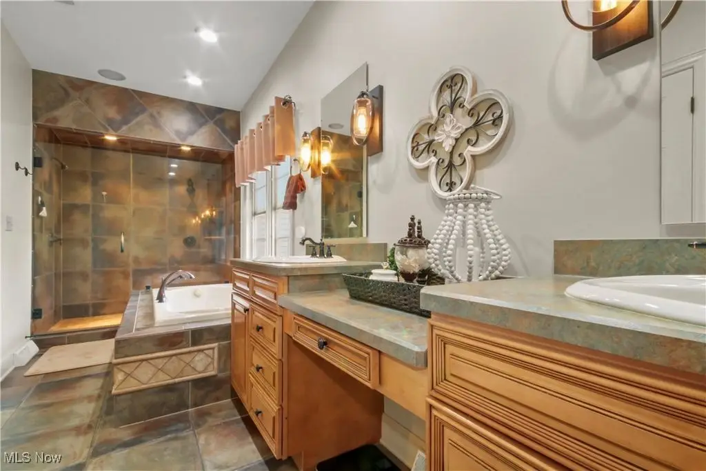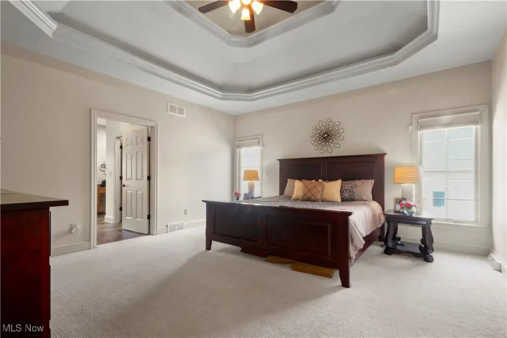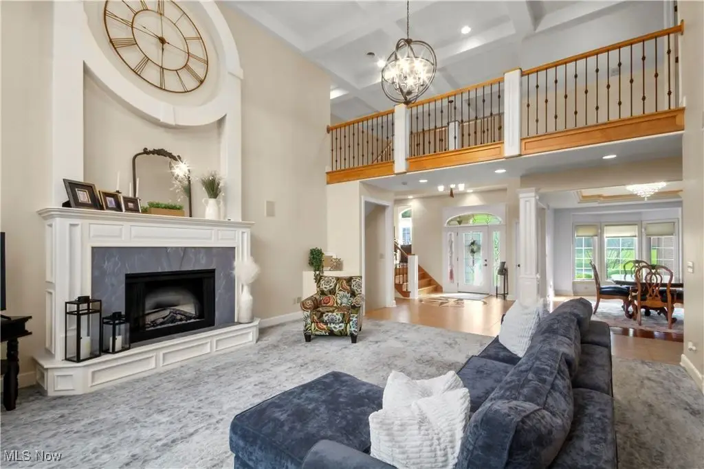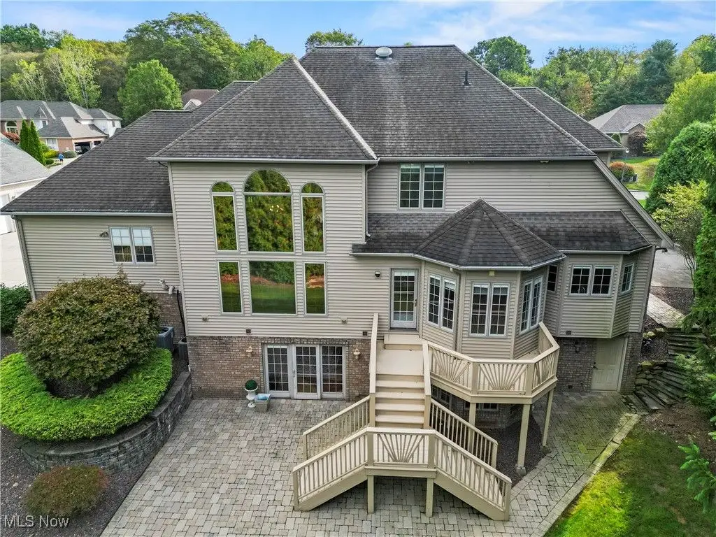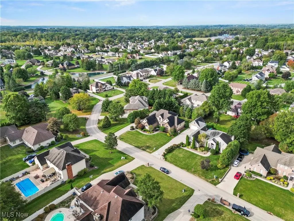 This luxurious custom-built home with over 5,500 sq ft of living space welcomes you in Canterbury Creek. Step inside the grand foyer with custom decorative tile, soaring chandelier, and hardwood staircase with wrought iron accents.The main level offers a formal dining room with tray ceiling and bay window, a dramatic great room with a wall of arched transom windows, grand fireplace, coffered ceiling, and catwalk views, plus an eat-in kitchen with granite counters, a massive island with bar seating and prep sink, 5-burner range, and walkout to the raised deck with access to lower patio. A spacious laundry room with tons of storage and counter space, and a powder room complete the main floor. On the landing of the stairs, the luxurious master suite features triple tray ceilings, dual walk-in closets, and a spa-like bath with jacuzzi tub, floor-to-ceiling tiled shower, and double vanities. Nearby, a private home office with custom built-ins and vaulted ceilings offers the perfect workspace. Upstairs, french doors open to three bedrooms - two sharing a Jack-and-Jill bath and one bedroom with a private bath. A large vaulted bonus room provides space for a 5th bedroom or media room. The walk-out basement is the entertainer's dream with a full bar, electric fireplace, large living area, storage room, plumbing for a future kitchen, and direct access to the paved patio in your private backyard. Your new pool awaits you with direct access to the full bathroom from the walk out basement. A private gym and versatile man cave add even more space for hobbies and relaxation. Outside, enjoy the paved patio, raised deck, or walk up from the basement to your spacious 3-car spacious garage offering ample storage.