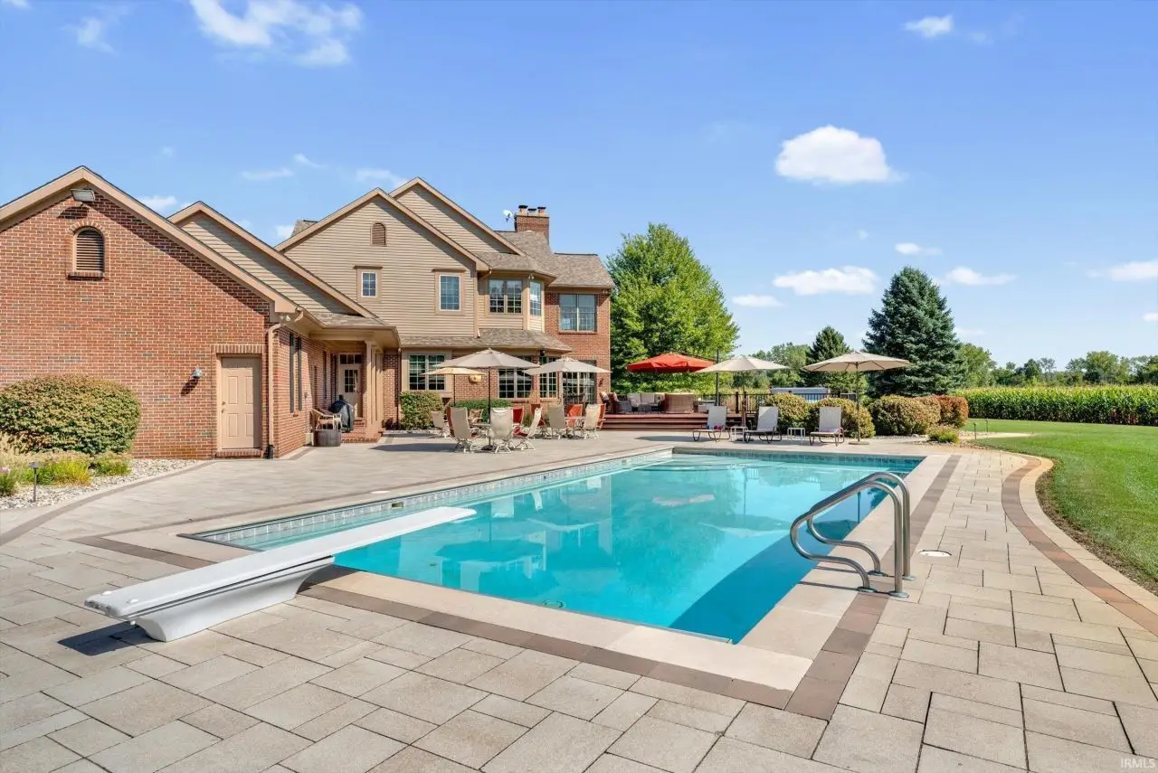 Experience the perfect blend of luxury, privacy, and functionality on this exceptional 70-acre estate in Lakeville, IN. Built in 1996 by Rans Custom Builders, the custom brick home features five bedrooms, four full and two half baths, and finished basement, all set on approximately 70 acres with a pool, private pond, high quality Morton barns, and stunning outdoor living spaces. Interior highlights include 9' ceilings, hardwood floors, beautiful millwork, updated kitchen with Ayr cabinetry, granite countertops and high-end appliances. Spacious primary suite and secondary bedrooms with recently remodeled en-suite bathrooms and walk-in closets. Enjoy a resort-style backyard with a saltwater gunite pool and jacuzzi. The property includes two Morton barns (one commercial-grade), a greenhouse, stocked pond with two piers, fenced frontage, and - 2 quarter-mile driveways. Additional amenities: geothermal heating/cooling, full-farm generator, irrigation system, surround sound, security system, and 51 tillable acres under a cash rent agreement. Located just south of South Bend and 90 minutes from Chicago, with access to LaVille or John Glenn schools. This is an exceptionally rare opportunity to own an exquisite turn-key rural estate. See property details in the attached "Features" document.