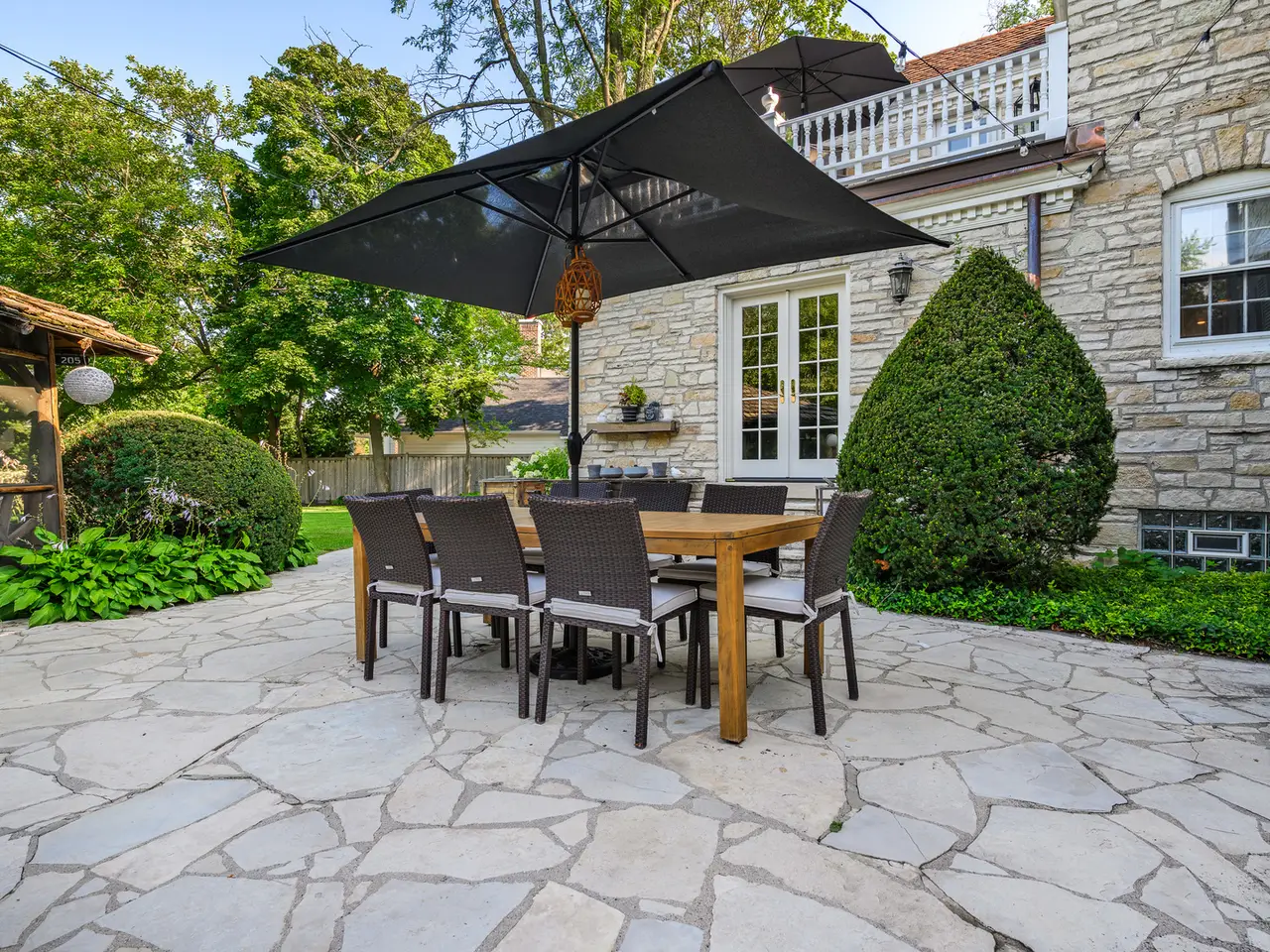 Beautifully renovated lannon stone luxury residence steps from town, train and the lake. Enter through the grand center hall that leads to both the dining room with floor to ceiling windows and an inviting living room with wood burning fireplace and views of the lush yard. The renovated Chef's kitchen features custom cabinets, high-end appliances including a La Cornue range, double oven, beverage fridge, soapstone counters and a butcher block island with prep sink as well as a second stairway to the 2nd floor. The first floor is complemented by the perfect game room leading to a back patio and dramatically decorated library/office offering a perfect retreat that opens to a patio overlooking the expansive 6/10+ acre lot. Ascend to the second floor, where a beautiful brand new primary spa suite with soaking tub, separate shower, a spacious walk-in closet and a walk out deck. Three additional bedrooms, two sharing a Jack and Jill renovated bath, and one with a 2nd private renovated en-suite bath complete the second-floor living space. The third floor offers versatile updated finished space with a 5th bedroom, ideal for an additional office along with a family room and additional storage rooms. The beautifully renovated lower level space is perfect for family entertaining around the custom built-in bar space and wood-burning fireplace in the recreational room. Additional exercise room/play area, work room, wine closet, ample storage, updated powder room, and all new laundry area. The lush property boasts an expansive lawn with stone patios, outdoor fireplace complemented by a charming decorated gazebo screened porch with electric, a new shed. The 2-car attached and heated garage with new epoxy floors. Two new double exterior doors. New fireplace liners, flood control, 2 electrical panels, 2 new sump pumps with battery back ups, updated boiler auto-feeder and steam traps, Space Pac & 2 heat and A/C splits for the 3rd floor & basement water heater. New outdoor fireplace, shed, flagstone walkways, patio extensions, redwood fence, exterior lights, sprinkler system, copper gutters and asphalt driveway - all new. This home has been well maintained, updated and ready to move right in!