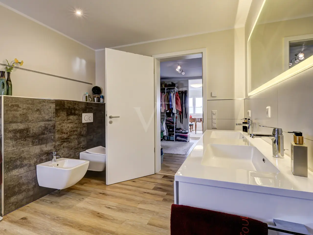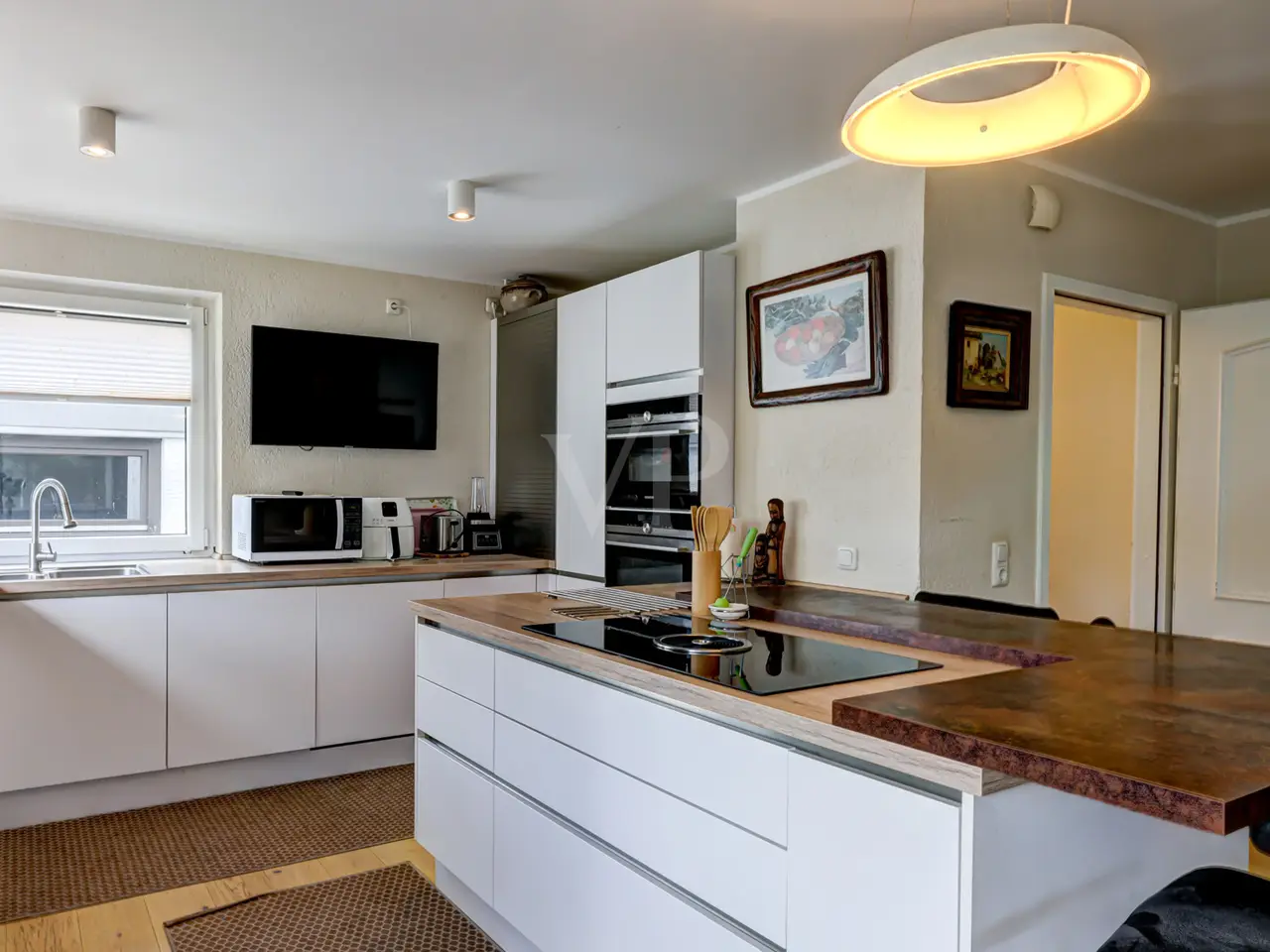 Spacious living - detached house with granny annexe in a preferred location in Königstein-Falkenstein. This detached family home combines a high level of living comfort with well thought-out architecture, modern fittings and the tranquillity of a residential area close to nature. Located in one of the most sought-after districts of Königstein - in idyllic Falkenstein - the property offers almost secluded privacy on a lovingly landscaped plot of approx. 486 m². Space for the whole family - on three floors with many possibilities. The house was built in solid construction around 1977 and extended in 2019 with a high-quality upper floor in timber frame construction. With an impressive living space of around 282 m² on three floors, the property offers spacious retreats for all phases of life - from everyday family life to intergenerational living. The air-conditioned first floor impresses with an open-plan living and dining area that is flooded with light thanks to floor-to-ceiling windows. The modern fitted kitchen with central cooking island invites you to enjoy convivial evenings, while the wood-burning stove creates a cozy atmosphere. The adjoining terraces offer sunny outdoor areas with a high recreational value. The private parents' area on the upper floor is clearly separated from the children's wing and boasts a dressing room, bedroom and a stylish master bathroom with double washbasin, shower, bathtub, bidet and atmospheric lighting. The as-new upper floor with underfloor heating and air conditioning in the bedrooms offers absolute living quality. Another plus point: the easily usable attic with spectacular distant views. A house with many facets - also conceivable as a multi-generational solution. The garden level not only offers plenty of storage space, but can also be used as a granny apartment thanks to a separate living room with garden access, a bedroom, a bathroom and a room with kitchen connections - ideal for guests, au pairs or for renting out. In 2008, the entire house was excavated and fitted with an impermeable drainage system. A large single garage with wallbox, an additional outdoor parking space and modern building services including a PV system round off the offer. Conclusion: A versatile home in a sought-after location that appeals to both families and discerning couples - with plenty of space, a well thought-out layout, high-quality fittings and the option of flexible use. The forest, nature and leisure facilities are right on your doorstep - and yet you have excellent connections to the Rhine-Main region.
