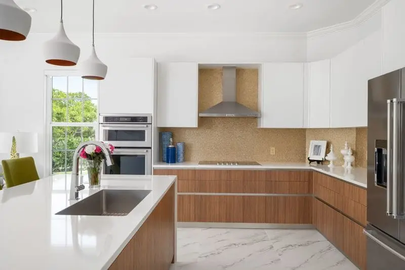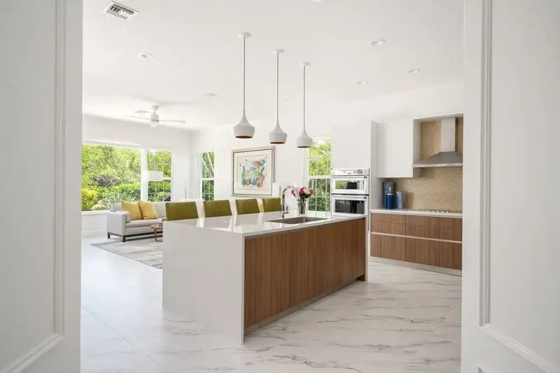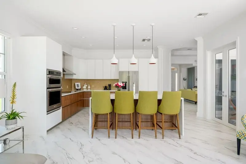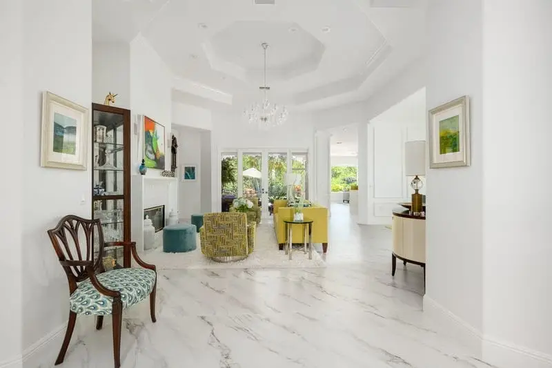 Luxurious Bermuda designed exterior & spacious modern interior boasts 14' high octagon tray ceiling in living room, wood burning FP & custom moldings. European inspired kitchen & baths, large 36x36 porcelain tile floors & walls. KitchenAid appliances 36 cooktop, French door bottom freezer, built-in oven/microwave, 36 hood & Bosch DW. Owner's suite, has 2 vanities, soaker tub, lg shower, walk-in-closets, custom shelving. Impact windows & storm shutters, Hurricane insulated garage door, whole house Generac generator, BBQ gas line, 2 A/C units, split A/C in garage & central vacuum.Rmszapprox