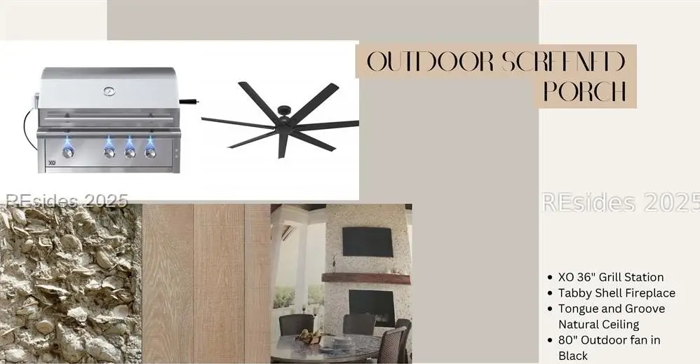 Screened porch with tabby fireplace