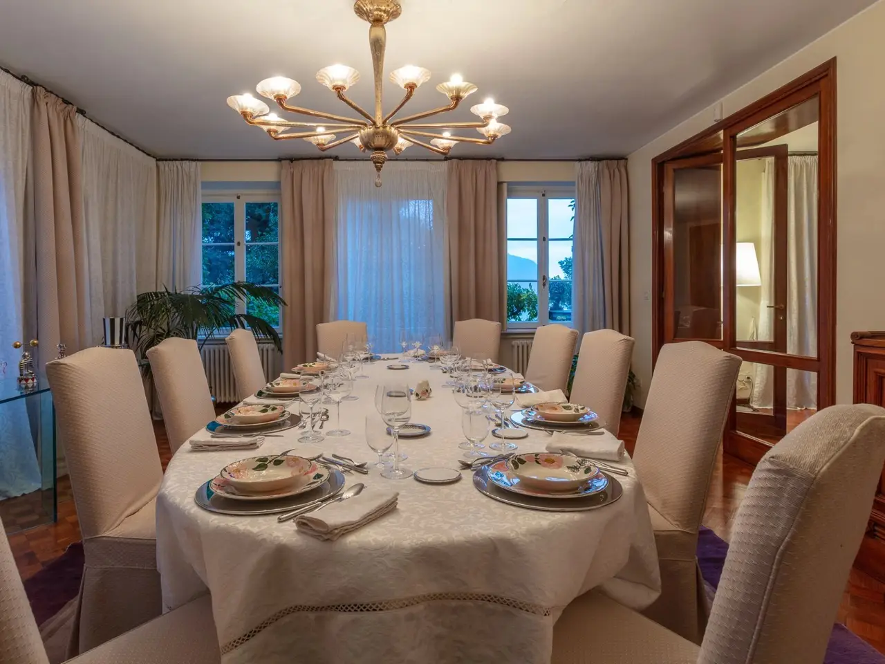 Prestigious historic villa for sale, built around 1900, surrounded by a beautiful centuries-old park planted with camellias, azaleas and tall trees. The whole property is characterized by great elegance and privacy. The exclusive property called Villa "Il Leoncino" is located on the hill of Verbania, in a quiet location, away from the chaos of the city. It enjoys a wonderful view of Lake Maggiore, with a southern exposure to the sun. The park of 8,500 square meters has maintained its historic layout with the avenues that run through it leading to the swimming pool. During these walks you can appreciate the blooming of the roses. The pool area, built in 2007, has a summer kitchen with a dining table overlooking the lake and a shower and toilet area. At the entrance of the property, in addition to the luxury villa, there is a concierge and a guest house, very particular developed on two floors with two garages on the ground floor. The external architecture of the prestigious villa for sale is preserved as it was originally, as are the interiors, which are always treated in maintenance. The interior decorations are designed to harmonize with the style of the prestigious period villa with the pastel colors typical of the prestigious residences of Lake Maggiore. The Villa consists of four floors. From the entrance you enter the large halls from which you connect to the large terrace. Also on the same floor is the formal dining room for guests. The most evident peculiarity is the great brightness of the rooms and the view of Lake Maggiore. On the lower floor, as is customary in period manor villas, there is a kitchen with a dumbwaiter, a dining room for the family, a pantry, a billiard room, a study and a SPA with a sauna. From this floor you exit onto the centuries-old park preceded by a portico used for the summer dining area. The first floor is entirely dedicated to the sleeping area consisting of two large double bedrooms with original parquet floors, each with a walk-in closet and a private bathroom. Also on the same floor there are two other bedrooms with bathroom. On the second floor is the guest area. This floor features a large terrace with a beautiful view of Lake Maggiore. Here we find three bedrooms with a bathroom, and a laundry room. This elegant property is located in a privileged location, quiet but not isolated, quiet and above all very panoramic and sunny.