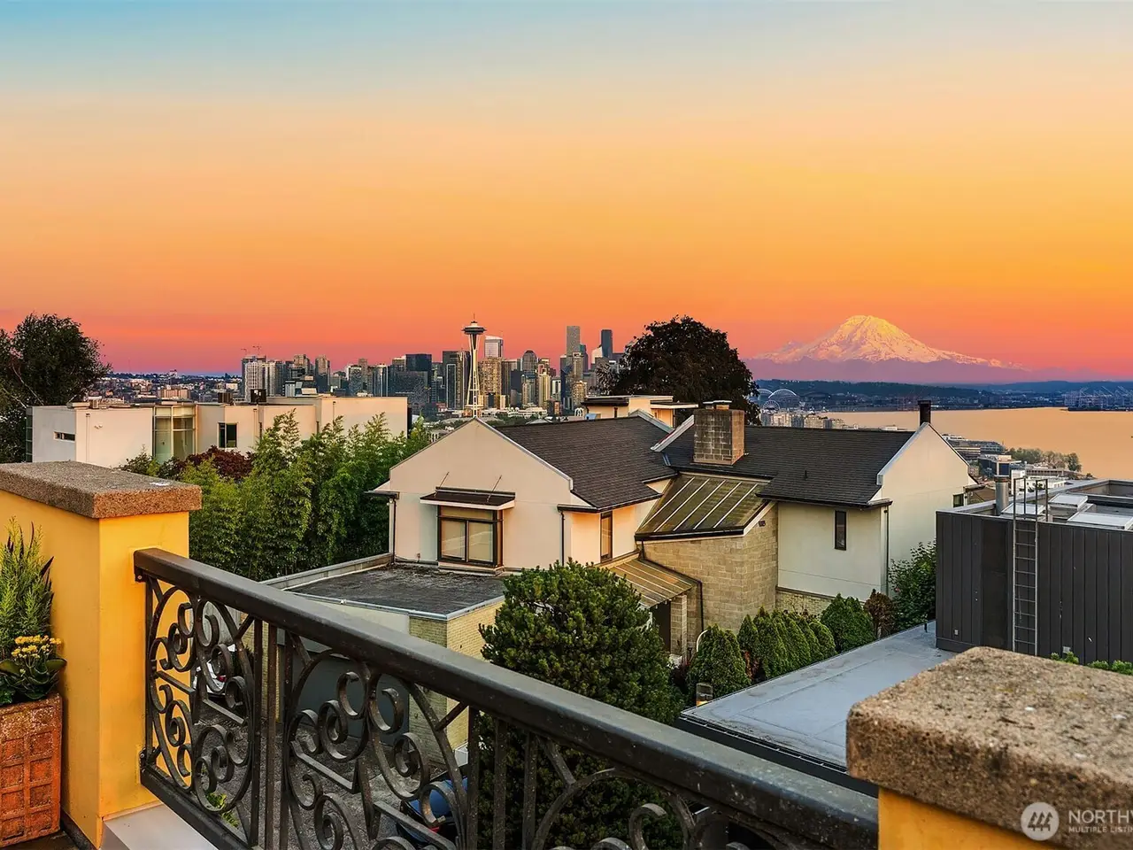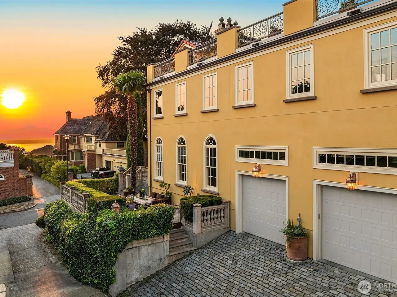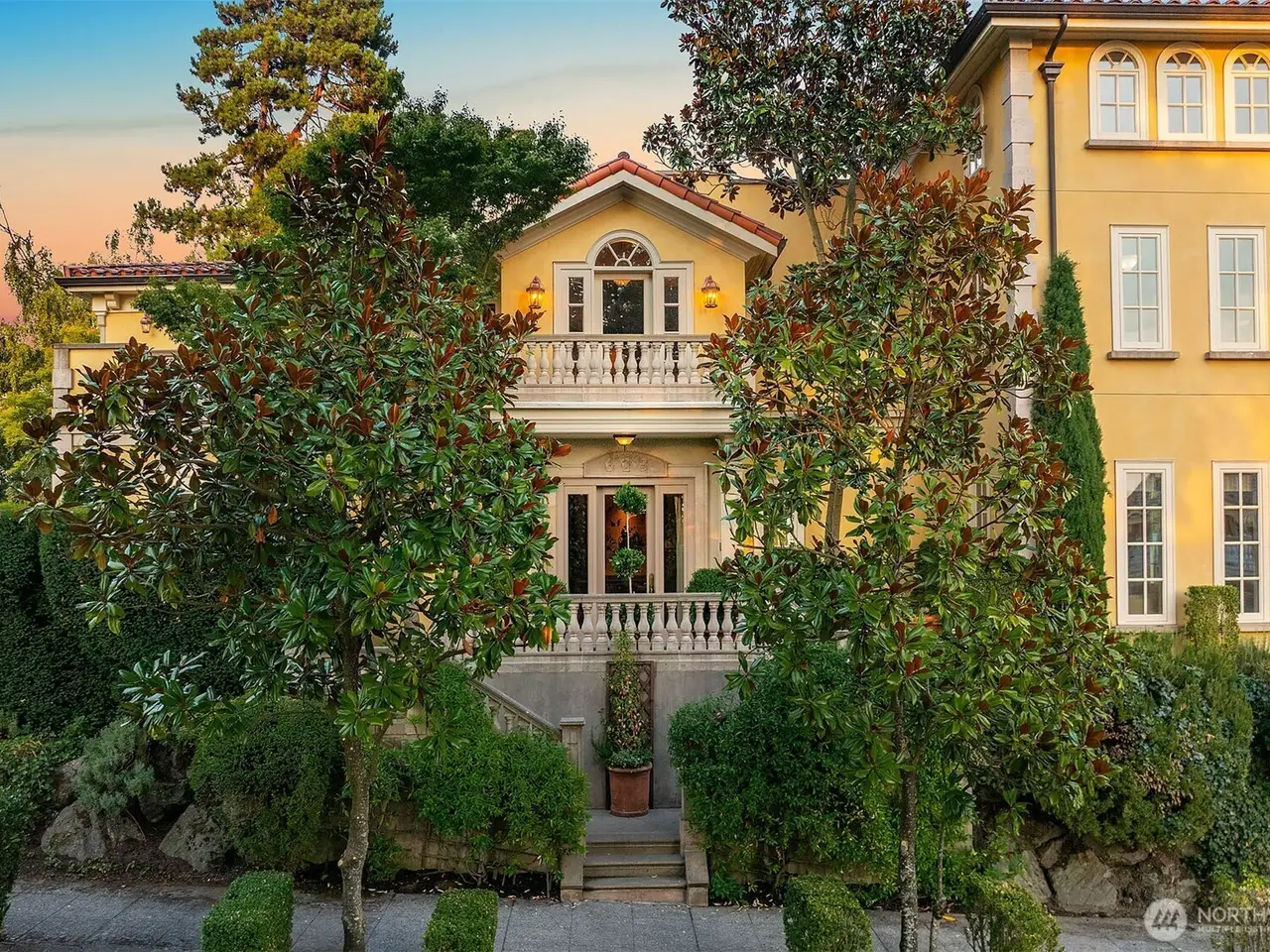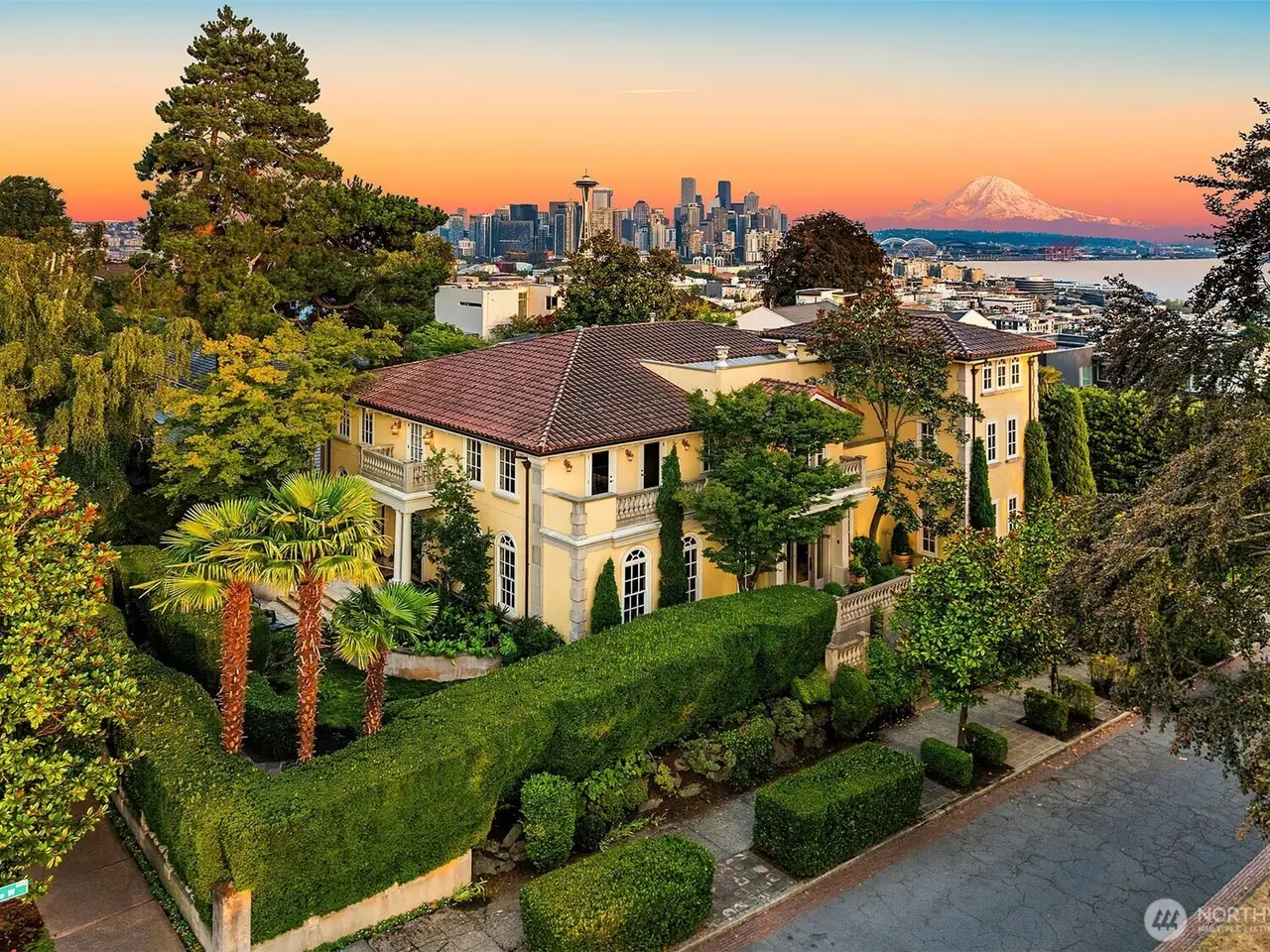 A rare offering with a coveted corner-lot setting on Queen Anne Hill's iconic West Highland Drive, this extraordinary Italianate-style mansion harmoniously presents modern luxury living with Old World elegance. Extensively remodeled in 2003, this exquisite property has been lovingly maintained & improved to perfection. Step through the ornate, wrought-iron gated entry into enchanting courtyards, balustrade-lined terraces & captivating mature landscaping. Italian renaissance-inspired interiors feature grand entertaining spaces, soaring ceilings, Venetian plaster walls, Fortuny fixtures & radiant-heated marble flooring. Rooftop deck w/ spectacular sweeping view of Seattle skyline, Mt. Rainier & Elliott Bay. Elevator, A/C, EV charging & more!