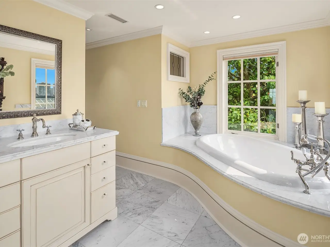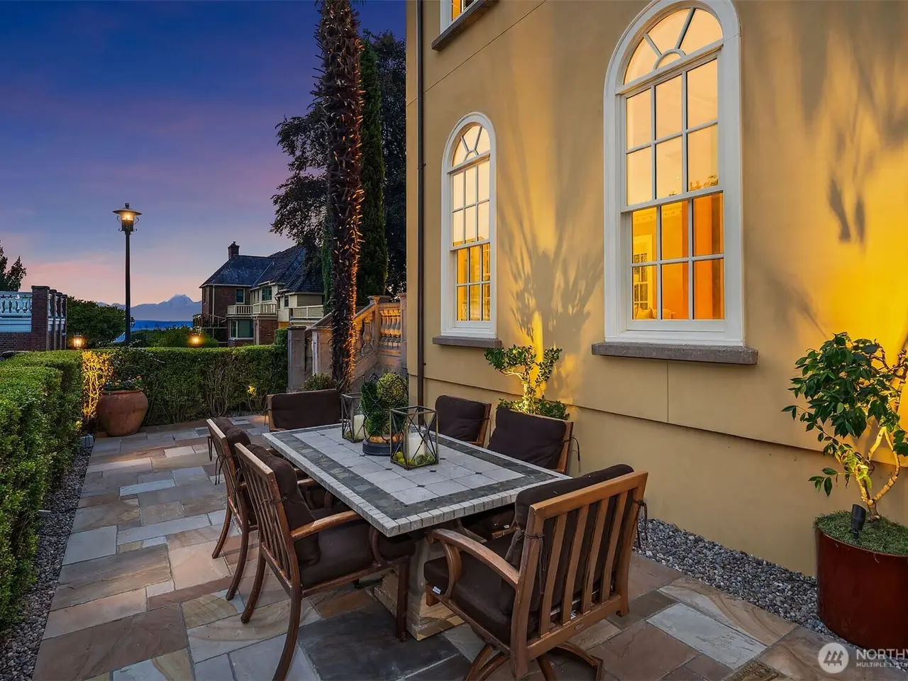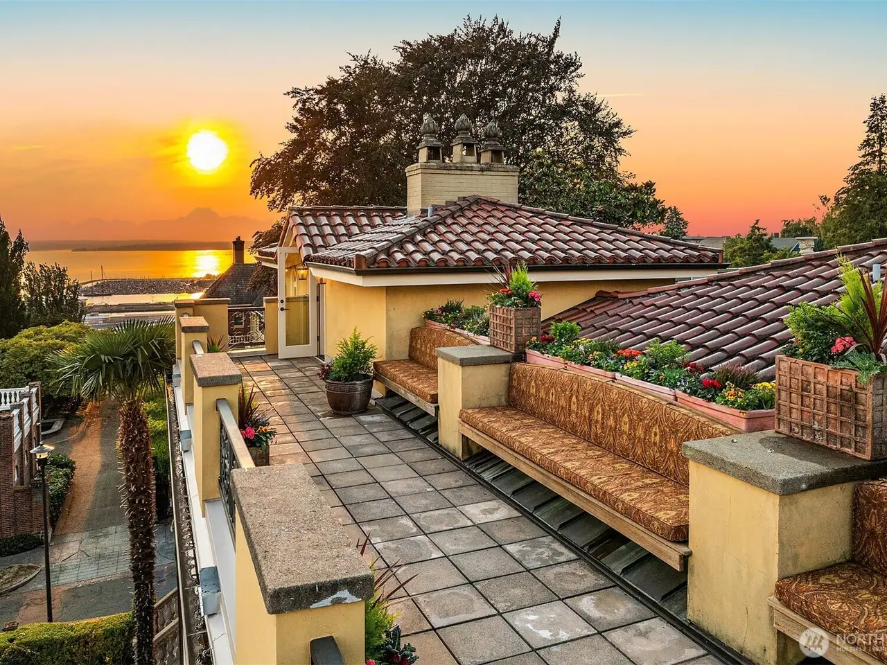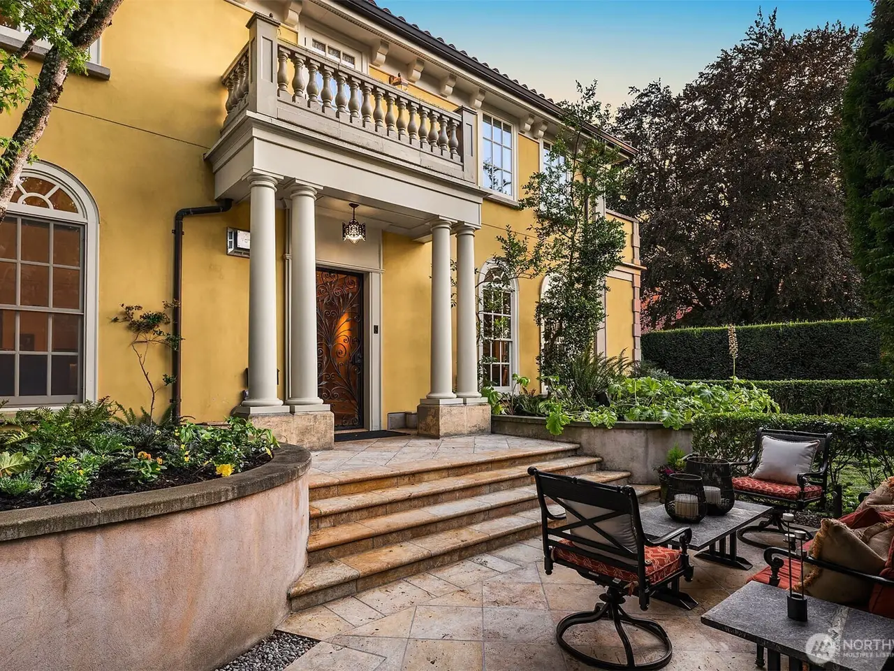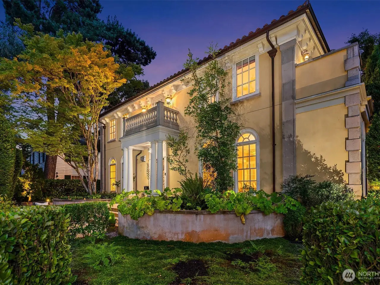 A rare offering with a coveted corner-lot setting on Queen Anne Hill's iconic West Highland Drive, this extraordinary Italianate-style mansion harmoniously presents modern luxury living with Old World elegance. Extensively remodeled in 2003, this exquisite property has been lovingly maintained & improved to perfection. Step through the ornate, wrought-iron gated entry into enchanting courtyards, balustrade-lined terraces & captivating mature landscaping. Italian renaissance-inspired interiors feature grand entertaining spaces, soaring ceilings, Venetian plaster walls, Fortuny fixtures & radiant-heated marble flooring. Rooftop deck w/ spectacular sweeping view of Seattle skyline, Mt. Rainier & Elliott Bay. Elevator, A/C, EV charging & more!