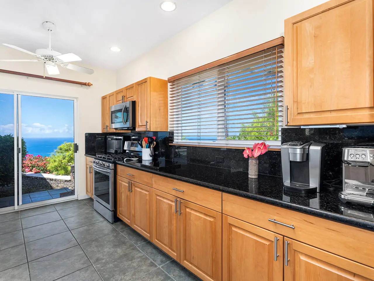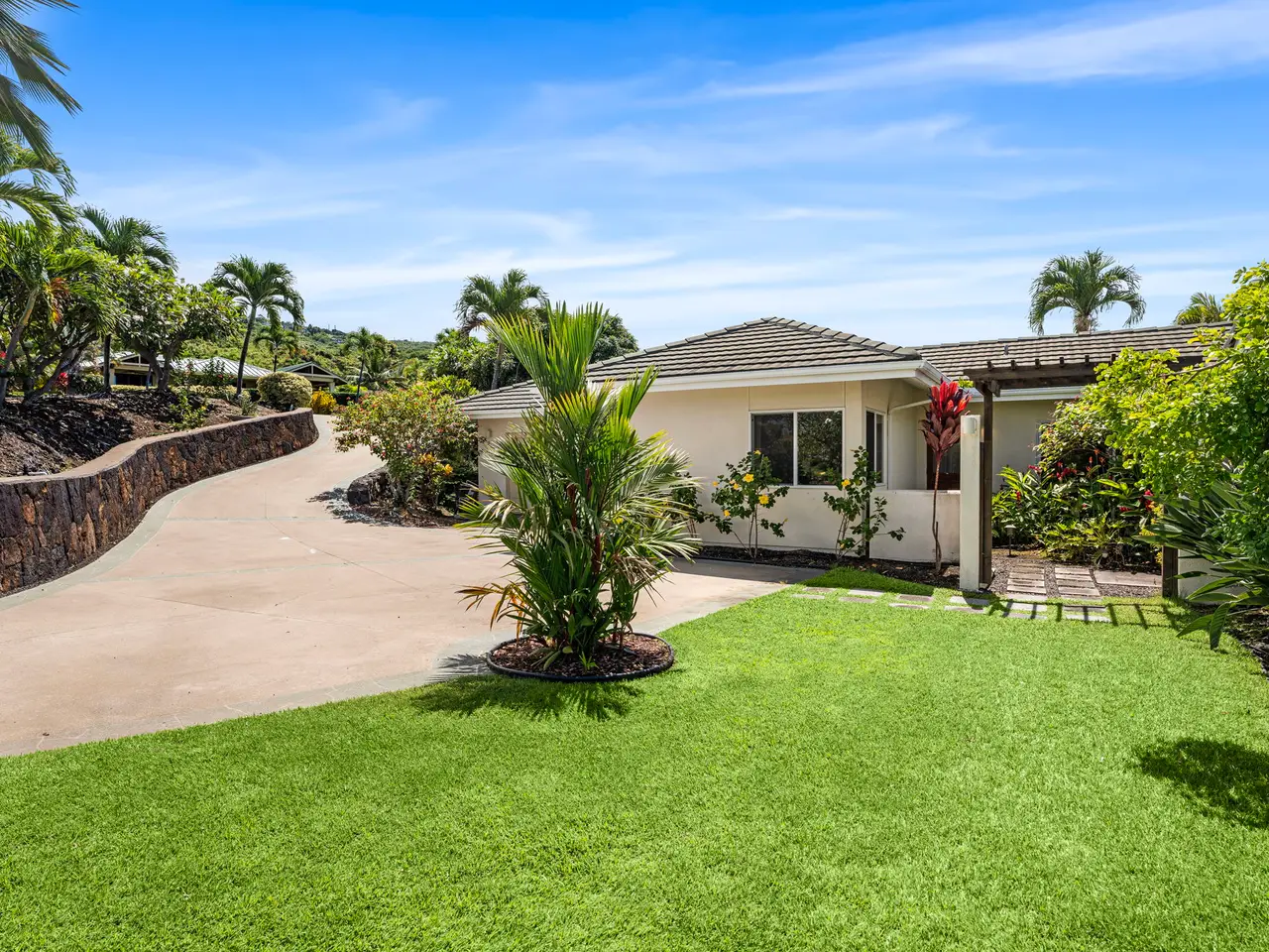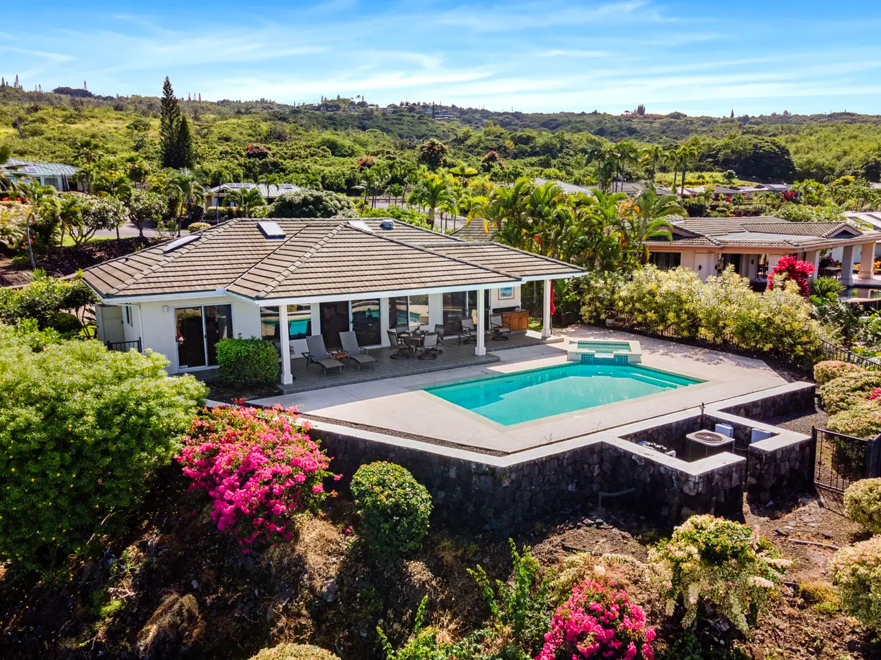 Elegant single-level luxury home in the prestigious Bayview Estates! This luxury home greets you with sweeping ocean, coastline, and Keauhou Bay views. The living room, kitchen, and the primary bedroom open into the huge coved lanai, perfect for watching Kona's gorgeous sunsets and seasonal whale watching. Notable features of this beautiful home include: Hardwood floors in the living room and hallway. Travertine tiles in bedrooms and baths. Central Air Conditioning. Granite countertops. Valted high ceiling in the living room. Pool/spa overlooking ocean views. Open floor plan. Fully furnished and turnkey. Beautifully landscaped. Fully owned Photovaltec. Located in a quiet cul-de-sac. Bayview Estates is a gated community close to shopping, golf, ocean activities and much more! The video of this property: https://hawaiian-virtual-tours.aryeo.com/videos/019965f0-8a38-73bd-81bd-5d8cbb120413