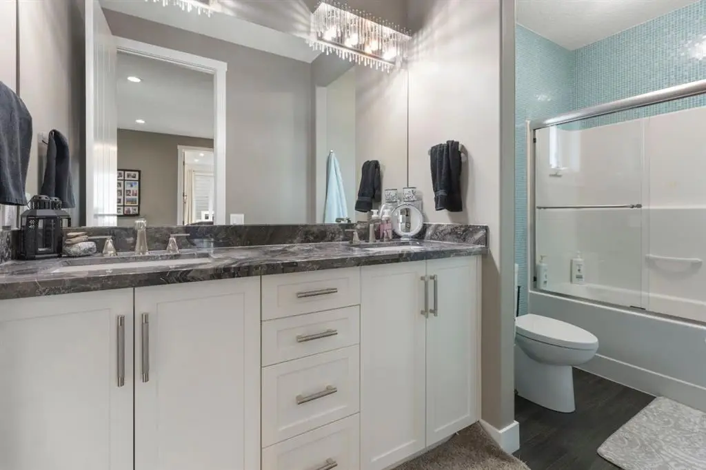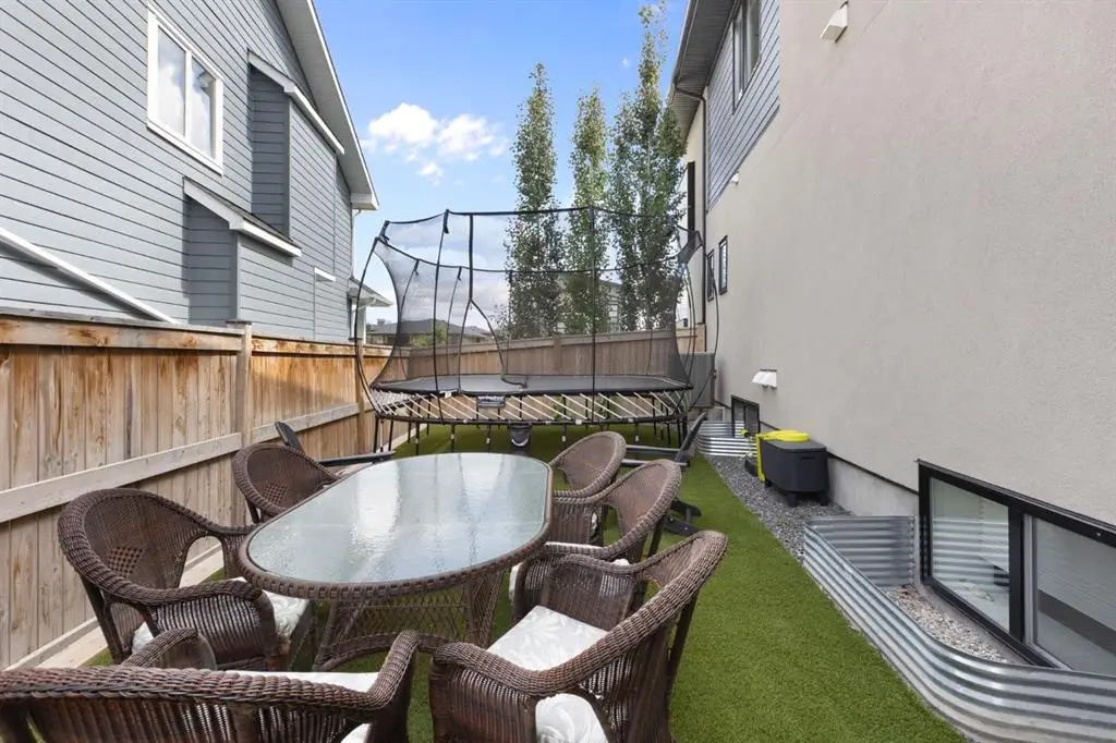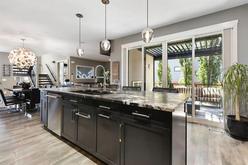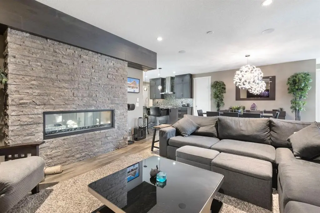 Welcome to this fully loaded luxury home designed with every detail in mind. Offering over 4,000 SF of finished living space, 6 bedrooms, and over $300K in recent upgrades inside and out, this home is truly perfect for a large or growing family. From the oversized heated 3-car garage with epoxy floors to the stunning indoor/outdoor living spaces, this property offers the ideal balance of function, comfort, and lifestyle. The heart of the home is the chef-inspired kitchen featuring leathered granite counters, under-cabinet lighting, high-end stainless steel appliances including a 5-burner gas stove, convection oven, LG fridge with sphere ice maker, microwave, plus a second fridge and wine fridge in the large pantry. A dedicated coffee station makes mornings effortless. The main floor also includes a private office, an expansive living room with a dramatic two-way fireplace, plus laundry with a convenient laundry chute. Upstairs, retreat to the luxurious owners’ suite with its private balcony, coffee station, custom dressing room, and spa-inspired ensuite with heated floors, marble vanities, oversized glass shower, skylight, and jetted tub. Three additional bedrooms with blackout shades, a full bathroom with double sinks, and a versatile bonus/games room complete the upper level. Remote blinds on front and upper bedroom windows have been add both comfort and privacy. The basement is designed for entertaining and extended family living with a full wet bar (fridge, microwave, dishwasher), second laundry, and a separate entrance. Outdoors, enjoy an automatic 4-season screened-in porch with a louvered roof, gemstone lights, irrigation, raised garden beds, water feature, cushioned turf, and a large storage shed. The low-maintenance yard and side yard access make this space practical as well as beautiful. Additional features include built-in ceiling speakers, water softener, instant hot & cold tap in the kitchen, air conditioning, decorator finishes, and an extra-long driveway with paved alley access. Located minutes from top-rated schools, Bingham Crossing, coffee shops, daycare, and upcoming amenities including a new Costco, Nordic Spa, and the East Harmony Trail extension, this property also offers easy access to downtown Calgary, the Springbank Airport, Calaway Park, and the Rockies. This is more than a home—it’s a complete lifestyle in Harmony with Lake Access. Book your private showing today and experience all the upgrades and comforts for yourself.
