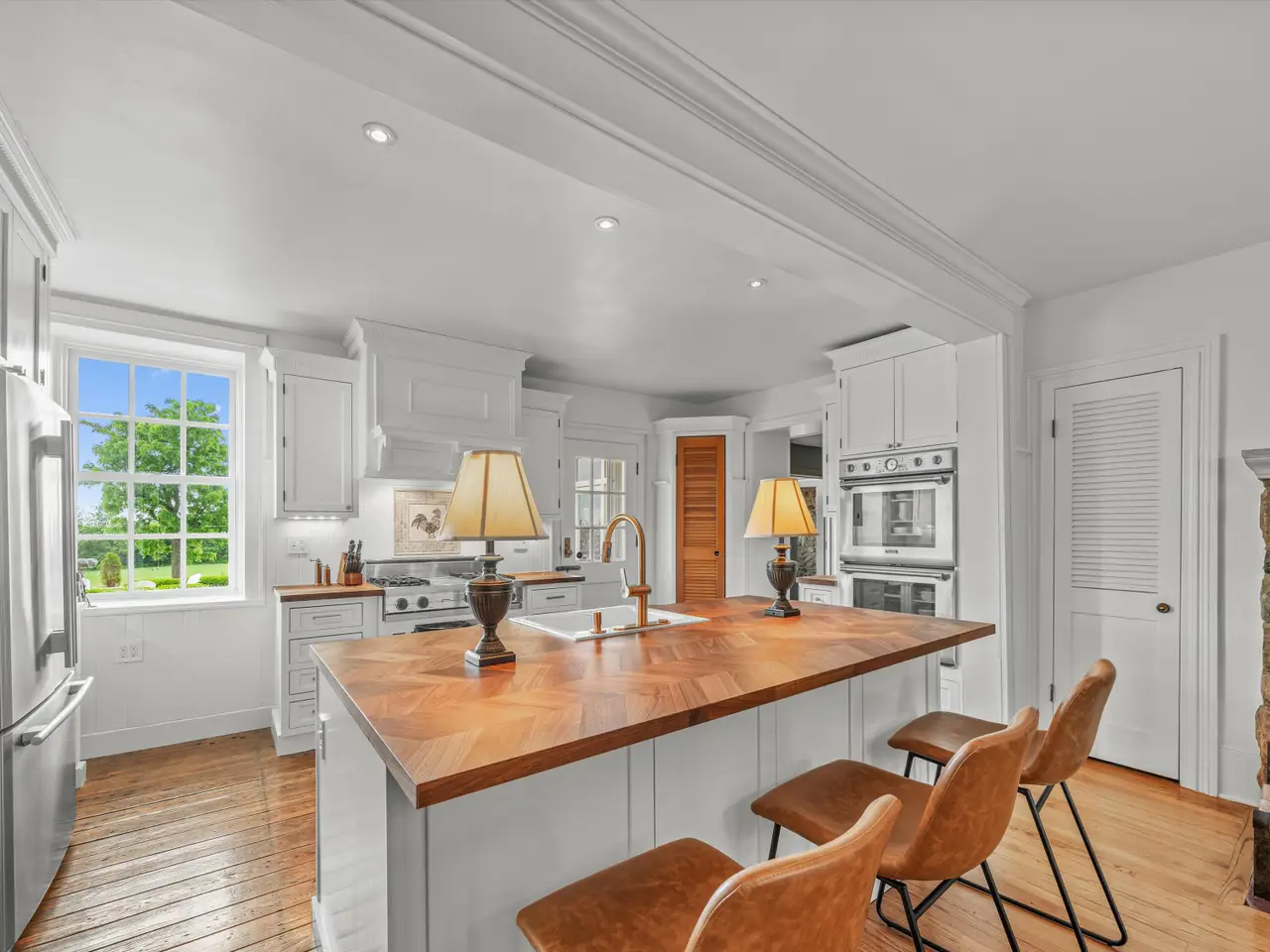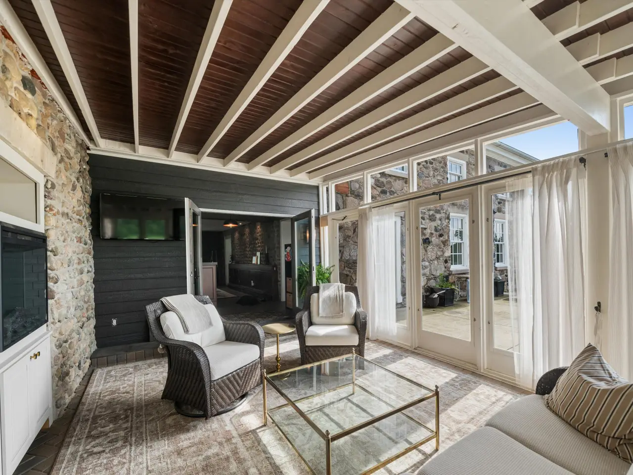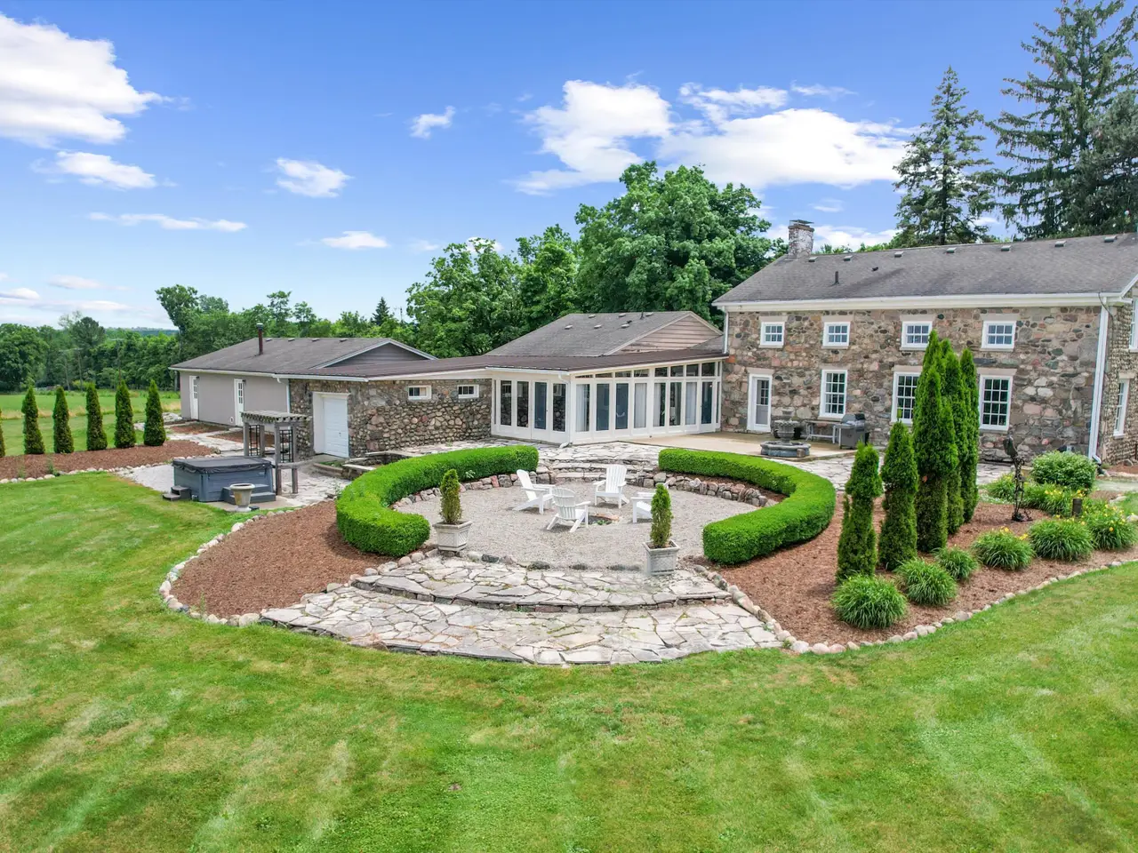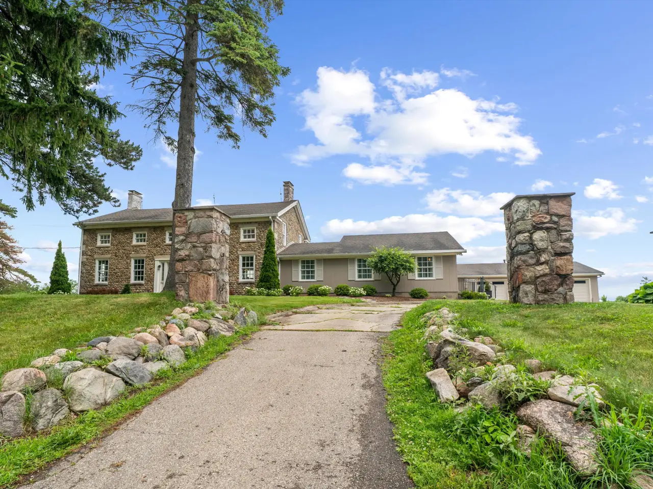 On 15.62 acres of prairie & farmland, this 1856 Cobblestone Farmhouse in Scio Twp has almost 4,000 sq. ft. of up-to-the-minute renovations. Its sophisticated design respects the classic nature of the Four-Square floor plan. It features formal living & dining rooms w/ fireplaces, a home office, updated bath & a chef's kitchen w/ custom cabinets, butcher block counters & stainless. A thoughtful addition that almost doubles the first-floor living space. It has a family room w/ impressive wet bar area, an additional bedroom or den, full bath & laundry. Upstairs is the large Primary bedroom, 3 additional bedrooms, & a renovated hallway bath. The oversized 3-season room w/ fireplace opens to an expansive outdoor living area with multiple patios & firepit area, all overlooking the expansive acreage, w/ regular visits from deer, turkeys & Sandhill cranes. Important updates include windows (2025), French doors to 3-season room (2023), garage doors (2023), well (2018) & 8-zone boiler (2018).