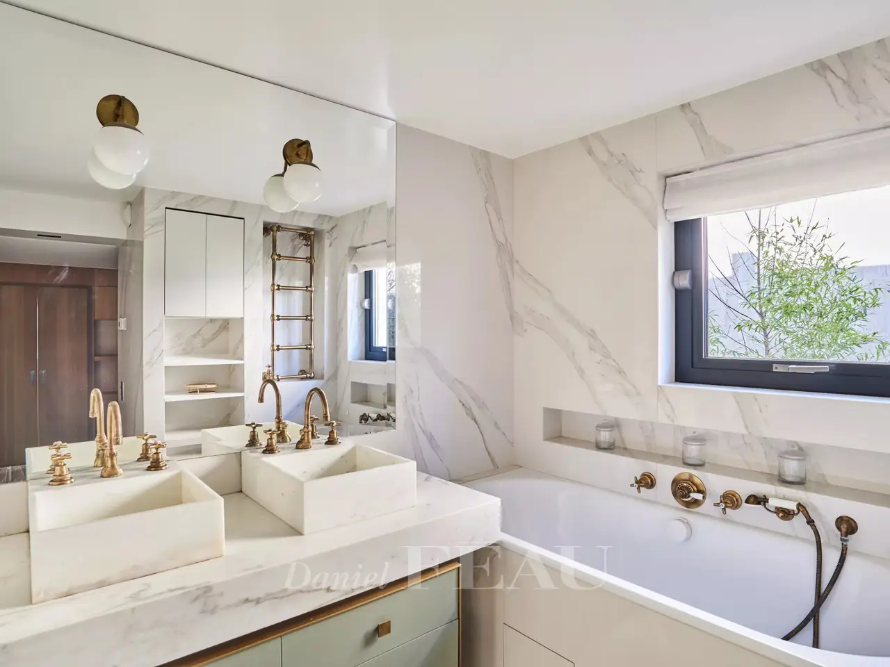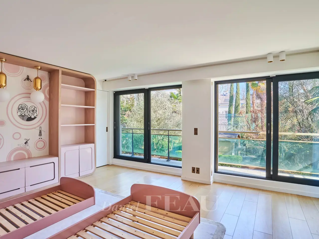 Saint James neighbourhood. This renovated split-level apartment includes a double living/reception room with a dining room opening onto a south-east facing garden, a kitchen and a guest wc. Upstairs are two suites including a master both with bathrooms, wc and dressing rooms, and two further bedrooms sharing a shower room/wc. With two parking space and two cellars.