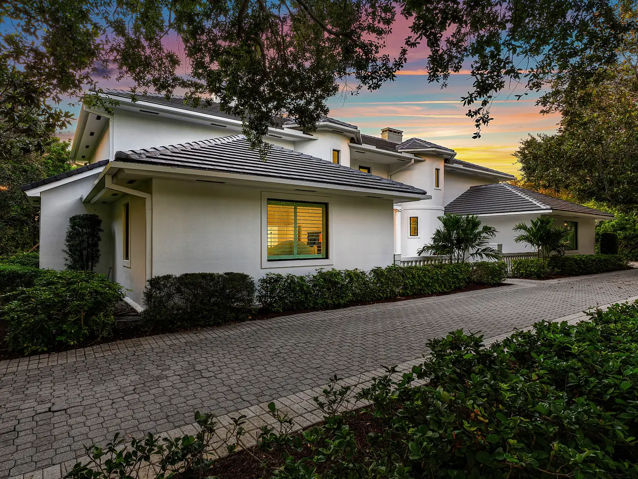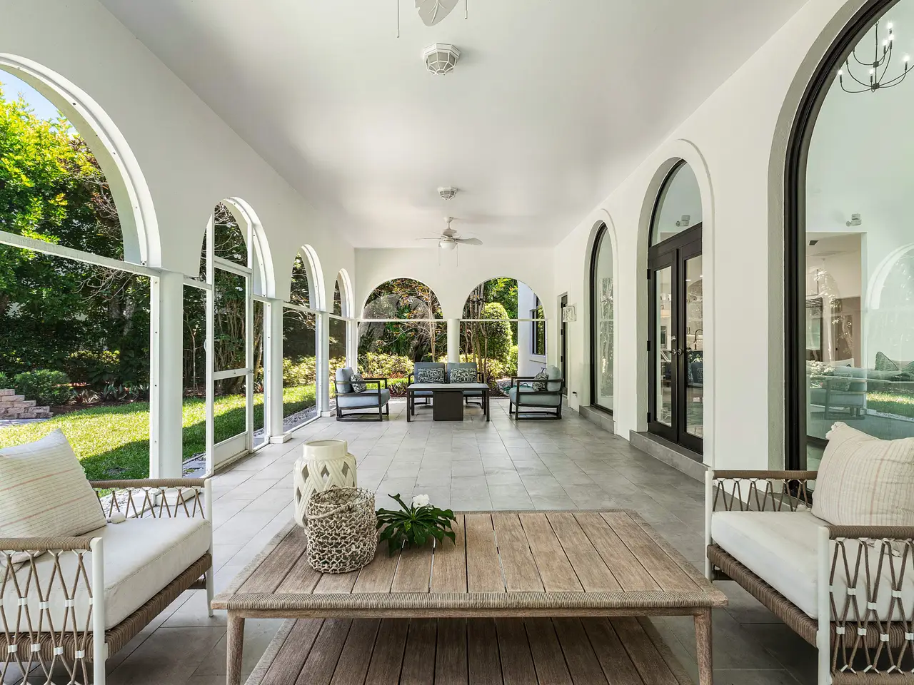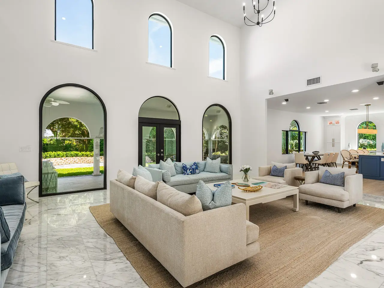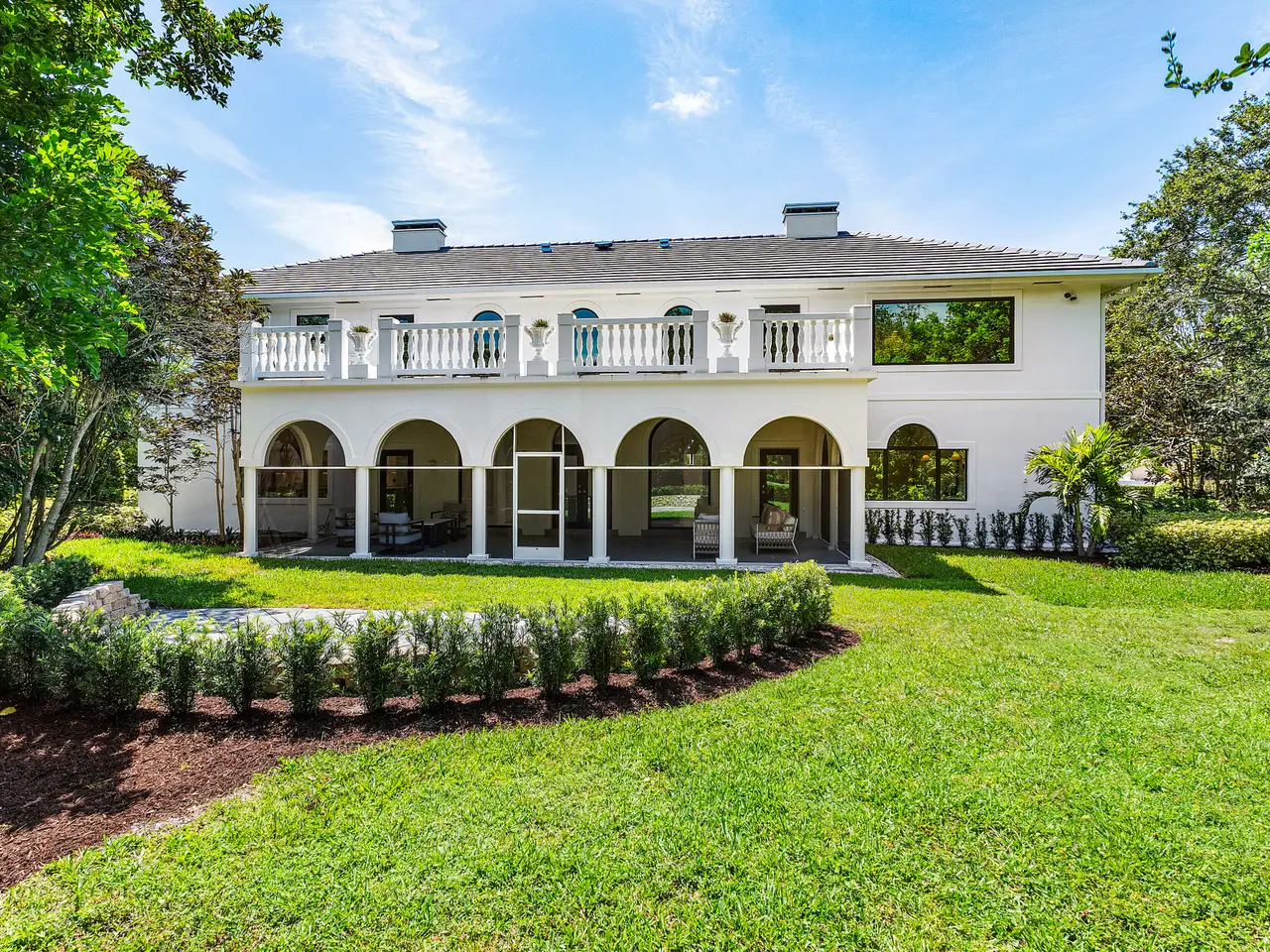 A rare opportunity awaits to own a fully renovated single-family home in the exclusive, private, gated golf community of Jupiter Hills--with no membership required (though optional). Situated on a beautifully landscaped half-acre lot with highly desirable southwestern exposure, this impeccably updated residence overlooks the scenic fairways of one of Florida's most prestigious golf courses. Designed with a sophisticated blend of modern luxury and timeless elegance, the home welcomes you with a dramatic two-story foyer featuring gleaming white marble floors and custom arched impact-rated windows and doors throughout. The main living space is spacious and refined, flowing seamlessly into a gourmet kitchen outfitted with chef-grade WOLF appliances, double ovens, an oversized Sub-Zero refrigerator, custom wood cabinetry, and a stunning quartz island, perfect for entertaining or family gatherings. The first floor offers two luxurious primary bedroom suites, each with spa-inspired bathrooms, stone detailing, backlit mirrors, and custom walk-in closets with smart built-ins. This layout allows for a private Owner's Wing, with the second suite serving as an ideal office, gym, or media room. Upstairs, two additional guest bedrooms, one with balcony access, are accompanied by a generous loft area with a built-in bar and private balcony, ideal for large-scale entertaining. Throughout the home, you'll find marble and porcelain flooring, designer lighting by Serena & Lily, and a whole-home mesh WiFi system. Outdoor living is effortless with a spacious screened lanai and a grand pillared balcony on the second floor, all surrounded by lush, tropical landscaping and serene golf course views. Exterior features include a brand-new slate tile roof, stone patios, and new gutters. Jupiter Hills, founded by Bob Hope and George Fazio, is nestled among two world-class golf courses. The Hills Course and The Village Course, both ranked among Florida's best. The community boasts the highest elevation in South Florida and a rich natural landscape. Just beyond the gates, residents enjoy quick access to marinas, fine dining, and pristine beaches. Jupiter's shoreline, located along the Gulf Stream, is a haven for sport fishing and provides convenient boating access to the Bahamas. This exceptional home offers not only refined living, but also a coveted lifestyle in one of Florida's most celebrated golf communities with no membership required to enjoy it.