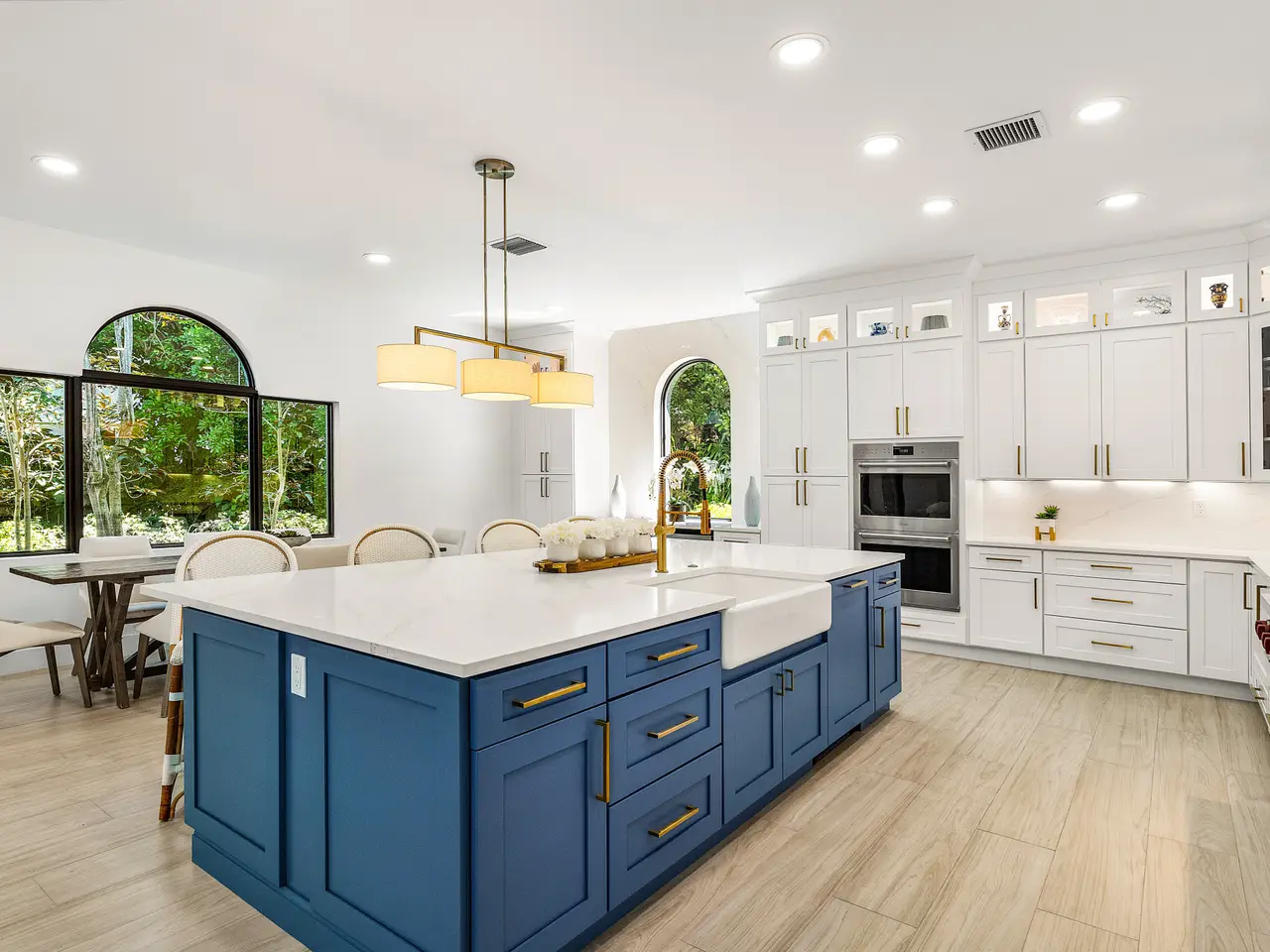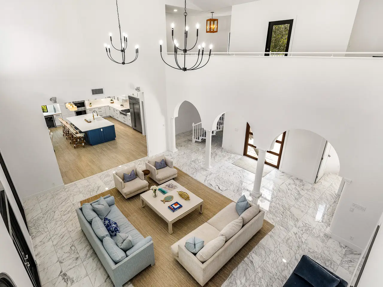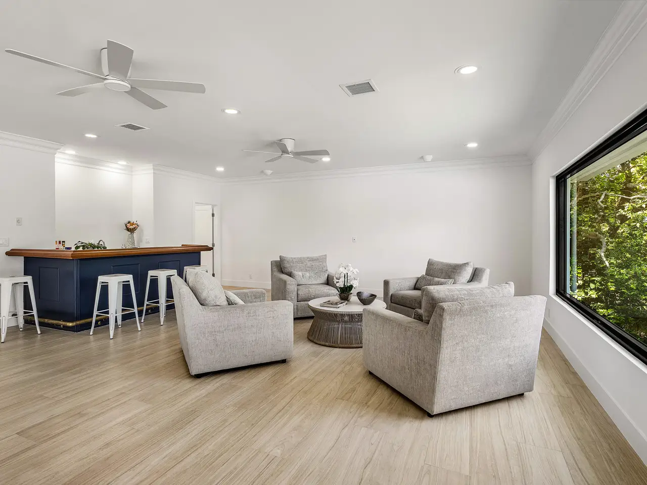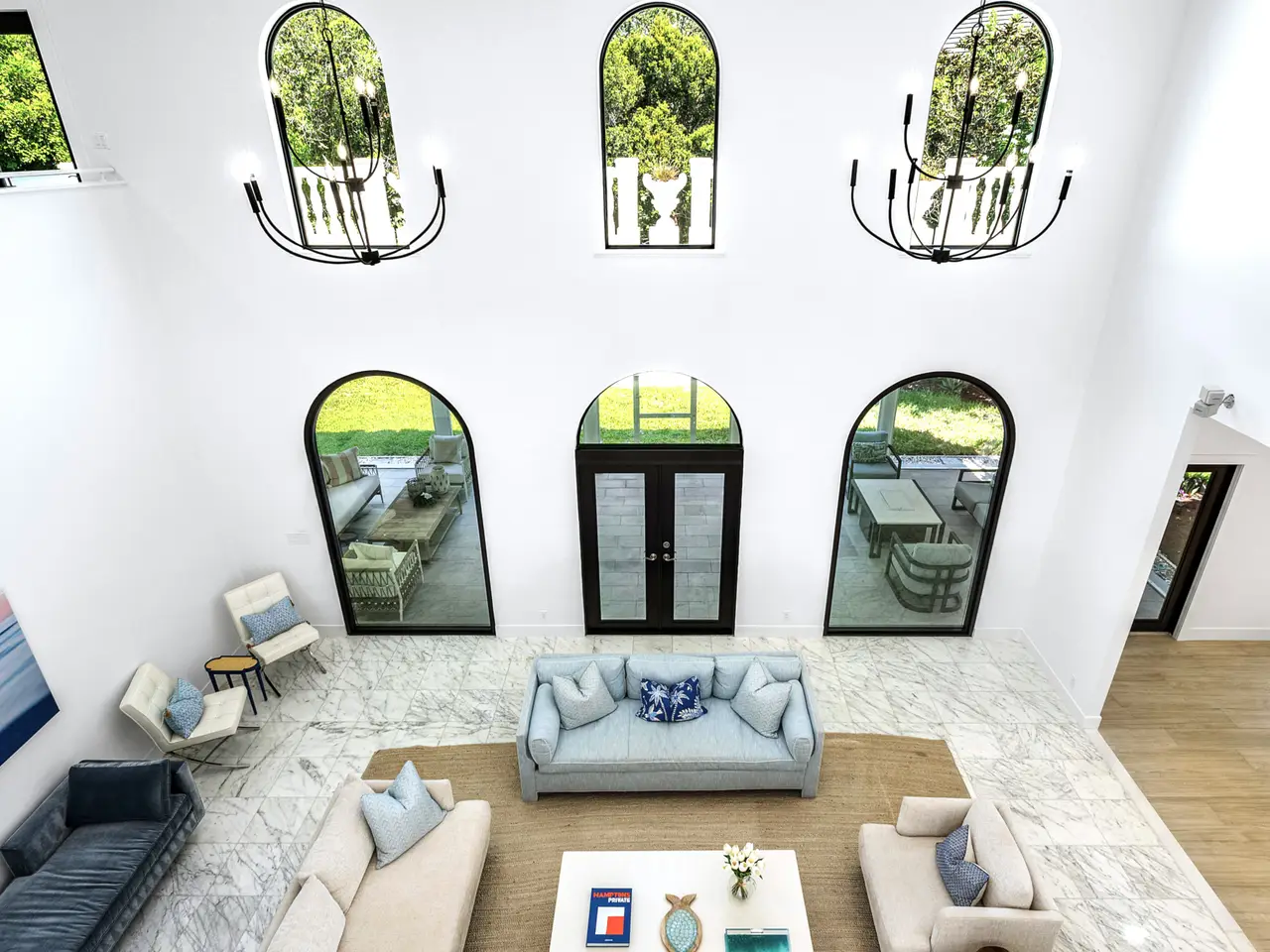 A rare opportunity awaits to own a fully renovated single-family home in the exclusive, private, gated golf community of Jupiter Hills--with no membership required (though optional). Situated on a beautifully landscaped half-acre lot with highly desirable southwestern exposure, this impeccably updated residence overlooks the scenic fairways of one of Florida's most prestigious golf courses. Designed with a sophisticated blend of modern luxury and timeless elegance, the home welcomes you with a dramatic two-story foyer featuring gleaming white marble floors and custom arched impact-rated windows and doors throughout. The main living space is spacious and refined, flowing seamlessly into a gourmet kitchen outfitted with chef-grade WOLF appliances, double ovens, an oversized Sub-Zero refrigerator, custom wood cabinetry, and a stunning quartz island, perfect for entertaining or family gatherings. The first floor offers two luxurious primary bedroom suites, each with spa-inspired bathrooms, stone detailing, backlit mirrors, and custom walk-in closets with smart built-ins. This layout allows for a private Owner's Wing, with the second suite serving as an ideal office, gym, or media room. Upstairs, two additional guest bedrooms, one with balcony access, are accompanied by a generous loft area with a built-in bar and private balcony, ideal for large-scale entertaining. Throughout the home, you'll find marble and porcelain flooring, designer lighting by Serena & Lily, and a whole-home mesh WiFi system. Outdoor living is effortless with a spacious screened lanai and a grand pillared balcony on the second floor, all surrounded by lush, tropical landscaping and serene golf course views. Exterior features include a brand-new slate tile roof, stone patios, and new gutters. Jupiter Hills, founded by Bob Hope and George Fazio, is nestled among two world-class golf courses. The Hills Course and The Village Course, both ranked among Florida's best. The community boasts the highest elevation in South Florida and a rich natural landscape. Just beyond the gates, residents enjoy quick access to marinas, fine dining, and pristine beaches. Jupiter's shoreline, located along the Gulf Stream, is a haven for sport fishing and provides convenient boating access to the Bahamas. This exceptional home offers not only refined living, but also a coveted lifestyle in one of Florida's most celebrated golf communities with no membership required to enjoy it.