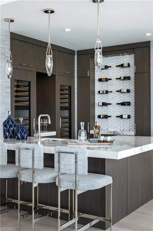 Where coastal elegance meets timeless sophistication, Penthouse #3 at The Regent offers a truly rare opportunity to own one of Naples' most prestigious sky residences. Encompassing 12,135 square feet of thoughtfully designed living space, this exquisite penthouse is gracefully perched above the turquoise waters of the Gulf of Mexico, with unrivaled panoramic views stretching endlessly along the coastline. Bathed in natural light and kissed by Gulf breezes, the residence seamlessly blends classic refinement with relaxed seaside charm. Expansive glass walls open to generous terraces, inviting the outdoors in and capturing the colors and calm of the sea from sunrise to sunset. The home features five spacious bedroom suites, each with a private bath, along with two additional powder rooms, a richly appointed study, a comfortable media room, and a tranquil cabana room that offers a quiet escape with direct terrace access. A distinctive and sought-after highlight, the private guest cottage suite provides a serene haven of its own-complete with a full guest kitchen, covered terrace, and private elevator access-perfect for extended stays or independent living quarters. From the elegant formal spaces to the chef's kitchen and discreet butler's pantry, every detail has been curated to enhance livability while maintaining a sense of effortless luxury. Rarely found in high-rise residences, the climate-controlled private 3-car garage offers both convenience and security. Set within The Regent at Park Shore, a landmark of coastal luxury with white-glove service, gated privacy, and direct beach access, Penthouse #3 offers not only a residence, but a lifestyle-where sophistication flows as naturally as the tides, and every day is framed by the beauty of the sea.