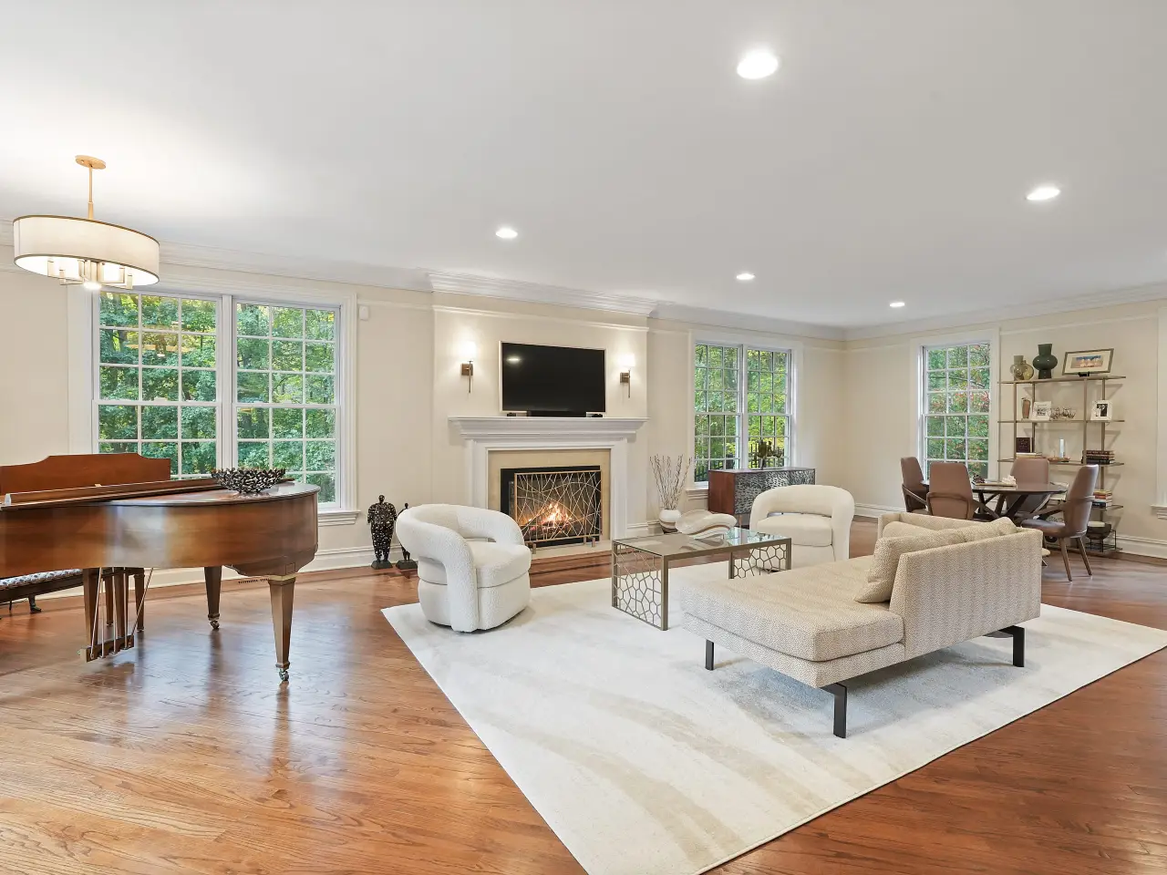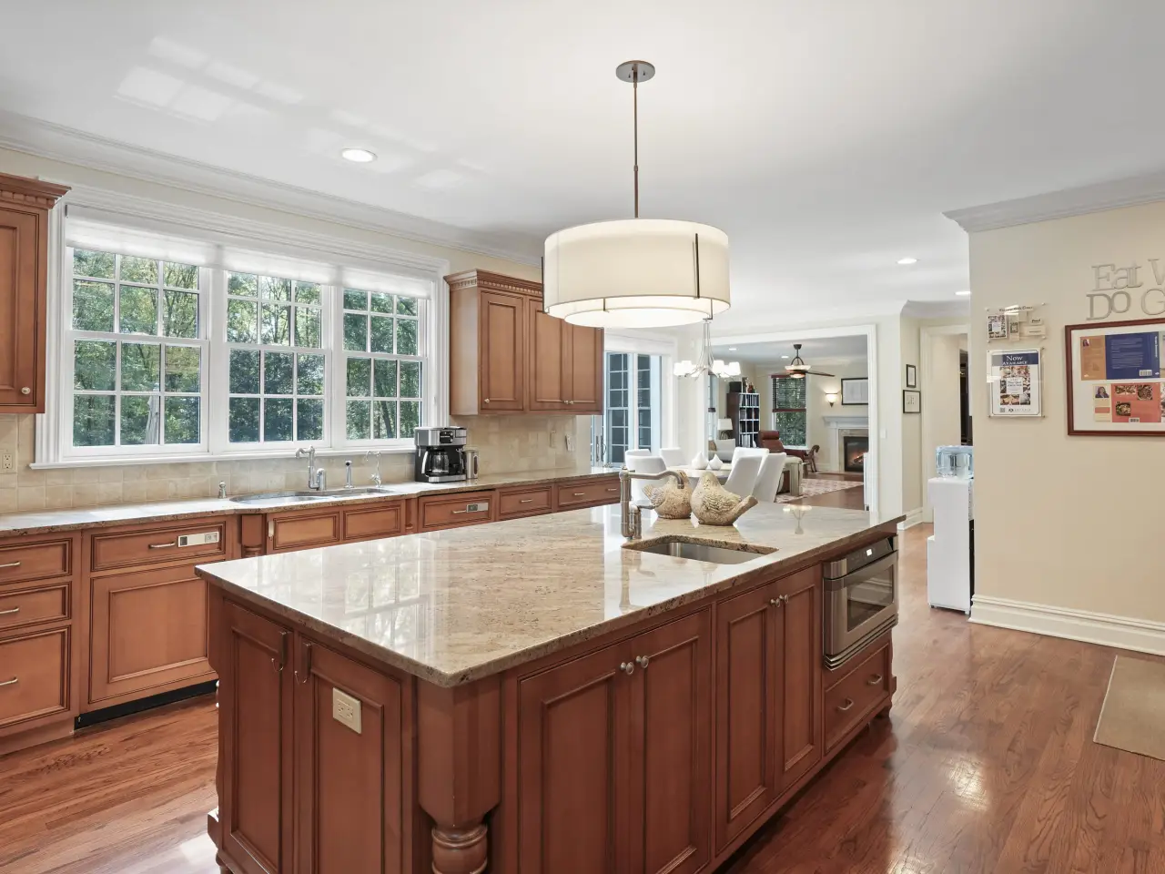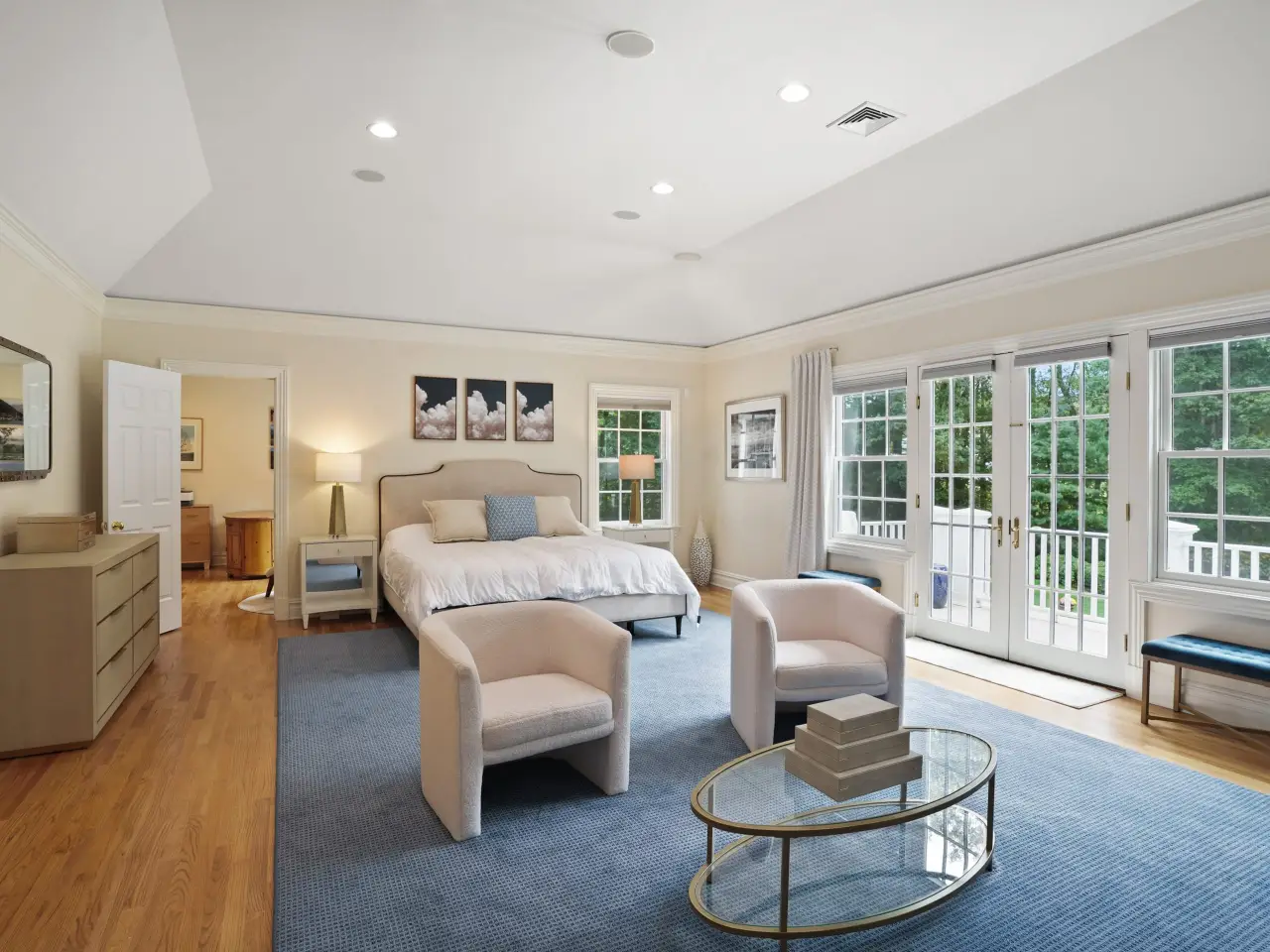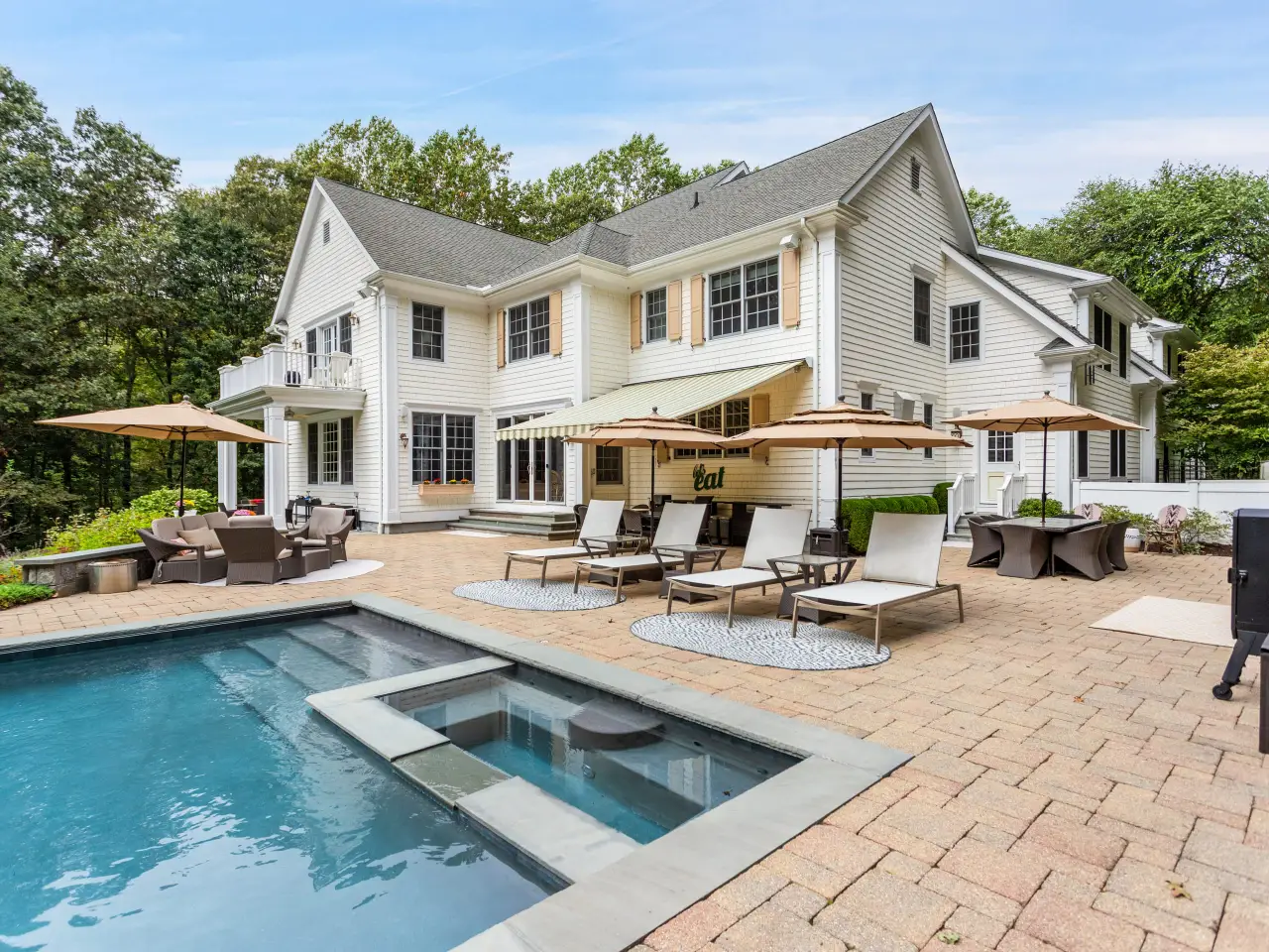 First time ever on the market! Spacious, immaculate and private, classic Colonial, with 5+ en suite bedrooms located in a premier gated community sitting on over six beautifully landscaped acres. Newly refinished saltwater pool and spa, expansive surrounding patio, outdoor kitchen, putting green, and gazebo create an idyllic backyard. The massive chef's kitchen is the heart of the home and was designed by the owner who is an illustrious cookbook author. It includes two of everything; double refrigerators, dishwashers, Sub-Zero drawers, new wall ovens, new Wolf gas cooktop and a large walk-in pantry. An inviting family room flows seamlessly from the kitchen, featuring one of three fireplaces. A butler's pantry leads to a spacious dining room just waiting for warm and wonderful gatherings. The main floor includes a flex room, with en suite bathroom and private entrance.The primary suite is impressive with a large sitting room/office, fireplace, French doors that lead to a balcony with expansive views, two walk-in closets and a spa bath. A bonus media room is perfect for family movie night. The fully finished walkout basement includes a gym, playroom, full bath, sauna and wine storage. The home was freshly painted and includes a new whole-house generator. This home is incredibly gracious with both formal and family spaces designed with an open flow for entertaining, and memorable celebrations. Moments to train and town and simply fabulous!