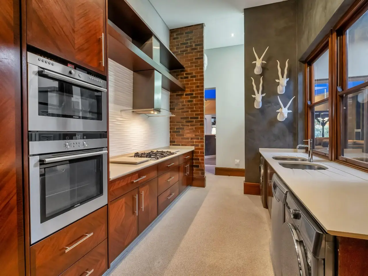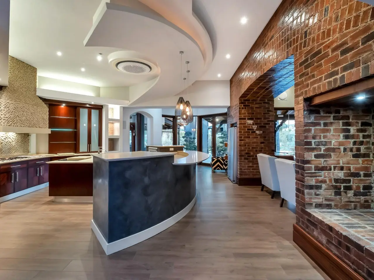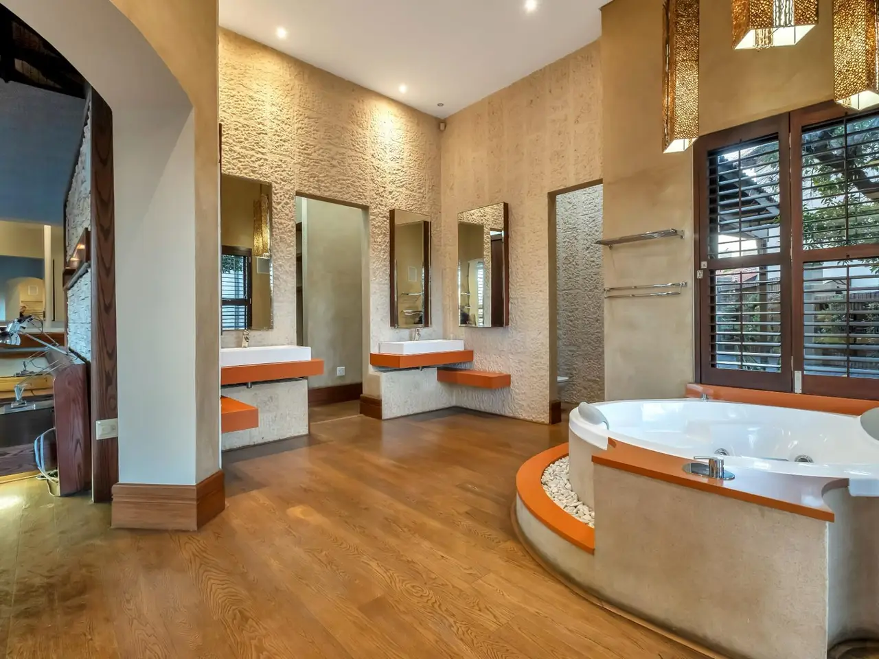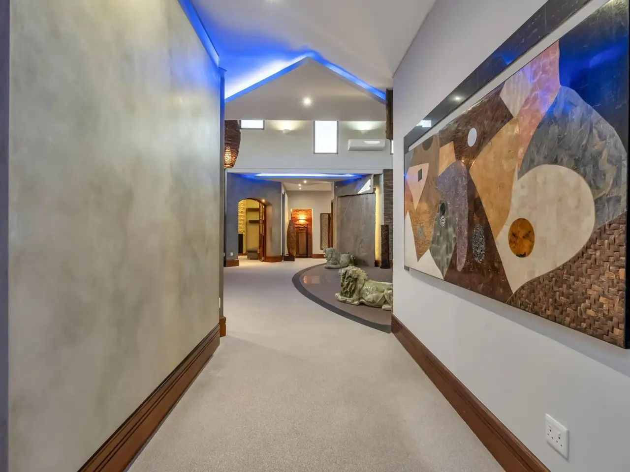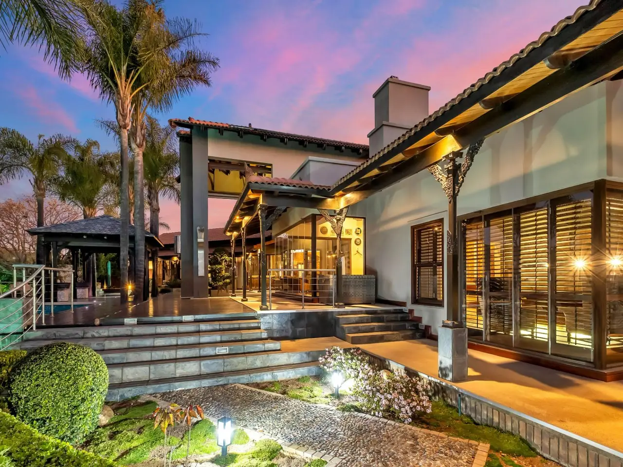 Step into a world of tranquil sophistication with this exceptional and authentic Balinese-inspired residence, where every detail evokes the serenity and artistry where every detail revokes serenity. Set a sprawling stand that rolls gently down towards the river, this expansive home offers a rare combination of privacy, indulgent finishes, and resort-style living. A dramatic double-volume entrance, framed by soaring dark wood beams, sets the tone for this remarkable property. Hand-carved Balinese pillars, an ornate front door, and curated artefacts create an immersive experience of Eastern-inspired luxury from the moment you arrive. The four exisite bedrooms and fifth as part of a cottage are all 5 star accommodation. The main en suite is a private sanctuary, thoughtfully set apart from the rest of the home. Featuring a built-in oversized bed beneath a detailed open-beam ceiling, fireplace, and a luxurious bathroom with Jacuzzi bath and shower, this retreat flows effortlessly to a secluded patio through expansive stacker doors. Two additional en suite bedrooms boast floor-to-ceiling glass walls with uninterrupted views of the pool and entertainment area. A fourth guest bedroom offers quiet seclusion, while the fifth bedroom suite is a fully independent studio-style retreatGÇöideal for guests or as a private home office, with its own exterior access. The formal lounge, framed by floor-to-ceiling glass, gazes out onto an indigenous water feature, infusing natural calm into the heart of the home. A private cinema room and a spacious games room with adjoining cellar provide multiple areas for refined relaxation and entertaining on a grand scale. The resort-style entertainment area is anchored by a sprawling swimming pool and a serene covered oriental gazebo, perfect for al fresco dining or sunset lounging. Lush landscaped gardens extend down to the river, offering a setting of rare natural beauty and peace. Additional Features GÇó 6 Garages GÇó Multiple fireplaces throughout GÇó Open frontage river access GÇó Large solar power inverter system GÇó Numerous water tanks GÇó Estate-level privacy and security This home is more than just a residenceGÇöit's an experience. Perfect for the discerning buyer seeking a one-of-a-kind lifestyle, this masterpiece offers the ultimate in elegance, privacy, and timeless charm.