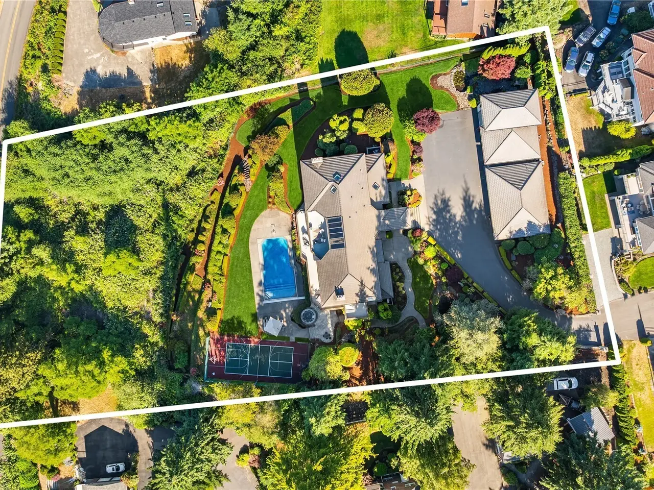 Panoramic Puget Sound views and vacation-worthy amenities beckon at every turn; this Browns Point residence is a true Pacific Northwest treasure. Splendid living spaces promise epic entertaining & luxurious relaxation. Chef's kitchen boasts rare Koa wood cabinetry, heated granite floors, dual Sub-Zero fridges, butler's pantry. Absolutely dreamy suites feature view decks & spa-inspired ensuite baths; guest suite features 2nd kitchen. Home theater, premium wine storage, office, gym, 6-car detached garage ready to impress. Heated in-ground pool & spa, sport court, manicured gardens offer outdoor bliss! Full security system w/12-camera surveillance ensures peace of mind. Close to Dash Point State Park, Center at Norpoint, golf, shopping, marinas.