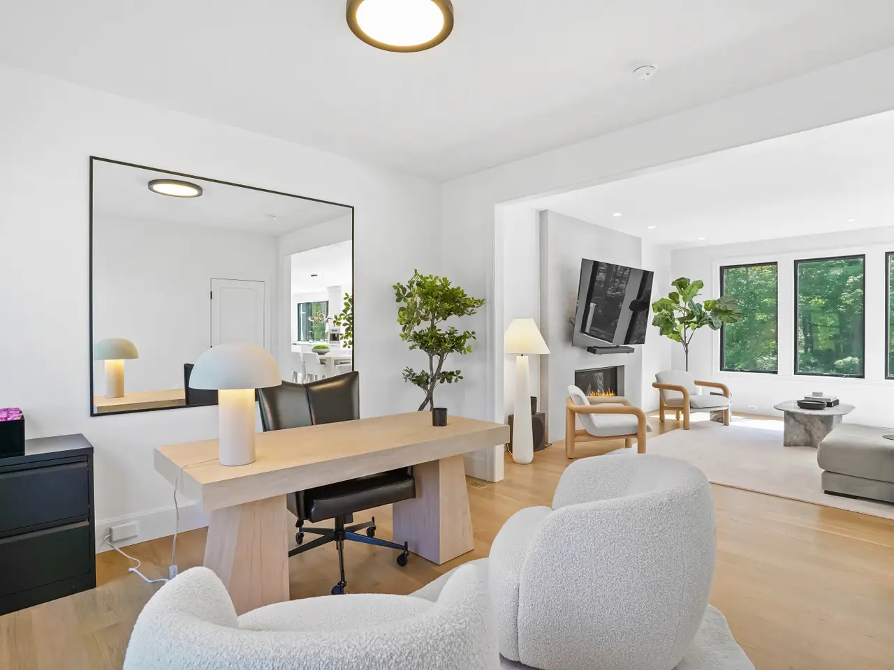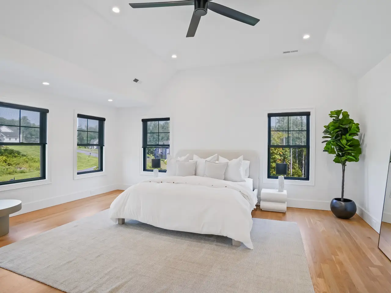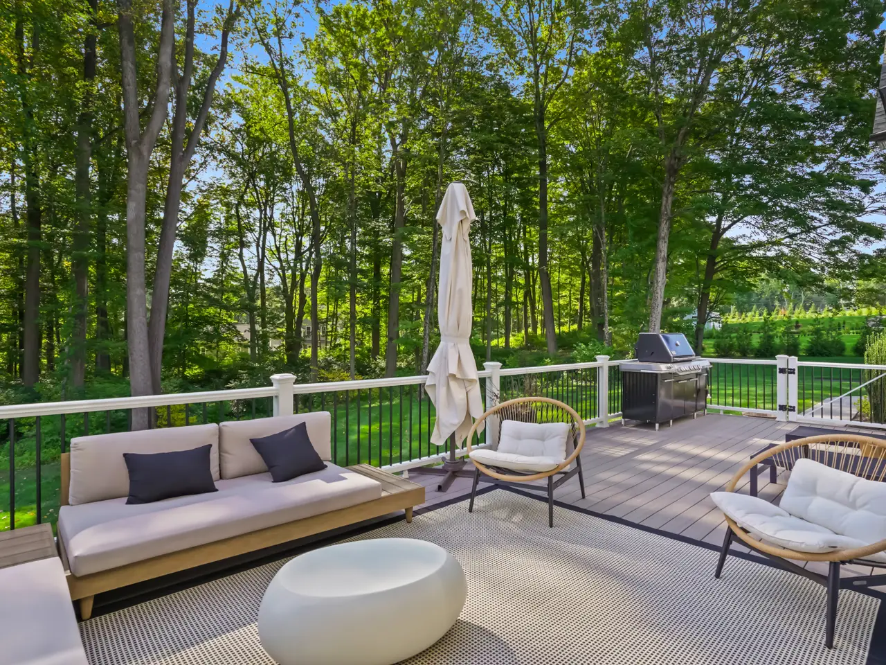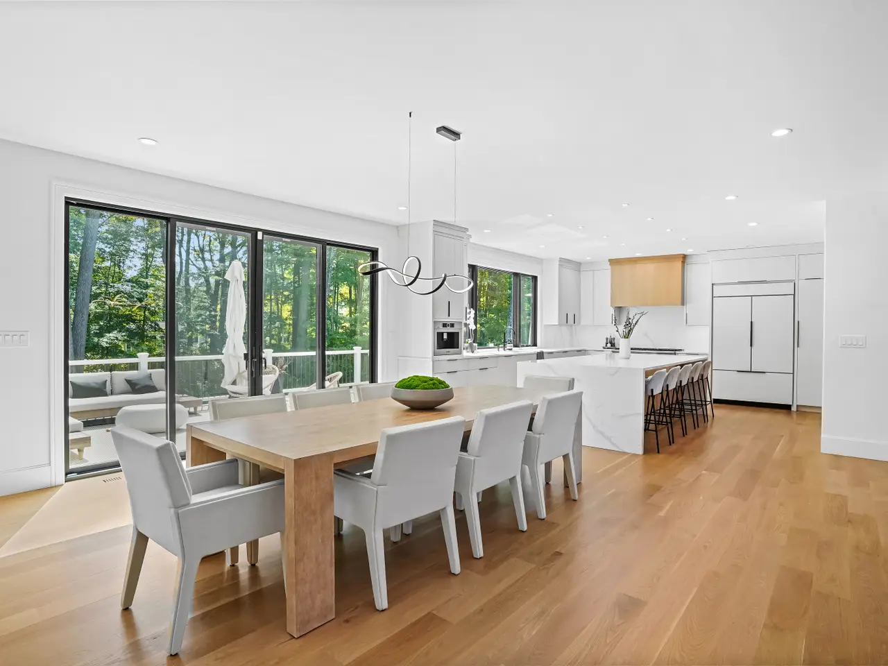 Magnificent Home in Private Cul-de-Sac. Tucked within enclave of newer, high-end homes, this exquisite residence offers a perfect combination of architectural drama and everyday comfort. Even when entering through the Side Door, you'll be immediately struck by the home's open-concept design and impeccable finishes. A massive cantilevered metal front door makes a bold statement for guests, opening to a soaring two-story foyer w/striking designer lighting. Wide-plank white oak flooring flows seamlessly through LR,DR,& expansive eat-in kitchen, creating a natural sense of continuity. Kitchen is a chef's dream, anchored by oversized quartz waterfall island w/seating for five & undercounter lighting. Professional-grade appliances include 8-burner dbl oven Viking range w/hood, Viking microwave & warming drawer, Bosch dishwasher, Bosch Coffee Station, Sub-Zero Refrigerator. The walk-in pantry (10' x 8.6') w/pocket door offers exceptional storage & Wine Chiller. Floor-to-ceiling windows flood the space with natural light, enhancing the open, airy ambiance. Step outside to the oversized Trex deck or relax on the concrete patio, surrounded by professional landscaping & mature arborvitae for privacy. The Primary Bedroom Suite is a private retreat, featuring 2 Walk-in Closets & Oversized spa-like bath w/walk-in shower, separate Soaking Tub, water closet w/Kohler commode, adjustable backlit mirrors w/defogging capabilities (which are throughout the home). Continue to Addendum Guest Suite w/private Full Bath, 2 Bedrooms share Jack & Jill Full Bath. Sprinkler System, Nest programmable system for security, thermostat, garage. All of the upgrades were arranged privately between the Seller and the Builder.