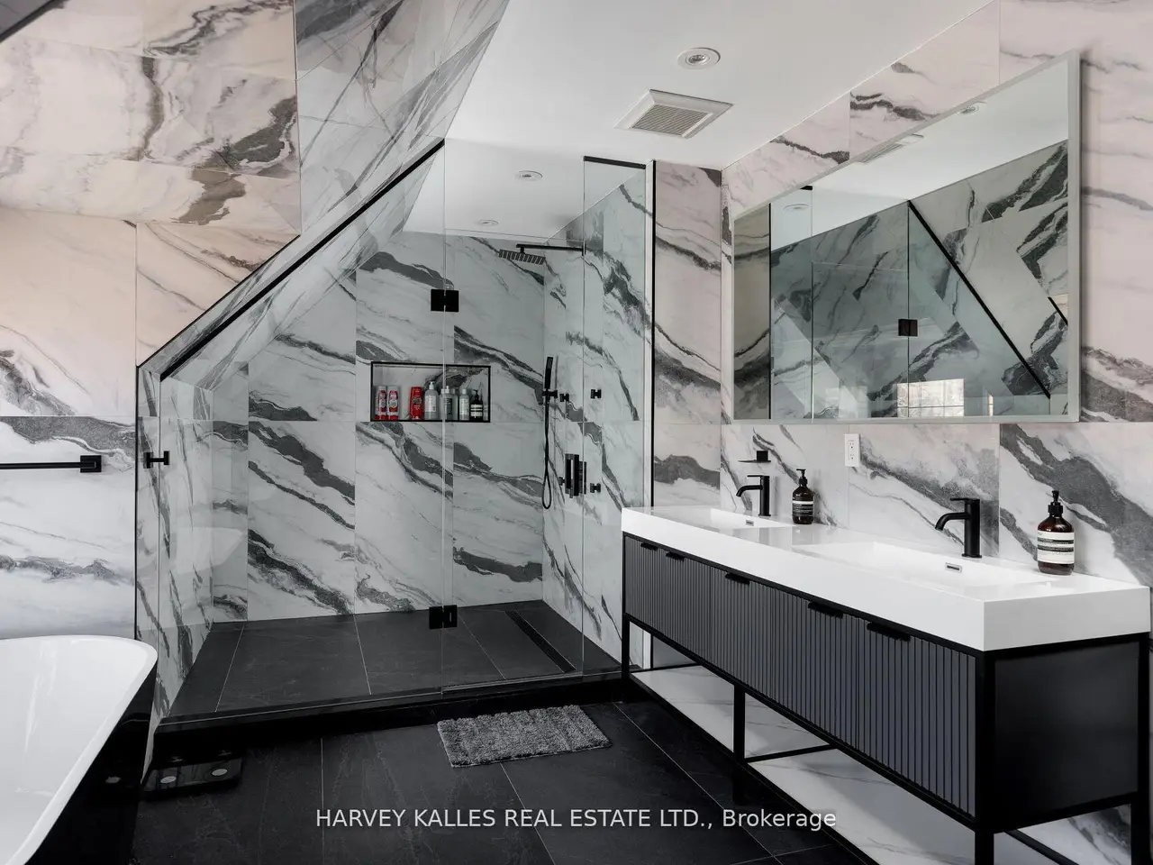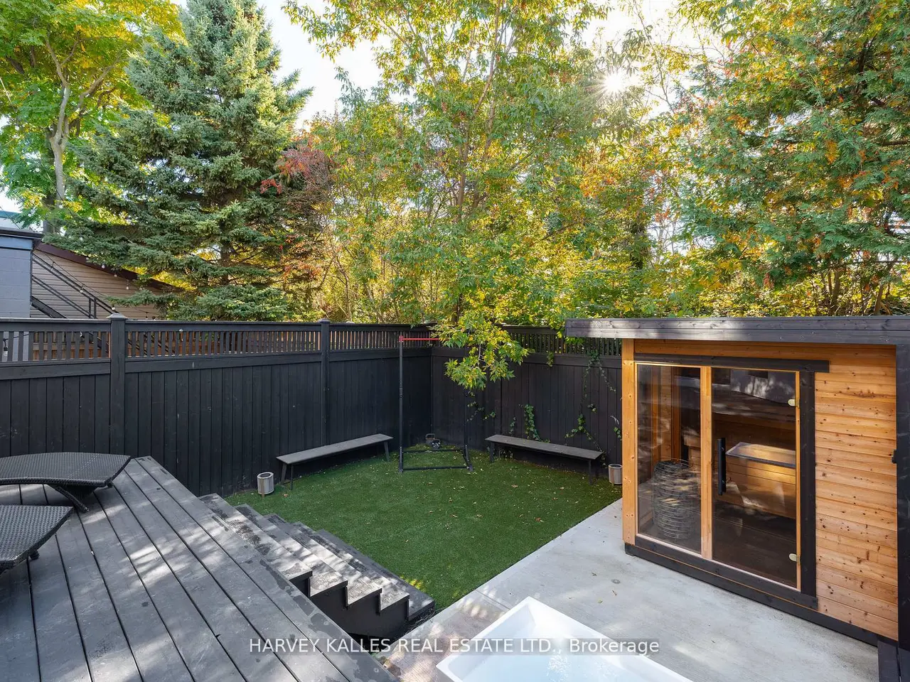 Step into this luxurious, renovated residence in the Republic of Rathnelly, a coveted residential enclave on the border of Yorkville and Summerhill. This home is uncompromising, offering family-functional interiors, a low-maintenance outdoor space with a cold plunge and sauna, and the best the city has to offer right at your doorstep. Light floods the house from every angle, and contrasting colours and materials create a striking first impression. On the main floor, you will find a powder room, a living room, large dining room, and a gorgeous over-sized kitchen with professional appliances and extensive storage space with views of the fully landscaped backyard. The outdoor space is low maintenance and thoughtfully laid out with a deck made for sun tanning, turf space for kids and pets to play and a cold plunge and sauna for the ultimate in rest and recovery. On the second floor, ideal for kids or guests, there are three bedrooms, including the perfect home office, two beautiful bathrooms and a convenient oversized laundry closet with a stacked washer/dryer and a sink. The third floor is the perfect owner's retreat with an oversized bedroom, walk-in closet, and hotel-inspired bathroom. A fully finished lower level with a recreation room, full bathroom and space roughed-in for an expansive laundry room completed the home. Live peacefully in this family-friendly enclave with parks, transit, and all the shops and restaurants Summerhill and Yorkville have to offer right at your doorstep.