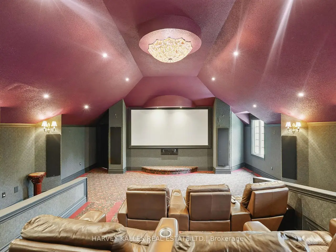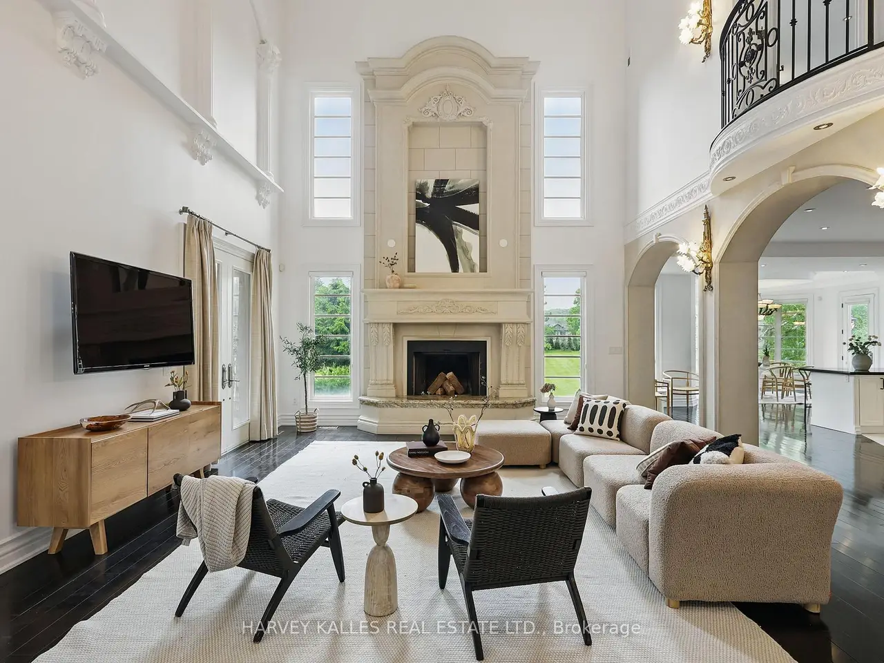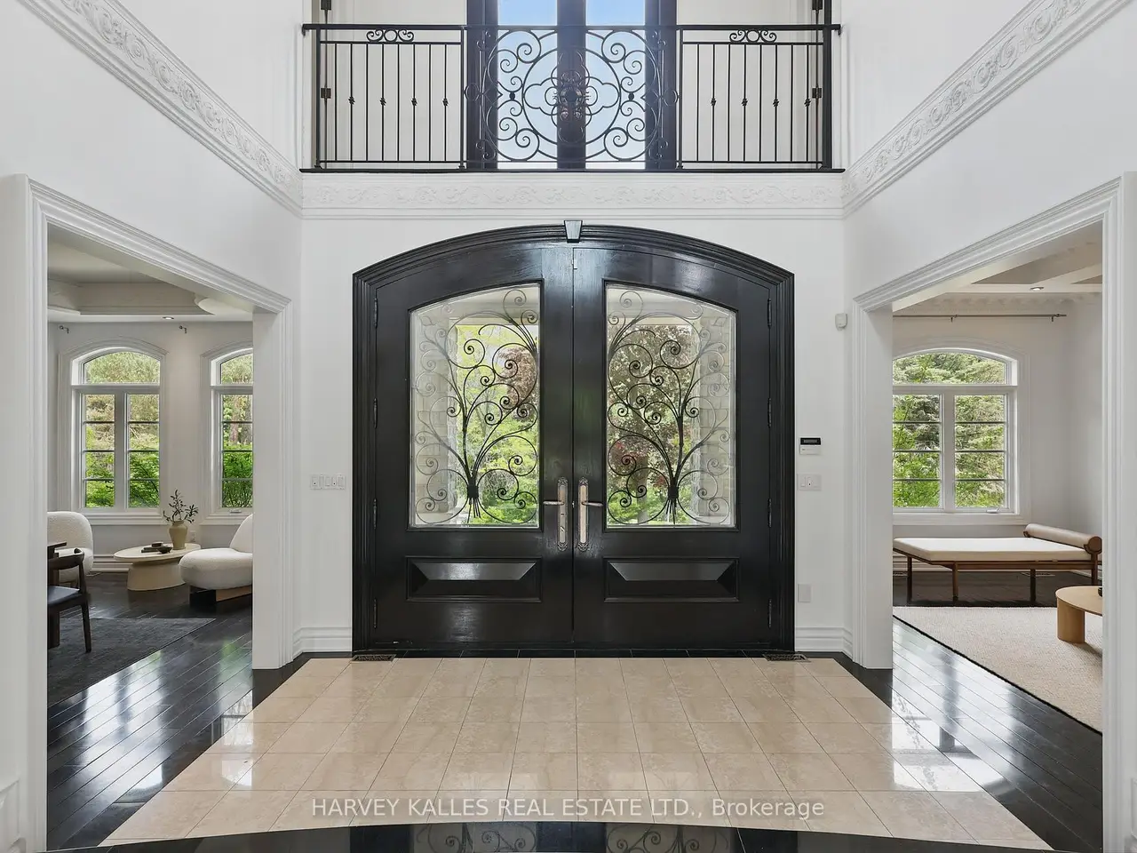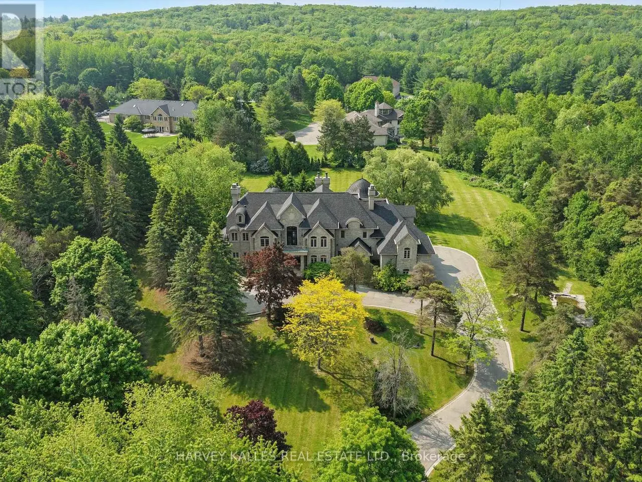 Welcome to 443 Dearbourne Avenue! No detail has been spared in this breathtaking custom-built estate, offering approximately 11,000 square feet of sophisticated, refined living space. Privately nestled on 4.42 acres of pristine land, surrounded by mature trees and lush, professional landscaping, this residence redefines elegance and tranquility. Step into a grand foyer featuring soaring 34-foot cathedral ceilings. The family room is a true showstopper, anchored by a floor-to-ceiling stone mantel fireplace that exudes warmth and grandeur and overlooks the covered terrace. The main floor offers exceptional versatility with a gourmet kitchen, a fully equipped movie theatre and a dedicated home office for modern living needs, as well as a private bedroom with an ensuite. The basement features a separate apartment, perfect for multi-generational living. Throughout the home, elegant custom wrought iron accents, Juliette balconies, and multiple walkouts frame unobstructed scenic views, allowing the beauty of the outdoors to flow in naturally. Additional features include an attached 5-car garage equipped with an EV charger, perfect for car enthusiasts or growing families. This extraordinary estate blends timeless elegance with modern luxury, offering an unmatched living experience in a serene, private setting.