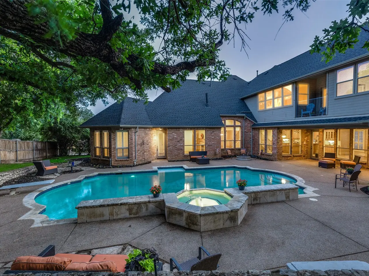• Serene backyard with grill, firepit, & diving pool