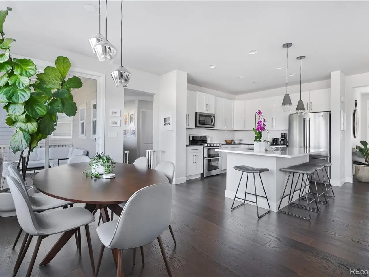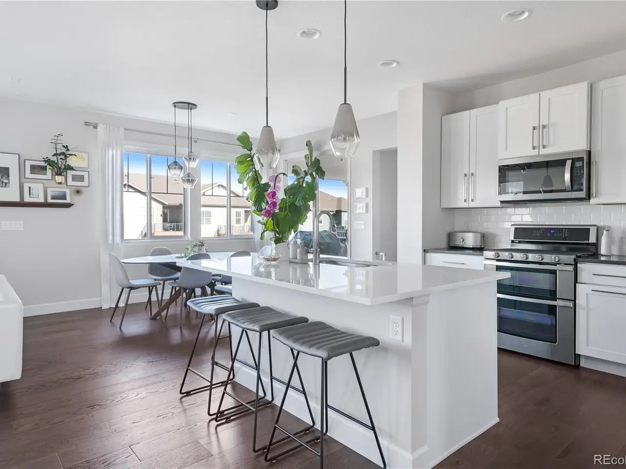 www.15551W49th.com - Discover the perfect blend of modern convenience and Colorados natural beauty in this stunning home, ideally situated in the sought-after Gardens at Table Mountain neighborhood in Golden. Situated on a private drive, this residence offers designer finishes, an open floor plan, elevated ceilings, abundant natural light, and views of North Table Mountain. A private office with French doors provides the ideal work-from-home space, while a discreet powder room is tucked off the entryway. The bright and inviting living room flows seamlessly into a gourmet kitchen, complete with a large center island with seating for four, stainless steel appliances including a gas range and French door refrigerator, white shaker cabinetry, timeless subway tile, and elegant quartz countertops. The dining area is adjacent to a covered Trex-style deck that leads to a newer patio and beautifully landscaped, low-maintenance backyardperfect for outdoor dining & entertaining. Conveniently located off the kitchen, the mudroom includes a built-in office to provide everyday functionality and effortless flow. Upstairs, the spacious primary suite captures mountain views and features a spa-like bathroom with dual sinks, a frameless glass shower, and a generous walk-in closet. Two additional bedrooms, a full bath, and a dedicated laundry room with custom shelving & cabinetry complete the upper level. The garden-level basement, finished in 21, offers flexible living with a bright family room, fourth conforming bedroom, stylish bath, and a flex space currently used as a home gym. The custom bar with floating shelves and beverage fridge makes it an entertainers dream. Enjoy community amenities including a pool, multiple parks, trails, and open spaceall within easy reach of top-rated schools, downtown Goldens shops and restaurants, and nearby hiking and biking trails. Quick access to major highways ensures effortless commutes and weekend adventures alike.