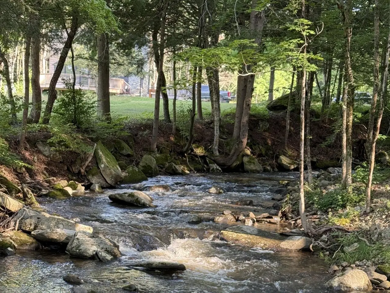 Fabulous property with ponds, rushing streams, huge acreage and a gem of a house. The 220 acres has extensive trails and a mile of road frontage, Walker Brook and Spark brook both run through the property. The 2BR/2.5B home has lovely views of the pond and hills beyond, and was totally renovated to the highest standards in 2023 and 2024. Native stone fireplace, heart pine floors.