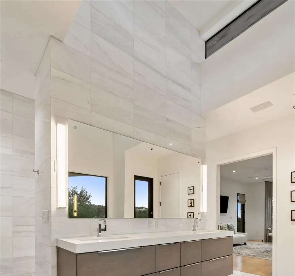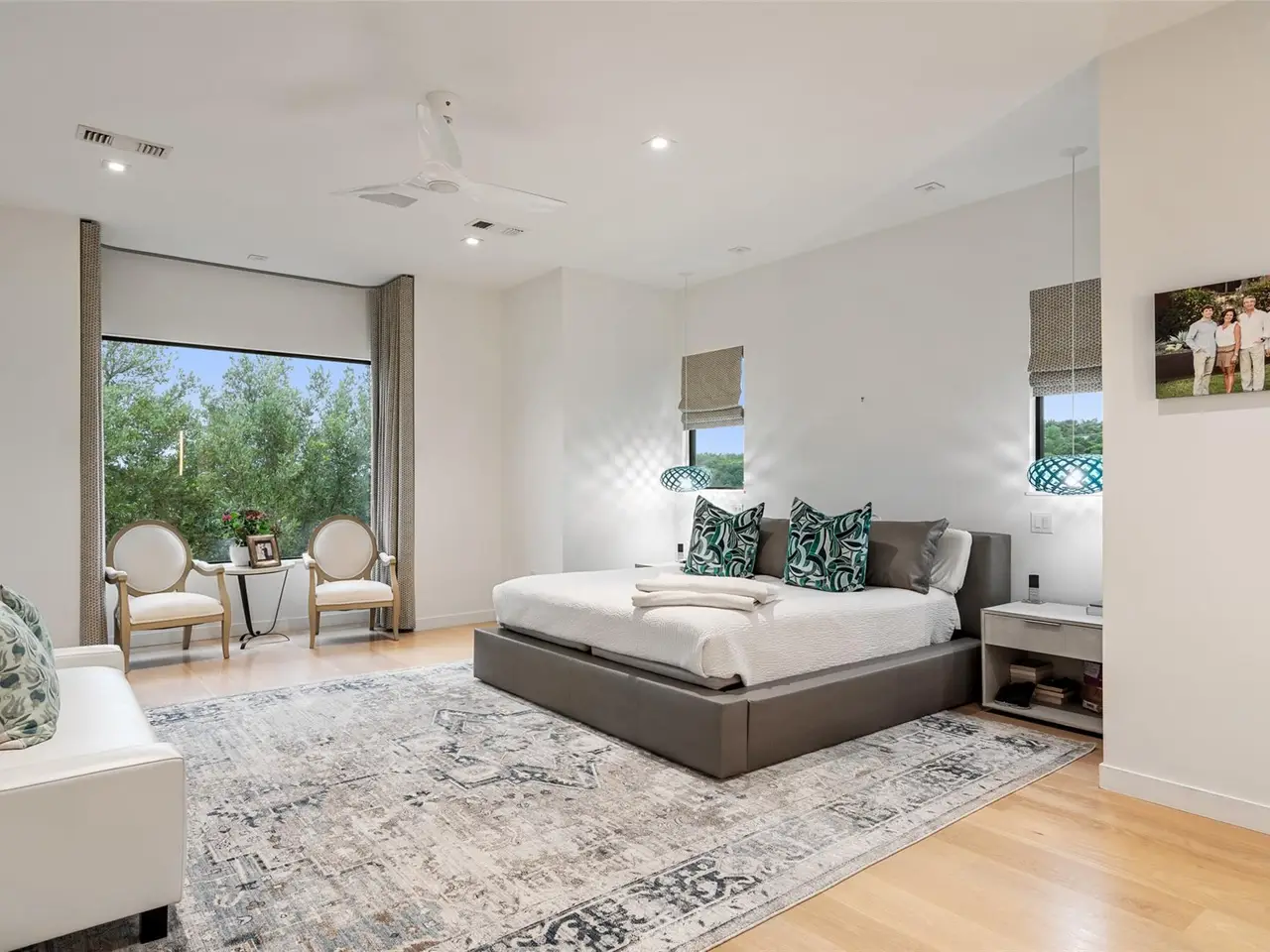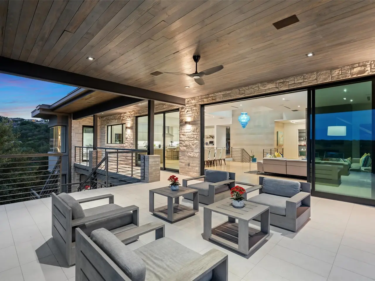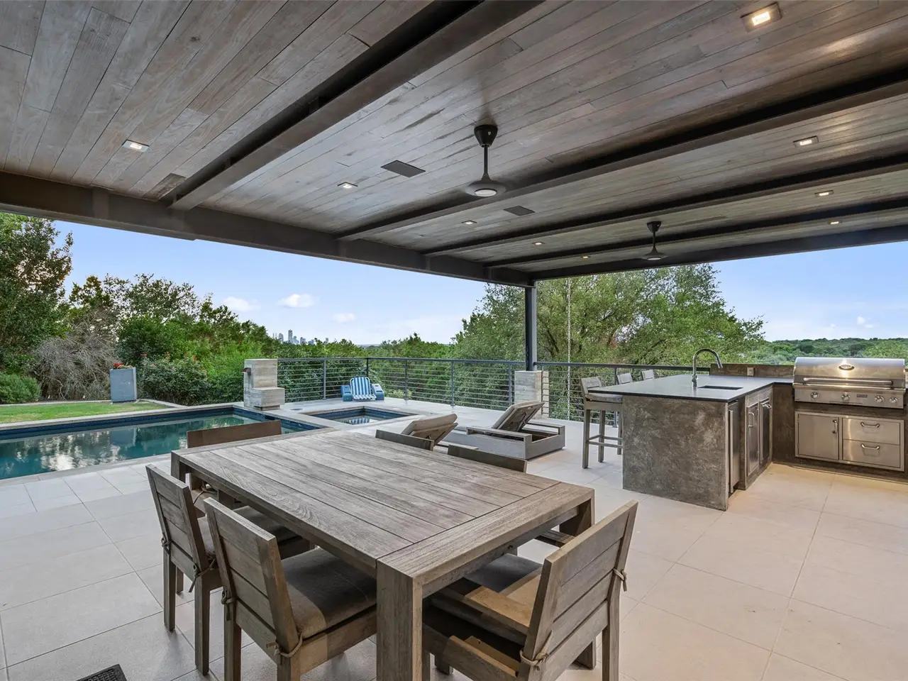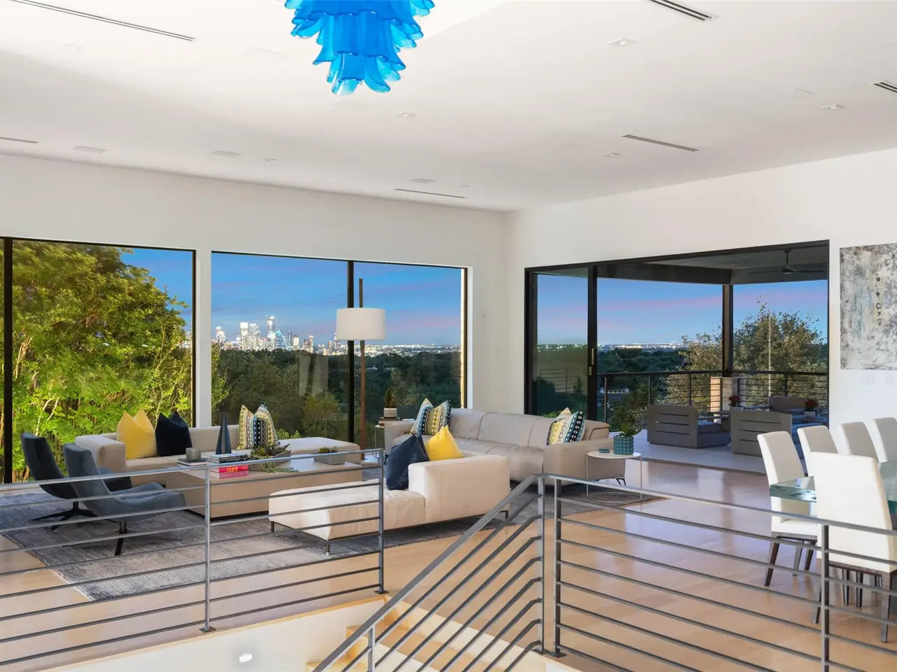 This is one of those rare homes that checks every box--and then some. Set on 1.55 acres in West Lake ten minutes from downtown, 203 Buckeye offers a front-row seat to the Austin skyline from every room in the house, including the pool and backyard. You're in the best school district in Texas--Eanes ISD. Kids can walk or bike to Eanes Elementary or Trinity Episcopal School. The house itself was built by Michael Johnson of Johnson Powers Builders, with interiors by Rachel Mast Designs. Five bedrooms, five and a half baths, and just over 6,400 square feet. The main level has the gourmet kitchen, open living and dining areas, primary suite, gym, ensuite guest bedroom, home office, and garage--everything you need for daily living without ever going downstairs. But when you do... Downstairs is a huge walk-out area with three more bedrooms, three baths, a big game room, and plenty of space that opens up right to the pool and the backyard. And the yard? It's flat--super rare for a lot with downtown views like this. Outdoor covered patios on both levels make it easy to entertain, relax, or take in the view. Whether you're sipping coffee enjoying a sunrise, or enjoying a glass of wine while watching the city come to life as the sun goes down, this house gives you the best seat in town.