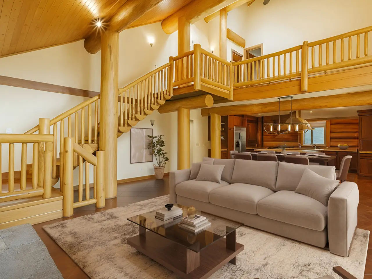 Wake up to the stillness of the mountains in this classic Whistler log chalet, perfectly positioned on a quiet street in the coveted Nicklaus North community. Framed by evergreens and fairways, the home celebrates authentic alpine architecture—vaulted ceilings, hand-crafted log beams, and warm natural textures throughout. Step outside to your private patio overlooking the Nicklaus North Golf Course, or unwind in the sauna after a day on the slopes. With a flexible floor plan offering space for family, fitness, and a self-contained suite for guests, this is a home that adapts to every season of Whistler life.
