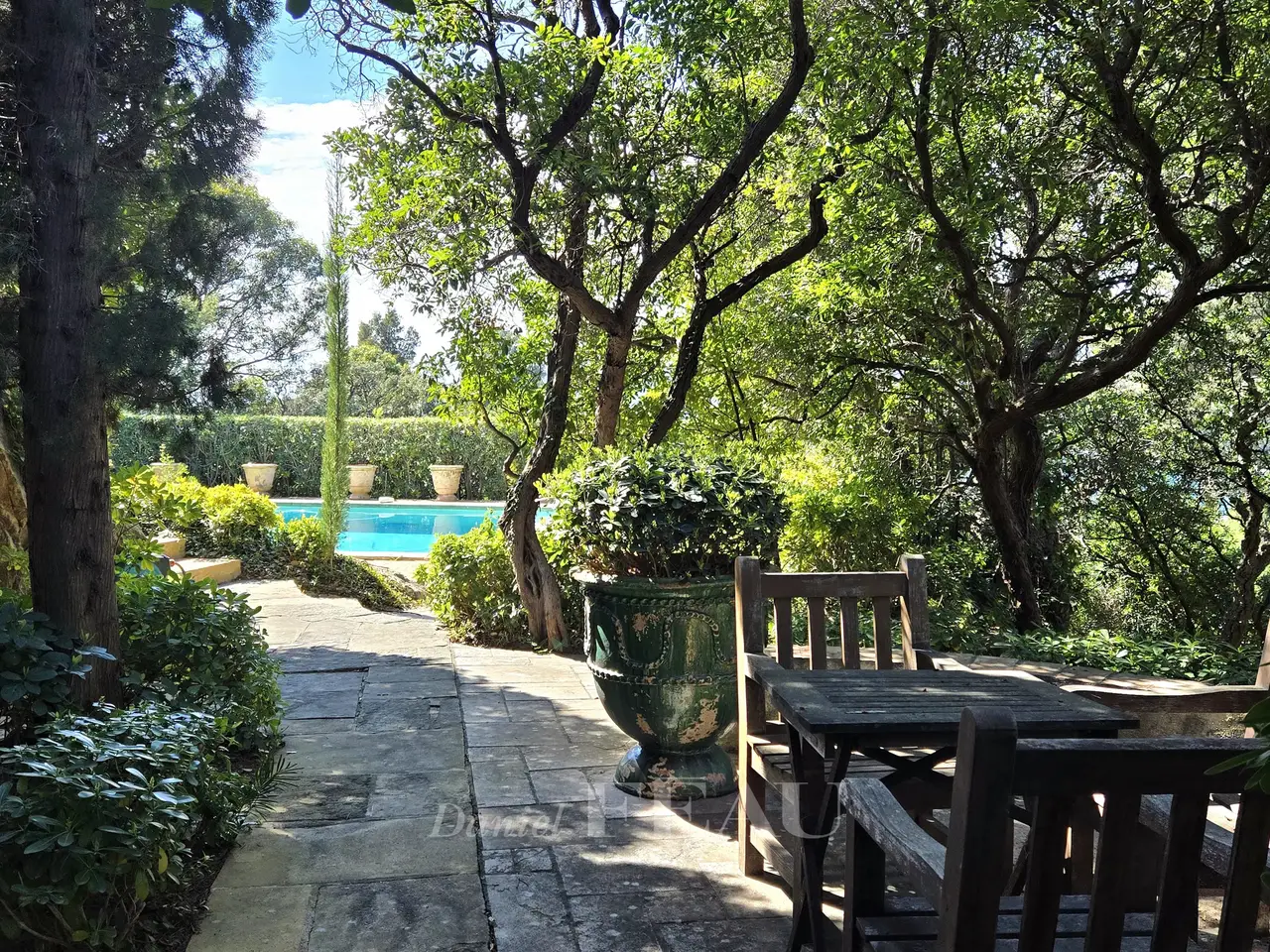 This elegant relatively recent property nestled in leafy grounds in the immediate vicinity of the beaches and the centre of Rayol-Canadel-sur-Mer commands an open view of the sea and the surrounding hillsides. It includes a near 300 sqm main house with five bedrooms including near 50 sqm suites each opening onto terraces commanding superb panoramic views, as well as a self-contained 2-bed annex house ideal for family and friends. With a superb swimming pool. Garage.