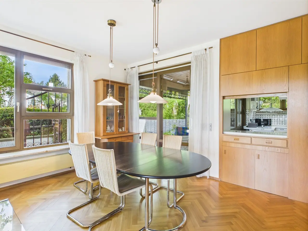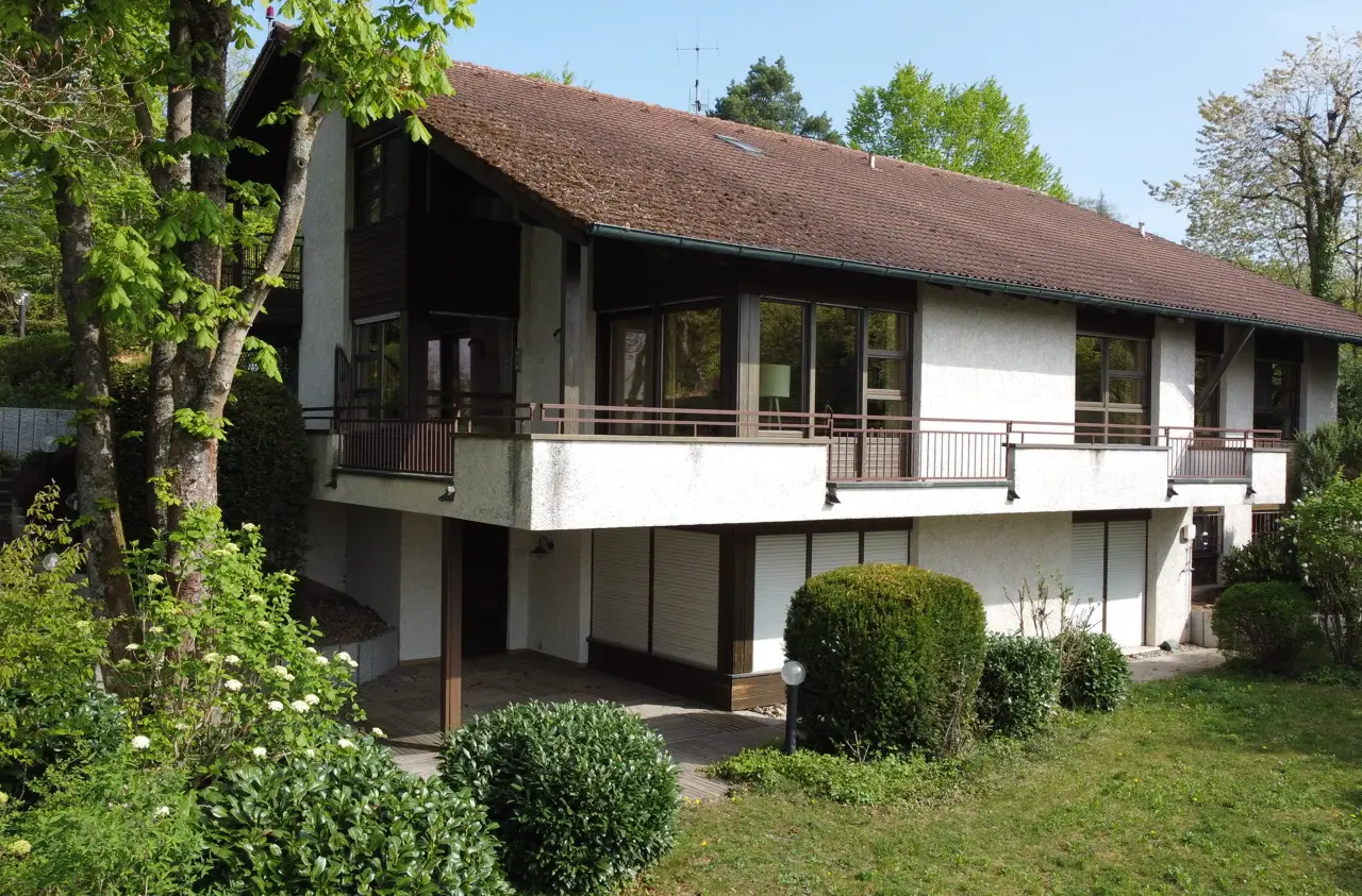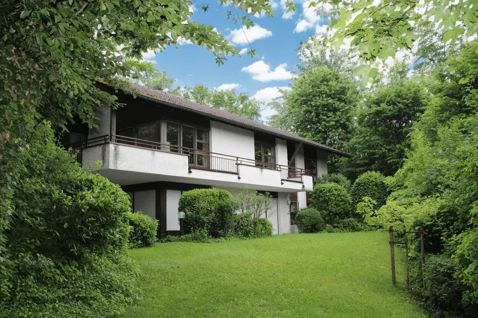 Bamberg / Wildensorg Plenty of space for a family and as a multi-generational home – Quiet location directly on the nature reserve – Guest apartment – ​​Separate children's area These are some of the keywords to describe this impressively large yet immediately cozy house, located at the end of a private road right on the edge of the Altenburg / Rothof nature reserve and the Michelsberg Forest in the Bamberg district of Wildensorg. The villa was built in 1979 and extends over three floors with a generous total living space of approximately 226 m². The property itself covers an area of ​​1942 m² and offers a large, secluded garden surrounded by greenery. Due to its size, layout, location, and flexible design options, this property is ideal for families looking for plenty of space in the countryside or as a multi-generational home. It's also an exciting option for people looking for a retreat with enough space for visitors, good connections to the city, and nature right on their doorstep, and is well worth a visit. The architect-designed house offers a variety of options for realizing your living ideas – from a customized room layout to utilize the basement and storage rooms to the future use of the existing granny flat. The current features include a cozy, light-filled library and a pre-prepared swimming pool area. Two generously sized balconies and two terraces allow for sun and relaxation around the clock. The property is almost completely surrounded by greenery and largely fenced – thus offering ideal conditions for dog owners. The spacious rooms in the basement, attic, and outdoor area offer children of all ages ample space to play. The property is located in an exceptionally quiet yet central location. The small private road is particularly quiet and secluded, with only one direct neighbor. The property borders the Rothof nature reserve. This is located on a high plateau southwest of Bamberg and offers impressive views, especially in good weather. This means you can set off for beautiful, long walks right from your front door, or simply enjoy a picnic in the nearby meadows under the fruit trees. Arrange a viewing today and see for yourself the charm and diverse possibilities for the future development of this villa in the countryside.