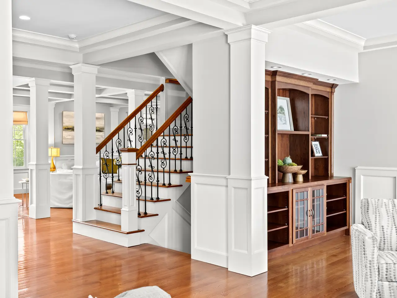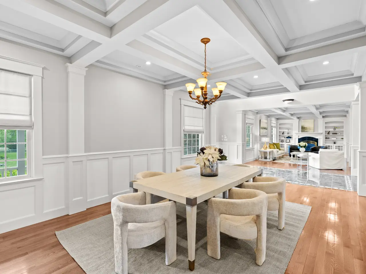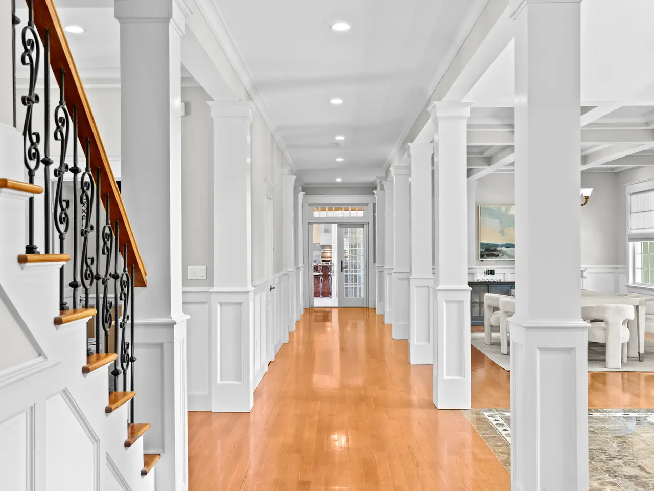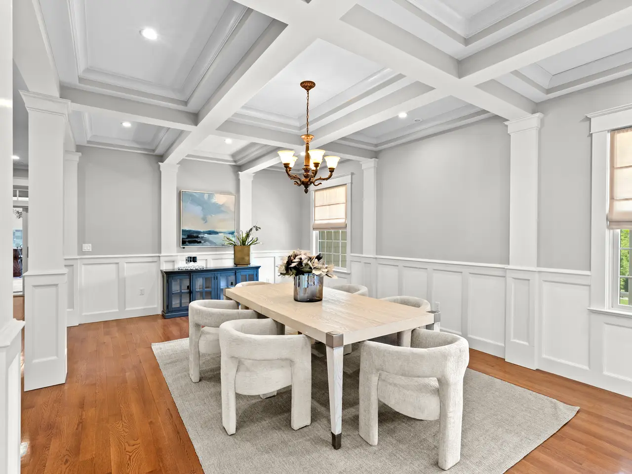 The residence features a variety of elegant living spaces, including a grand foyer, fireplaced living room, formal dining room, chef’s kitchen, and four-season room with indoor grill. A cozy family room opens through French doors to a pergola-covered deck overlooking the lush grounds. The primary suite includes an office, walk-in closet, and spa-inspired bath with jetted tub and tiled shower. A dumbwaiter provides added convenience across levels. The walkout lower level impresses with a theater, gym, playroom, studio, workshop, and garage access. Outdoor amenities include a heated saltwater pool with spillover spa, koi pond, tennis court, and artisanal woodfired grill—offering an exceptional blend of privacy, elegance, and resort-style living.