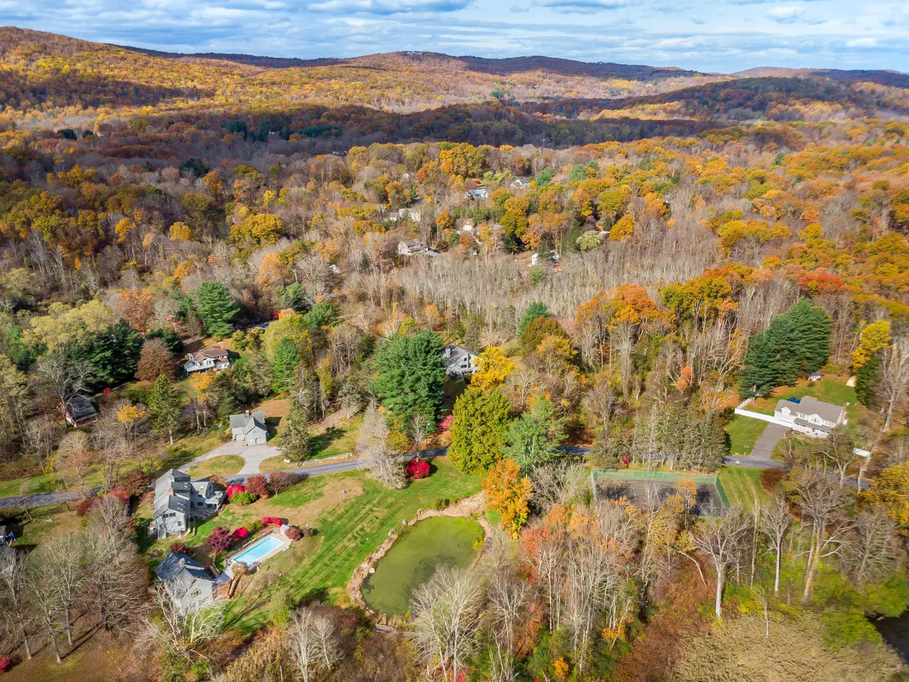 Discover this wonderful estate, formerly Brinsmade Farm, in Sherman, Connecticut, offered for the first time in 60 years. Set on approximately 10 scenic acres in the heart of charming Sherman, this exceptional country home combines timeless New England charm with modern living. Originally a working dairy farm, the property was transformed in 1945 when the barn became a private residence. The estate includes three distinct dwellings, perfect for extended family, guests, or multi-generational living-the Main House, Carriage House, and Pool House-offering approximately 5,200 sq ft with 6 bedrooms and 5 full baths. The Main House showcases cathedral ceilings, exposed beams, wide-plank floors, spacious kitchen with vaulted ceiling and expansive picture windows that fill the interior with natural light and stunning views. This home blends new with old and indoor/outdoor living, providing calm, scenic spaces to relax and recharge. Outdoor amenities include a sparkling pool, tennis court, tranquil pond, spacious lawns flanked by trees and six garage spaces-ideal for car collections, hobbies, or additional storage. This country retreat offers space, privacy, and timeless appeal - ideal for entertaining or quiet country living. Includes beach and boat rights on Candlewood Lake and only 90 minutes to New York City, this extraordinary property offers an unmatched blend of history, elegance, and comfort. A private tour is recommended to fully appreciate its beauty, provenance, and serenity. The Main House, encompassing approximately 3,300 square feet, offers four spacious bedrooms and three full bathrooms. At its heart is a vaulted, eat-in kitchen that invites gathering and connection. A stunning great room, added as part of a later expansion, features a cathedral ceiling and seamlessly flows into an upper-level recreation room-perfect for entertaining, family activities, or quiet relaxation. A private office provides a comfortable and dedicated workspace, while the expansive lower level includes a full basement, wine closet and workshop area, offering abundant storage and functionality for modern living. The Pool House, comprising just over 900 square feet, serves as a tranquil guest or in-law retreat. It features a one-bedroom loft, one full bathroom, a convenient kitchenette, and vaulted ceilings accented by warm wood tones-creating a space that is both inviting and serene. The Carriage House, approximately 925 square feet, offers additional flexible living space with one bedroom, a full bathroom, and an open-concept living area anchored by a cozy fireplace. It is a perfect multi-generational living space. For the car collector, the Pool House has two large garages and one smaller garage for a tractor or motorcycles. The Main House has one garage space, while the Carriage House contains space for 3 cars. A large circular driveway provides plenty of spaces for guests. Brinsmade Farm is on a dead end street, and yet very close to the center of Sherman where you'll find a quaint country store. The town beach, docks and tennis courts are less than a mile away. Sherman provides great access to roam North to Kent or South to shop and dine in New Milford. The tennis court could easily be resurfaced into multi-sports or pickleball courts. Both the Main House and Carriage House have oil heat and full A/C. Sherman's taxes are one of the lowest in the county. The taxes and the assessed value is only for the main home. To understand the lay out of each dwelling please ask for the floor plans as they are in the attached documents.