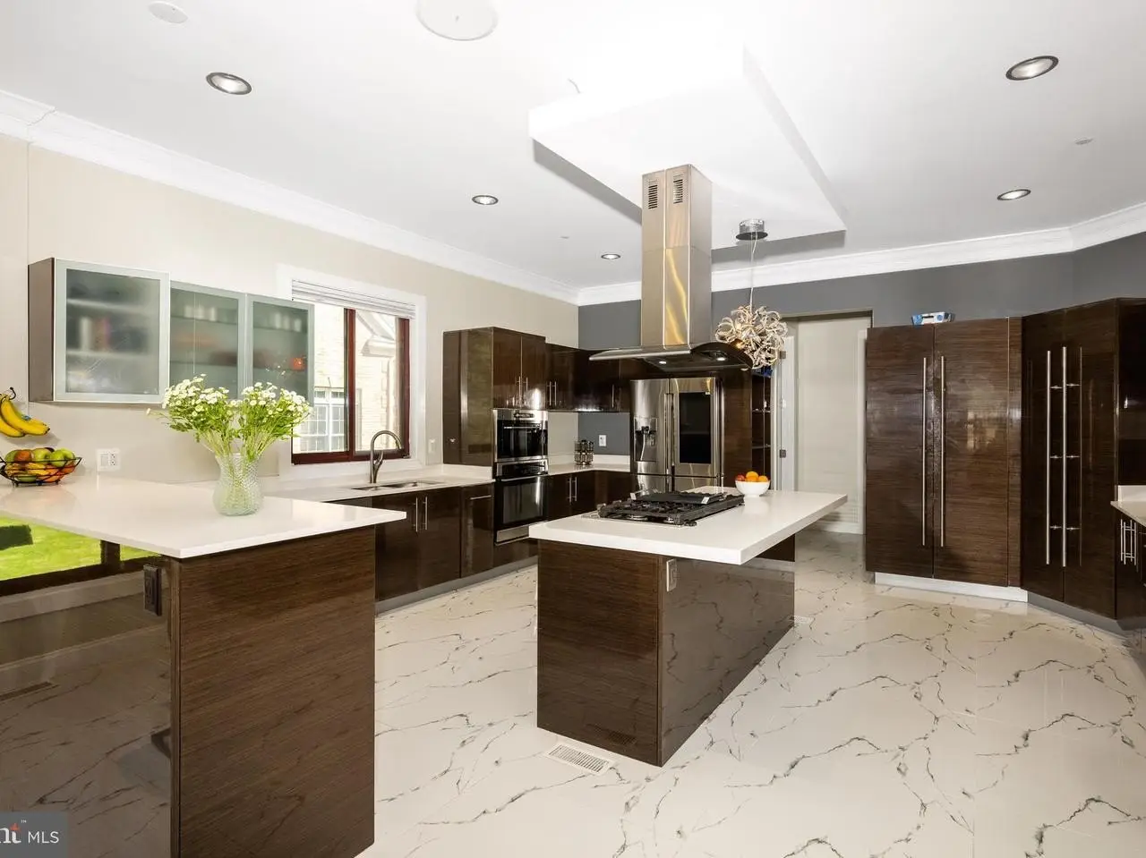 • Custom cabinetry and sleek finishes in kitchen