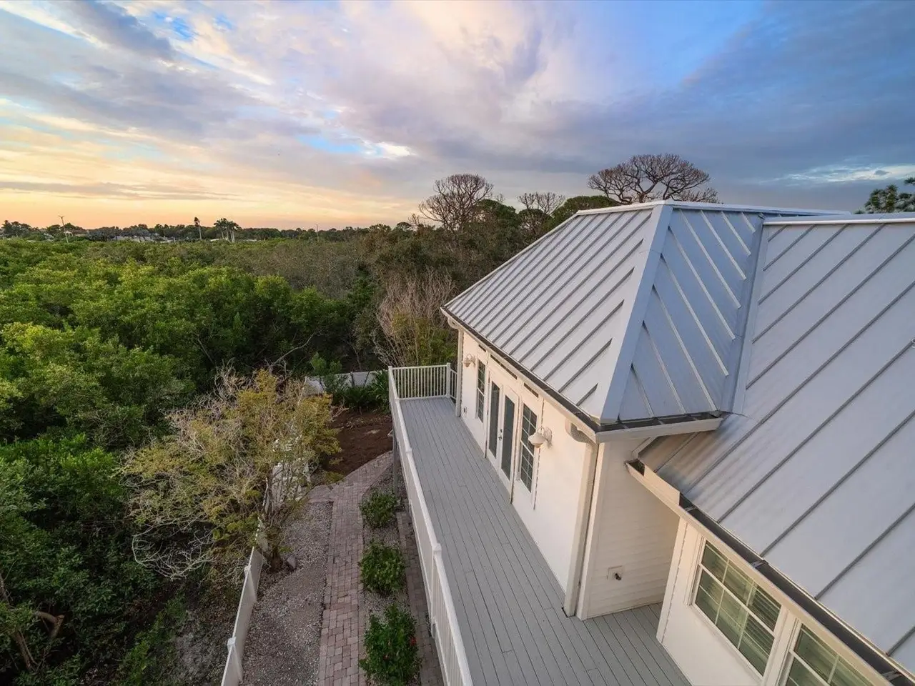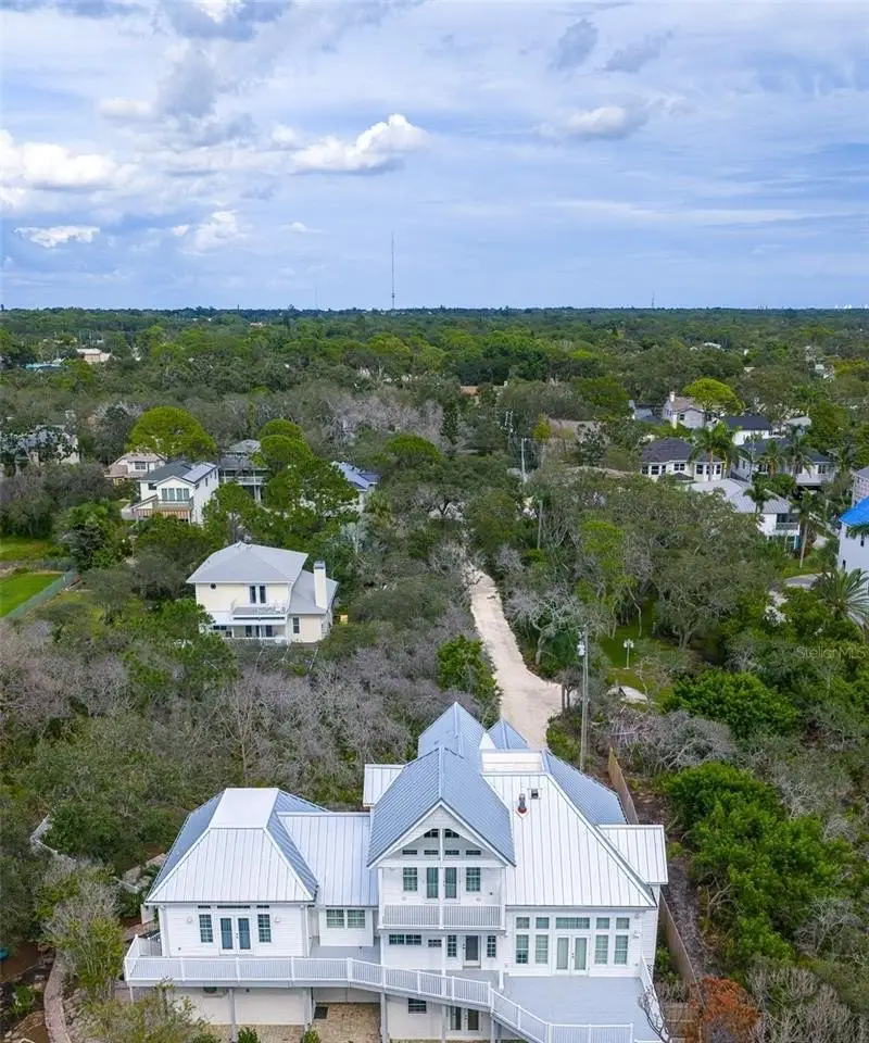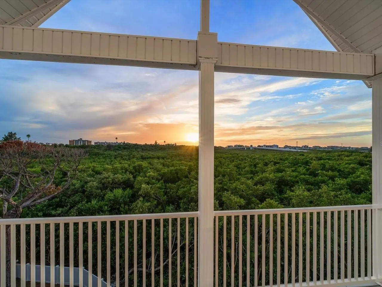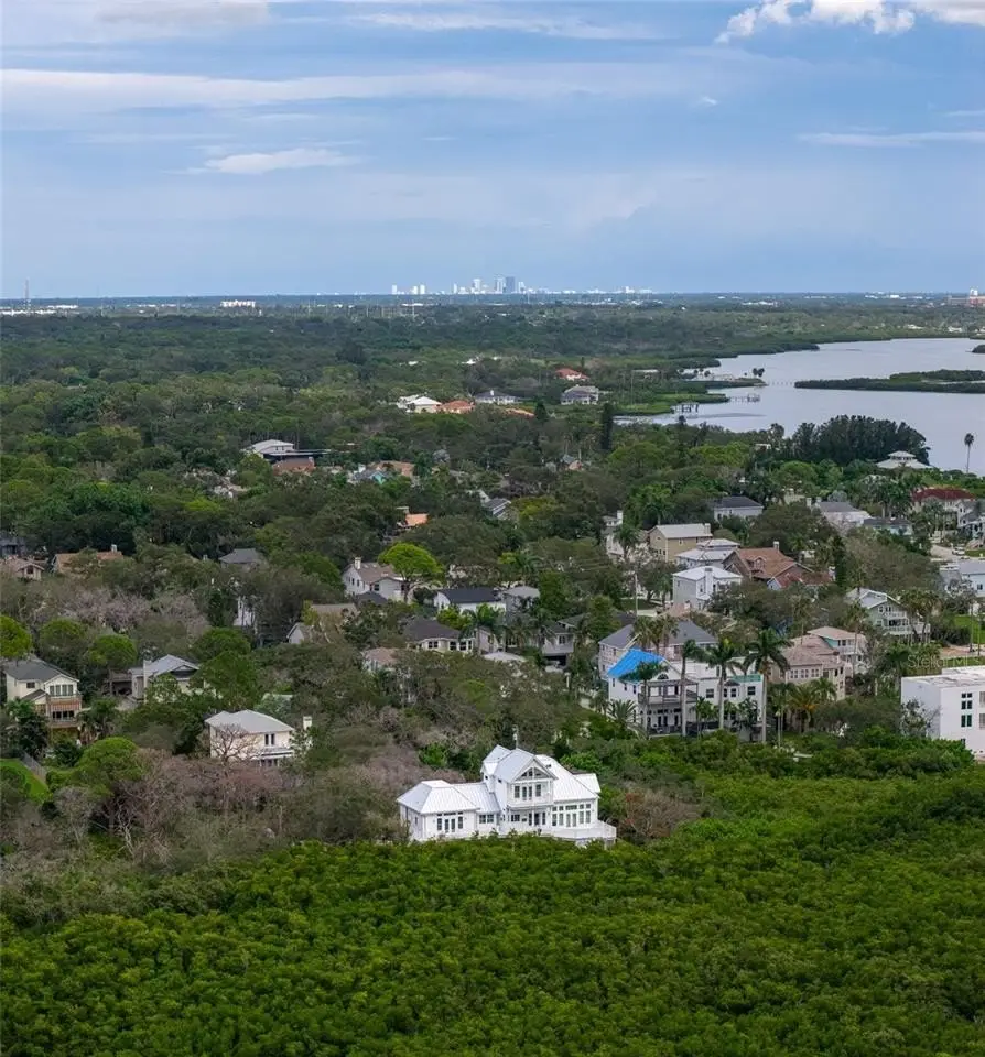 With its unparalleled blend of sophistication and natural serenity, this exquisite residence offers a tranquil setting, abundance of green space, and views that are captivating. The interior is defined by meticulous attention to detail and a sense of timeless, refined luxury. Elevated construction with living areas on the second and third levels are easily accessed by either stairs or elevator. The entry through double etched glass doors to the main living level is impressive with its vaulted ceilings, soft lighting and detailed rich planked wood ceilings. A spectacular kitchen with large center island, top of the line appliances such as a 6 burner gas stove is certain to impress the most selective chef. Family and guests will enjoy the two-sided fireplace during casual meals or grand-scale entertaining in the inviting dining room. Three additional bedrooms, one currently used as an office, provide a floor plan that is functional. The entire third level is comprised of the opulent primary suite featuring a lavish bath area with exquisite finishes- soaking tub, walk in shower with multiple heads, mirrors with touch activated lighting and temperature control; the area exudes refined luxury. Be delighted by the sensational sunsets from your expansive private terraces. Ground level flex area of approximately 580 sq. ft., not included in the heated square footage, provides additional space for exercise, hobbies or recreational activities and is equipped with a spacious bar and full bath. Additionally, the property offers an oversized air conditioned 4 car garage, separate work shop, storage and hard wired hook up for whole house generator. New items include; roof, gutters and drain systems, flooring, exterior paint. Appreciate the private side yard for gardening, play area, or various outdoor activities- Seller has acquired a plan for those who consider an addition of a pool and can be shared. This is a property with a multitude of possibilities for those with varied interest. The striking architectural design blends seamlessly with the natural landscape and allows for a private retreat where luxury meets the beauty of nature! And yet, it is just minutes from beaches, shopping and access roads to neighboring Tampa and St Petersburg. Don’t miss this one-it is outstanding!