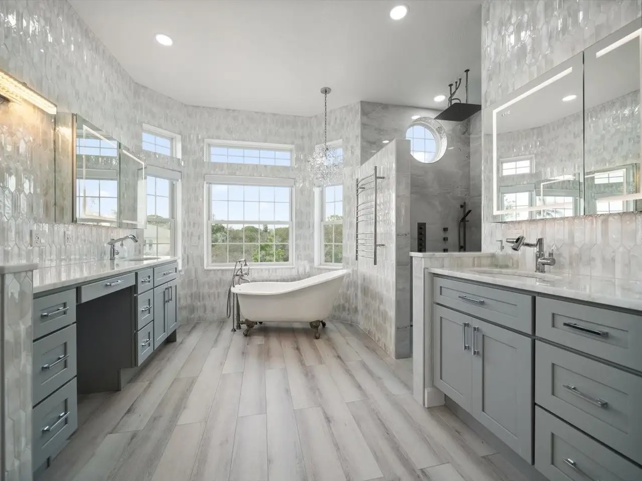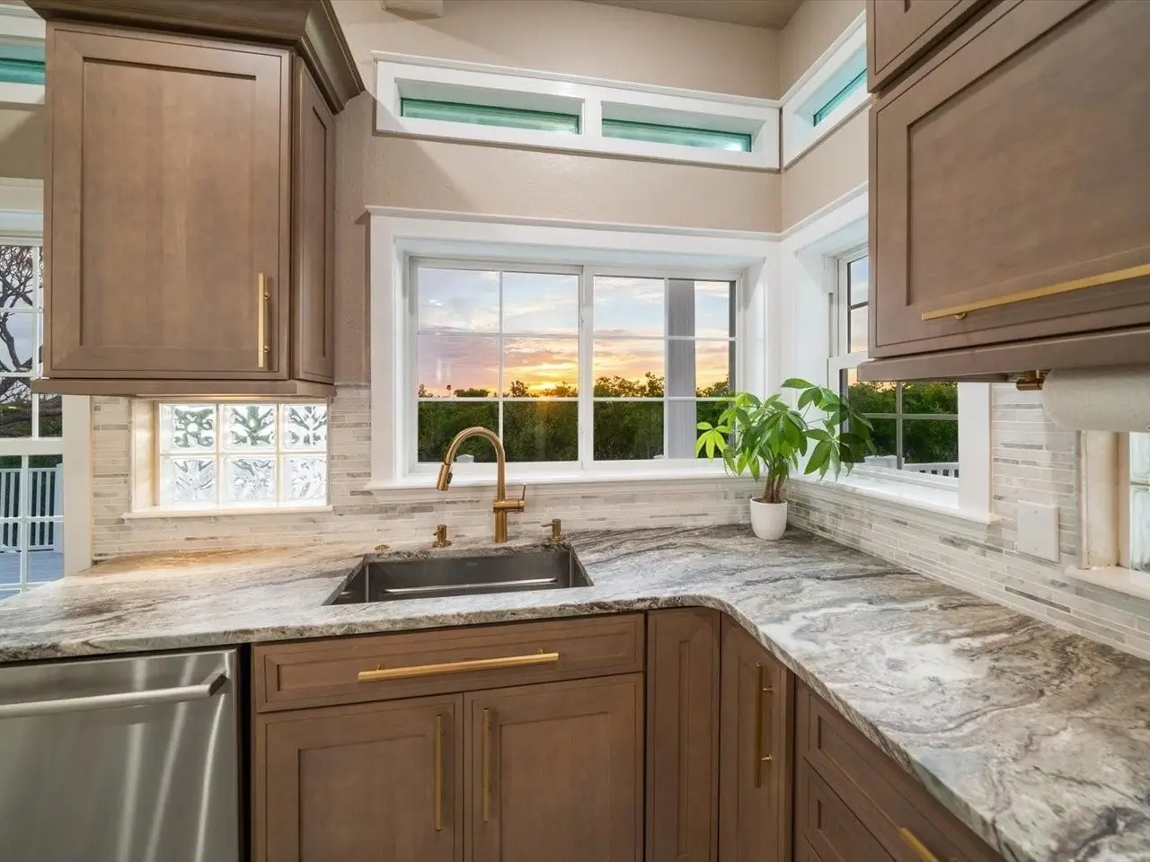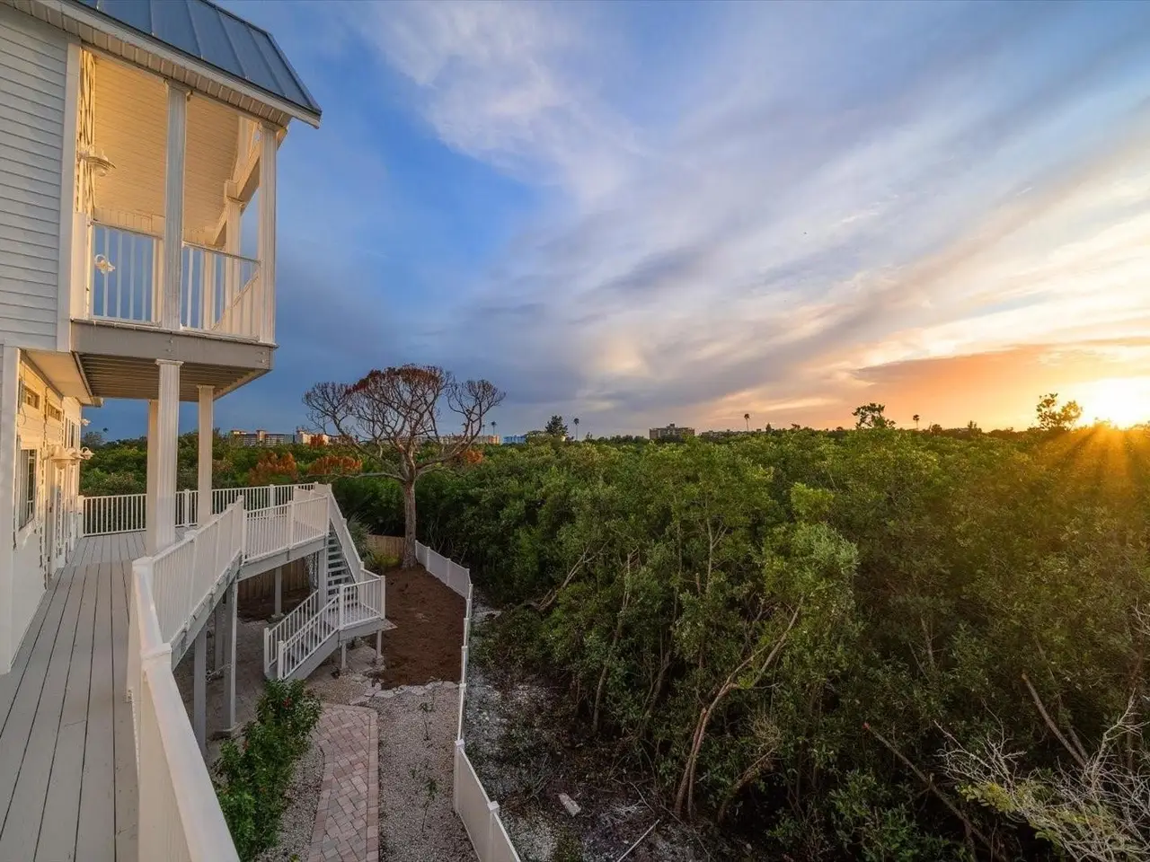 With its unparalleled blend of sophistication and natural serenity, this exquisite residence offers a tranquil setting, abundance of green space, and views that are captivating. The interior is defined by meticulous attention to detail and a sense of timeless, refined luxury. Elevated construction with living areas on the second and third levels are easily accessed by either stairs or elevator. The entry through double etched glass doors to the main living level is impressive with its vaulted ceilings, soft lighting and detailed rich planked wood ceilings. A spectacular kitchen with large center island, top of the line appliances such as a 6 burner gas stove is certain to impress the most selective chef. Family and guests will enjoy the two-sided fireplace during casual meals or grand-scale entertaining in the inviting dining room. Three additional bedrooms, one currently used as an office, provide a floor plan that is functional. The entire third level is comprised of the opulent primary suite featuring a lavish bath area with exquisite finishes- soaking tub, walk in shower with multiple heads, mirrors with touch activated lighting and temperature control; the area exudes refined luxury. Be delighted by the sensational sunsets from your expansive private terraces. Ground level flex area of approximately 580 sq. ft., not included in the heated square footage, provides additional space for exercise, hobbies or recreational activities and is equipped with a spacious bar and full bath. Additionally, the property offers an oversized air conditioned 4 car garage, separate work shop, storage and hard wired hook up for whole house generator. New items include; roof, gutters and drain systems, flooring, exterior paint. Appreciate the private side yard for gardening, play area, or various outdoor activities- Seller has acquired a plan for those who consider an addition of a pool and can be shared. This is a property with a multitude of possibilities for those with varied interest. The striking architectural design blends seamlessly with the natural landscape and allows for a private retreat where luxury meets the beauty of nature! And yet, it is just minutes from beaches, shopping and access roads to neighboring Tampa and St Petersburg. Don’t miss this one-it is outstanding!