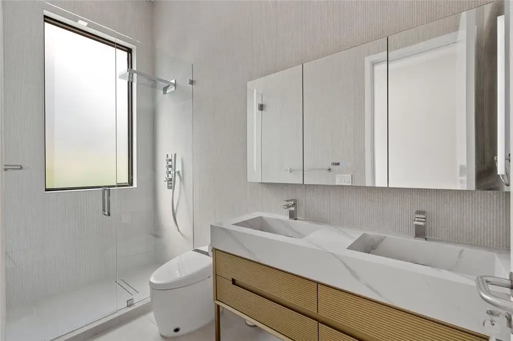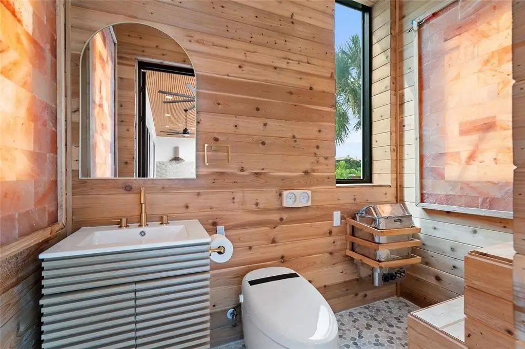 New Architectural Modern deepwater estate sited on 70 +/- feet of water frontage on a quiet lane of only 16 waterfront residences off South Ocean Blvd with private keyed beach/parking access by the creative team of Ocean Home Builders and Architect 1. Stunning organic design encased in glass with all major rooms facing the waterway. Resort-style pool with spa/sun shelf, expansive lanai with summer kitchen, cabana with sauna and salt room and boat dock. Other amenities include smart house technology, dramatic center string staircase, volume ceilings, full-width waterfront covered balcony, bedroom #7/gym and 4 bay garage with ready electric car charger. Buyers have time to customize in the next 30 days as price will increase. Shown by appt only.