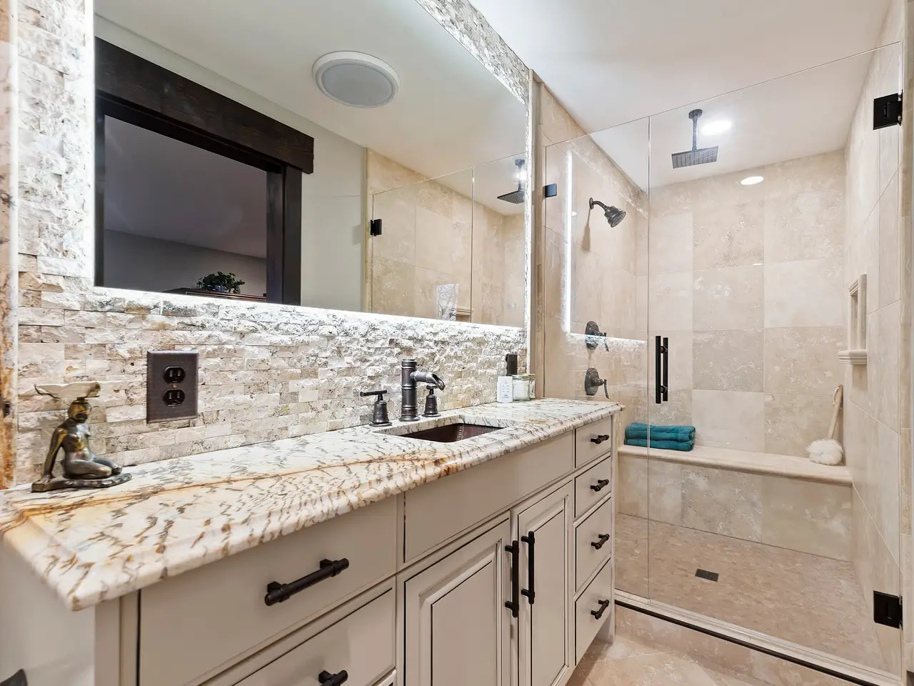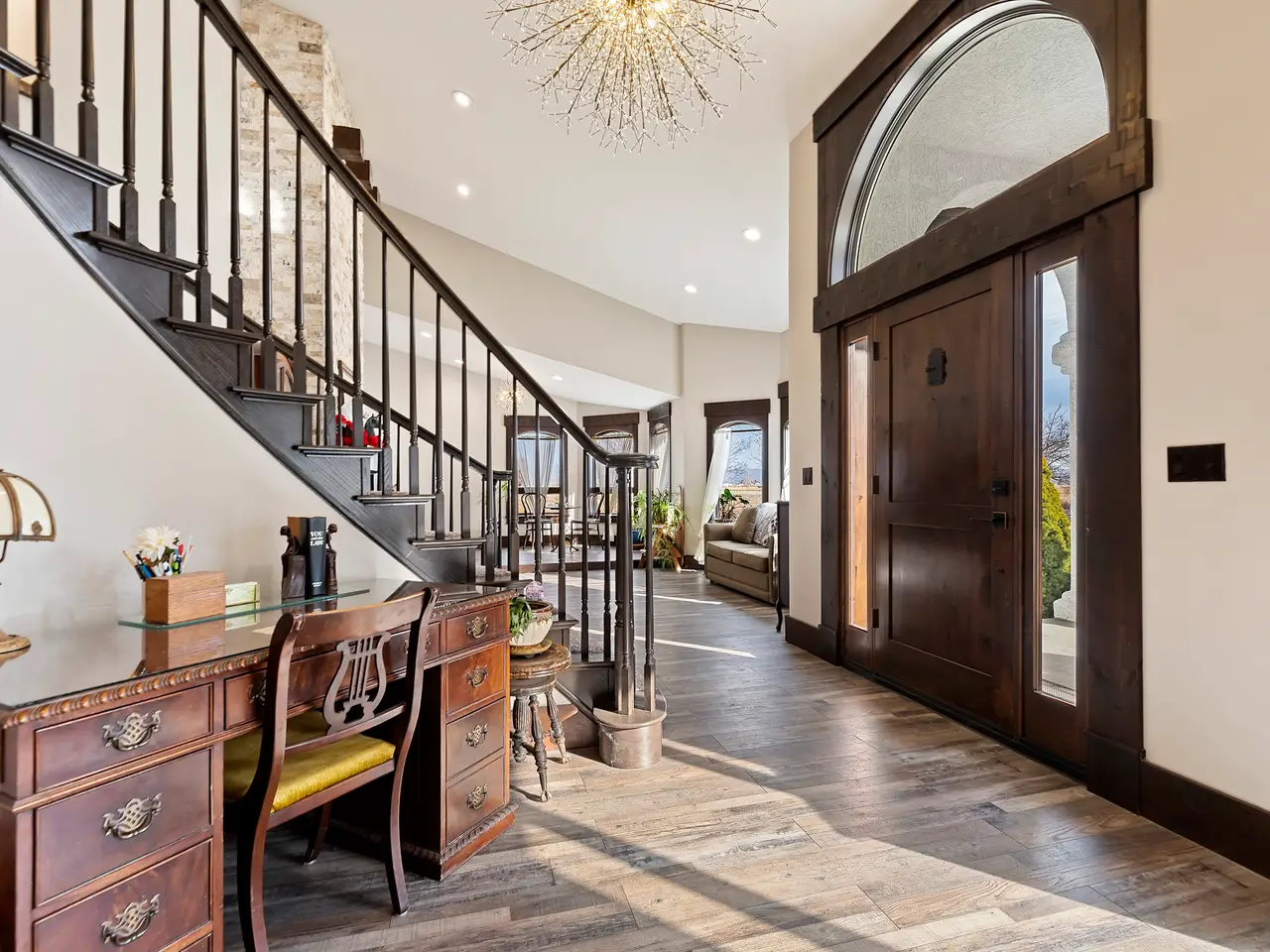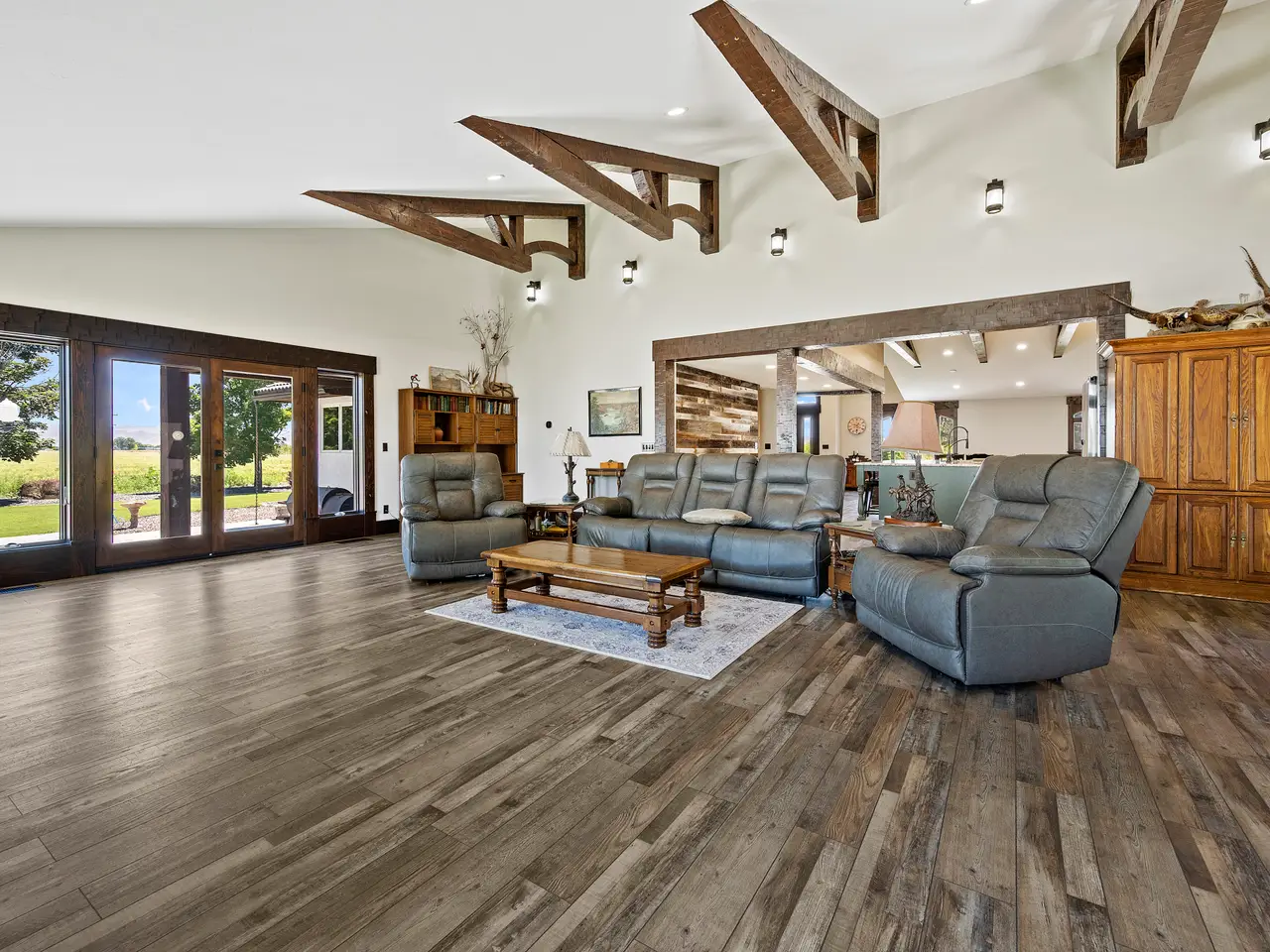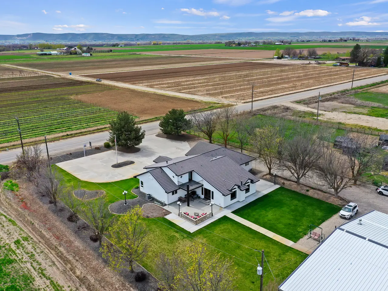 This beautifully renovated home in the heart of Emmett, situated on 5 sprawling acres, is truly a one-of-a-kind property. Perfectly blending elegance with functionality, it’s equipped to handle a home business with an 8,000 sq ft shop that includes office spaces, an indoor swimming pool, and a multi-purpose racquetball, pickleball, or basketball court with private restrooms for both recreational areas. The property is also ready for those with an equestrian lifestyle or farming needs, offering space for horses or large animals and crop areas, along with huge RV bays and shop spaces. The home itself has been completely renovated from top to bottom, showcasing stunning finishes throughout. Luxury vinyl plank flooring runs through the open floor plan, complemented by rustic wood beams and wood shiplap accent walls. The kitchen is a chef’s dream, with a huge pantry, a spacious prep station or coffee bar, and ample room for entertaining. The primary suite, the only room on the upper level, features a private balcony—the perfect spot to take in the stunning sunrises and sunsets while admiring views of the buttes. The primary bath is a serene oasis, with elegant tilework and granite countertops. A second primary suite on the main level also boasts a luxurious bath with a gorgeous tiled shower and a modern lighted mirror, a feature found in all four full baths throughout the home. The below-grade level offers its own private living space, complete with a large great room, a bedroom, and a full bath with a beautifully tiled shower. Every finish in this home was thoughtfully selected to provide timeless style and lasting quality. This property offers endless possibilities, from business ventures to luxurious country living. Don’t miss out on this rare opportunity!