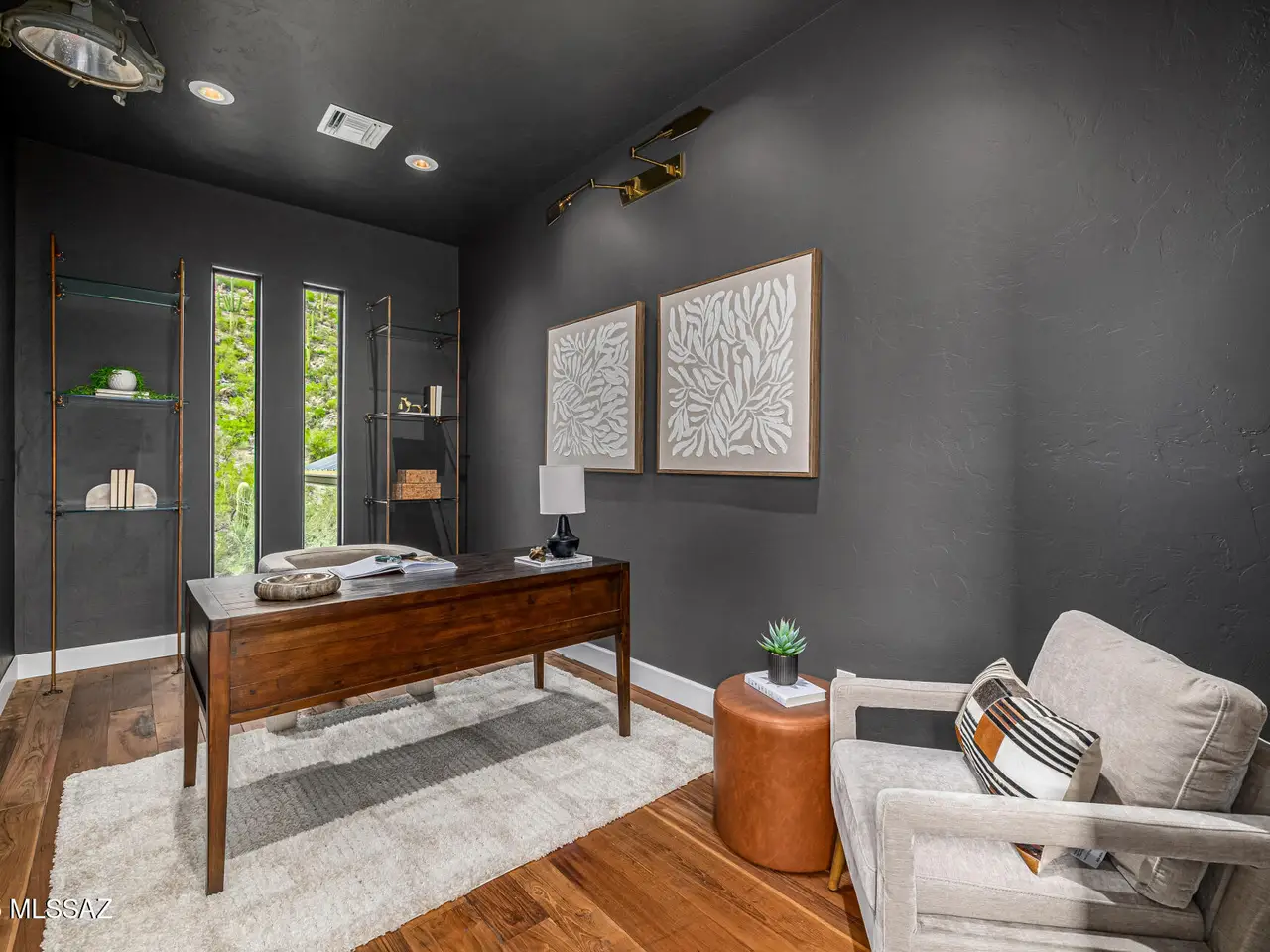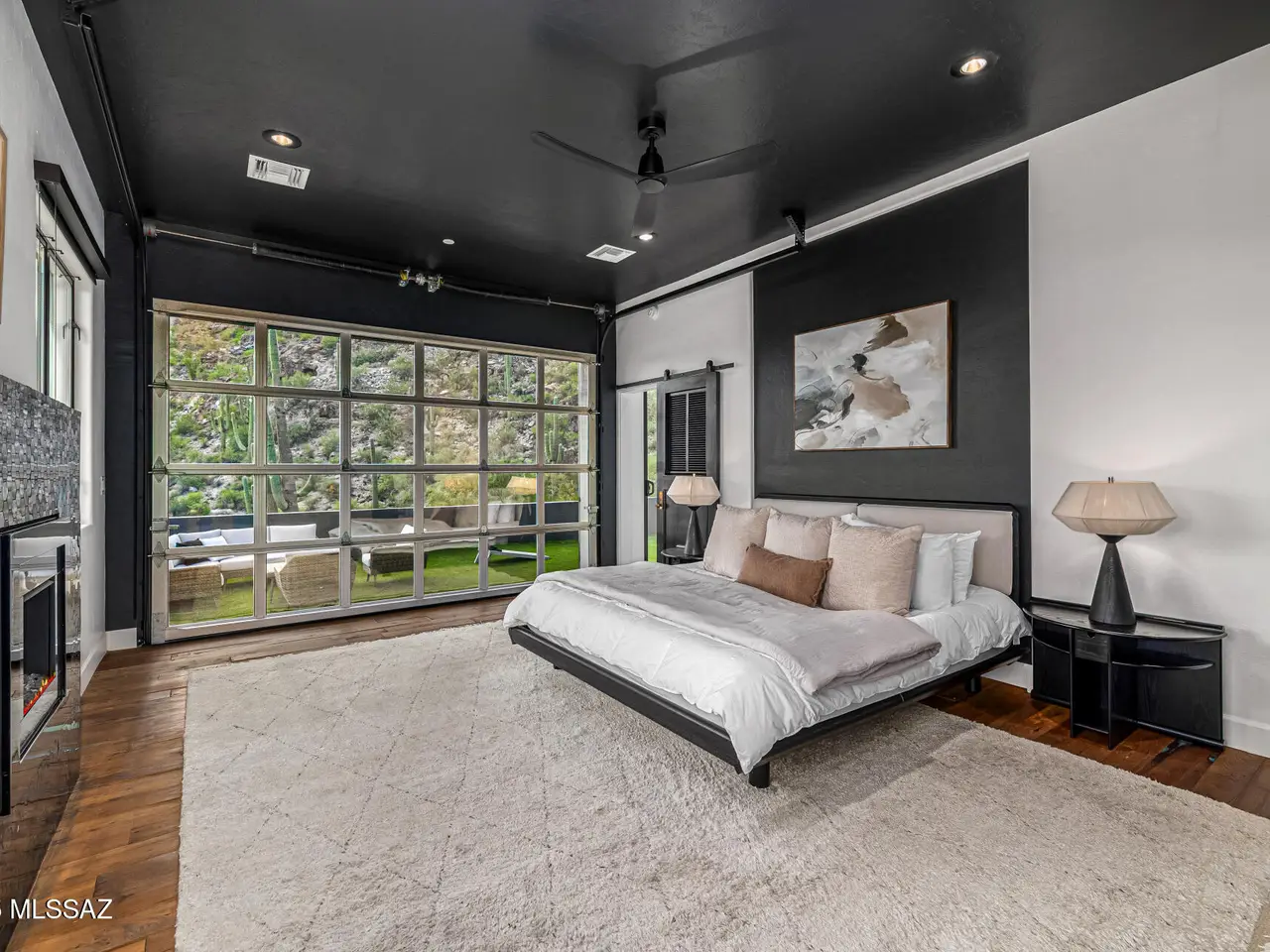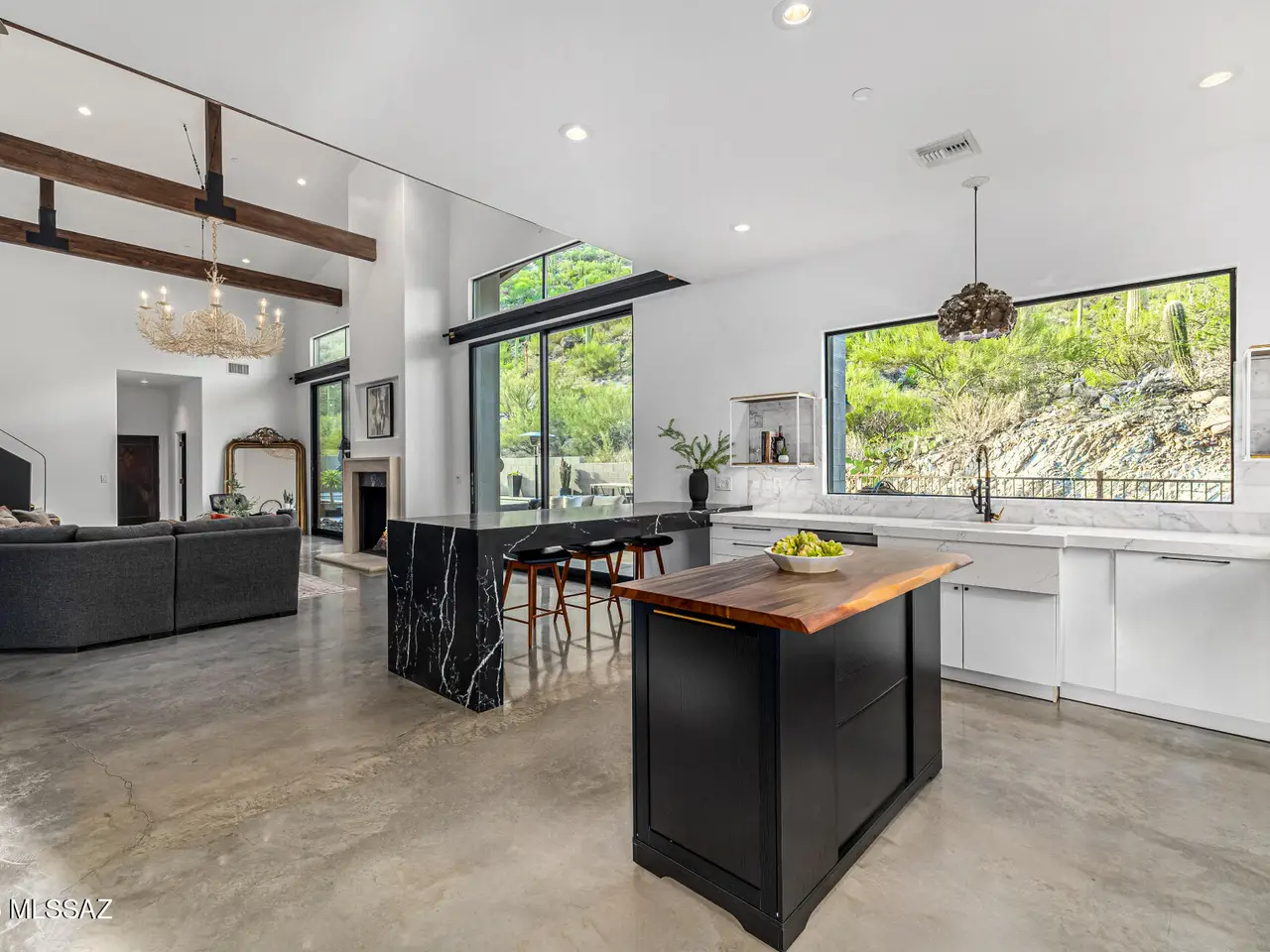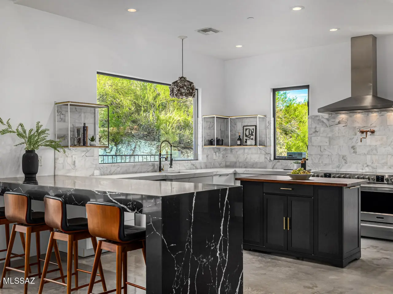 Nestled deep in the scenic Tortolita Mountains, this fully custom-built 2018 estate combines refined design with extensive upgrades inside and out. The property welcomes you with an asphalt driveway, elegant paver accents, and professionally landscaped grounds featuring outdoor lighting, solar lamps, a decorative fountain, and a custom-finished front entry. All the doors used in the home were from the historic Hotel Hidalgo! The roof has been resealed and the exteriors freshly repainted. Enjoy resort-style outdoor living with a sparkling pool (new heater), a mesquite-mantle fireplace with a custom screen, propane starter, built-in barbecue mechanics, and decorative fencing. Set against a backdrop of untouched desert beauty, the estate offers breathtaking 360-degree panoramic views of Tortolita Mountains. Expansive windows and outdoor living spaces capture glowing sunrises, dramatic sunsets, and sparkling city lights after dark. Natural desert wildlife surrounds the property, creating a private sanctuary with a front-row seat to the beauty of the Sonoran Desert. Inside, the upgrades continue with quartz kitchen countertops, a waterfall island, refinished cabinetry and hutch, and updated hardware and lighting. The great room showcases a propane fireplace setup with custom logs, while electrical dimmers and halogen bulbs create ambiance throughout. Additional features include refinished teak entry doors with glass panels, repainted interior doors and ceilings, ceiling fans in all bedrooms, a staircase runner, and polished concrete floors. Comfort is maximized with mini-splits in the master and first-floor bedrooms, as well as Tucson rolling shutter blinds in every bedroom plus electronic rolling shutter for the master suite's large glass doors and the second-floor landing. Perfectly designed for entertaining, the home is wired for interior and exterior sound, blending luxury, function, and style at every turn. This is a true desert sanctuary, offering both sophistication and serenity.