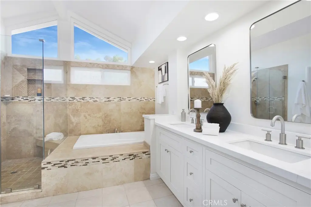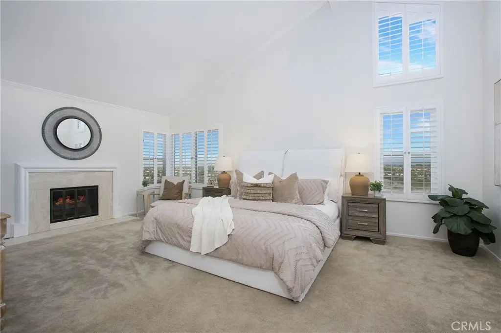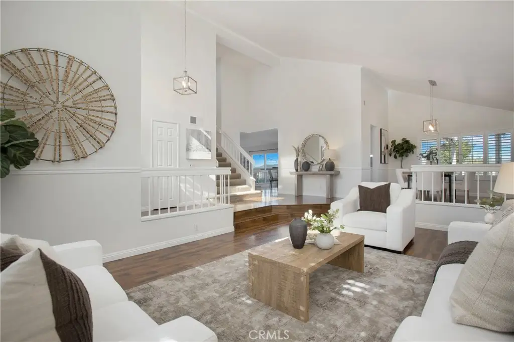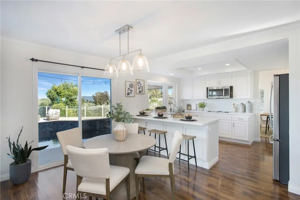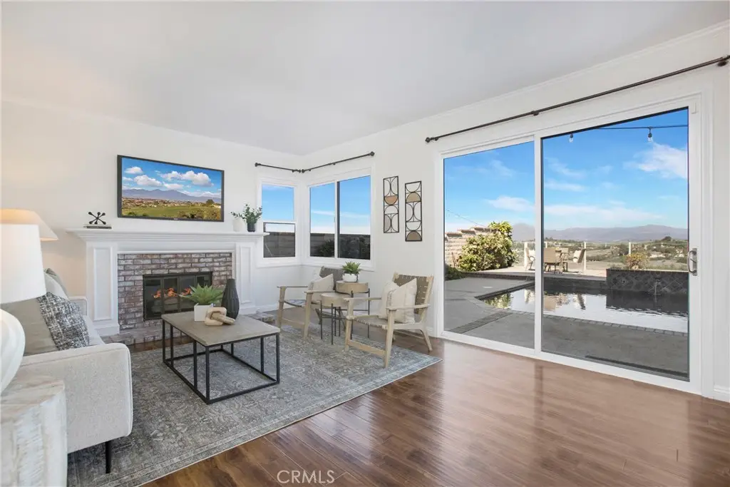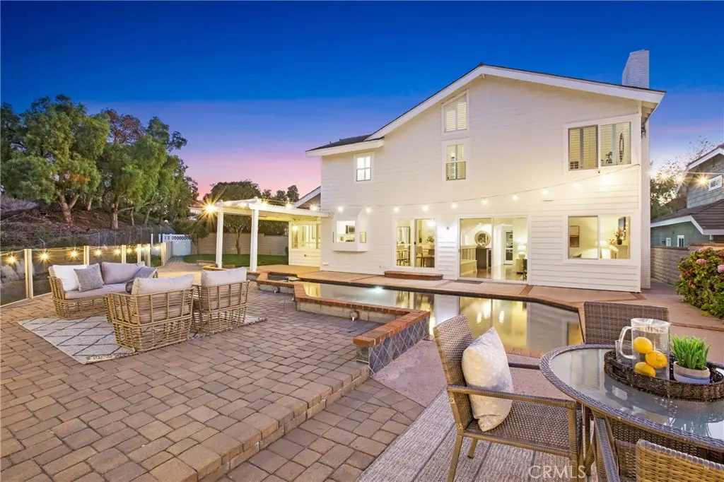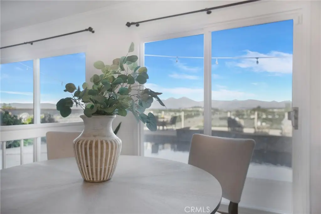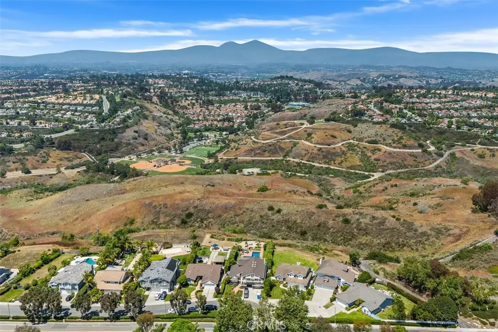PANORAMIC SADDLEBACK MOUNTAIN VIEWS YEAR ROUND & snow-capped mountain views this gorgeous, just remodeled, picturesque property! This beautifully maintained home on a single loaded street offers 4 bedrooms and 3 bathrooms, including a desirable main floor bedroom, and is situated on an expansive 14,000 sq ft lot that extends onto the serene slope behind providing both space and privacy. The private backyard features a pool with premium Hydrazzo plaster and updated tile, glass fencing along the perimeter to showcase the views, and lush landscaping, a mature lemon tree, and with brand new grass in both the front and back yards.The upgraded interior includes three new chandeliers in the dining room, kitchen nook and entry way, brand new quartz counter tops and backsplash in the kitchen, rich laminate flooring downstairs, new bathroom vanity with quartz countertop with dual sinks in the primary bathroom with new mirrors and recessed lighting, and a brand new bathroom in the jack and jill bathroom upstairs which includes new flooring, a new dual sink vanity with quartz countertops, a new Pottery Barn light fixture, a new window in the shower and a new glass enclosure all with gold accents. The home is equipped with Milgard dual-pane windows throughout, Ecobee smart thermostat, Genie Wi-Fi smart garage door opener, smart front door lock, & Ring doorbell/outside cameras/alarm system and a freshly painted white interior (June 2025) and exterior (September 2023). Additional upgrades include a 240V charger for Tesla and other EVs, large driveway leads to a three-bay garage with loft storage with pull down stairs and a durable new steel roof. Located in the sought-after Beacon Hill community with access to 3 pools/spas and 6 lighted tennis courts, this home offers the perfect blend of luxury, privacy, and lifestyle.