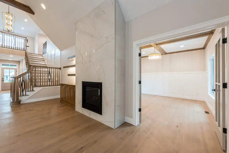 (Under construction. Estimated completion Fall 2024) Welcome to modern elegance nestled in The Woods of Sagamore, where curb appeal and comfortable living converge. This exquisite home features five sumptuous bedrooms, four and a half luxurious bathrooms, and promises an indulgent lifestyle tailored for family and entertainment. Imagine stepping through the grand entrance into a sprawling, family-friendly space that whispers elegance. Engineered French oak floors pave your journey into a breathtaking great room graced by a two-way fireplace shared with a cozy den. Vivacious conversations await in the great room, which offers a magical merge with the outdoors through sliding glass doors. Here, a generous covered porch, also with a fireplace, invites tranquil evenings or lively gatherings. The heart of this home is undoubtedly the chef-inspired kitchen. Culinary dreams come alive with a monumental, two-level center island featuring a built-in range. Engage in spirited family banter or entertain guests while whipping up gourmet meals, bolstered by a formidable array of cabinets, a prep kitchen, and a walk-in pantry with meticulous built-ins. Escape to the serene primary bedroom, a regal sanctuary positioned conveniently on the lower level. With a soaring 9-foot ceiling and wall-spanning windows, it bathes in natural light, promising a restful retreat. Outdoors, a built-in cooking station and fire pit craft the perfect backdrop for enchanting starlit parties or tranquil afternoon luncheons. Each corner of this palace echoes thoughtful luxury designed to enchant and delight. Make this haven your home and anchor your life in beauty and grace, where every day is a celebration of refined living.