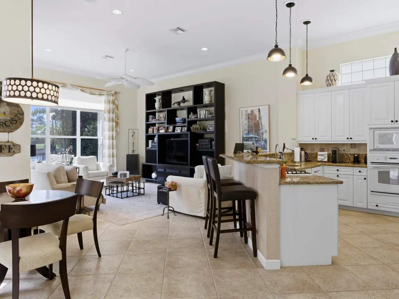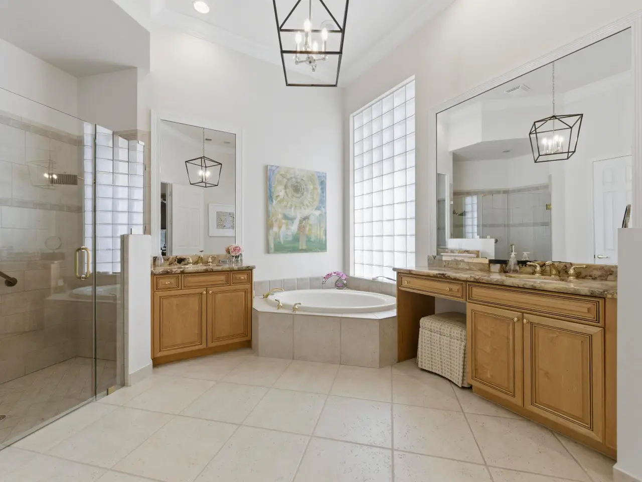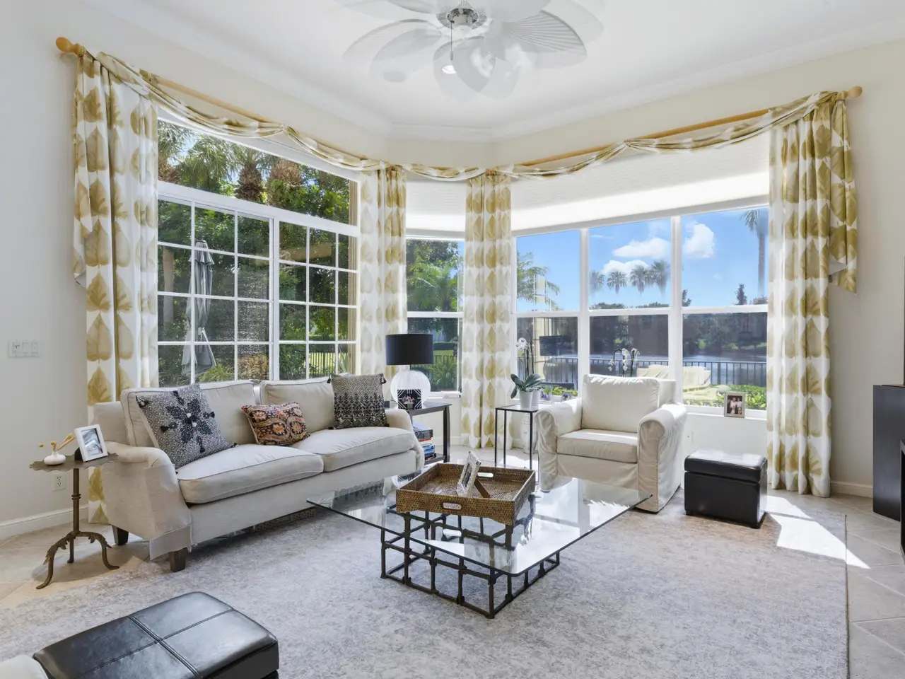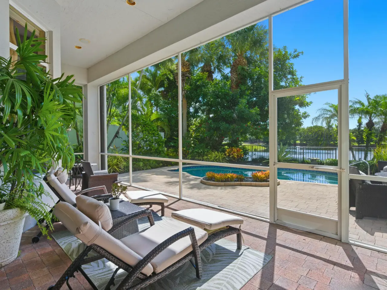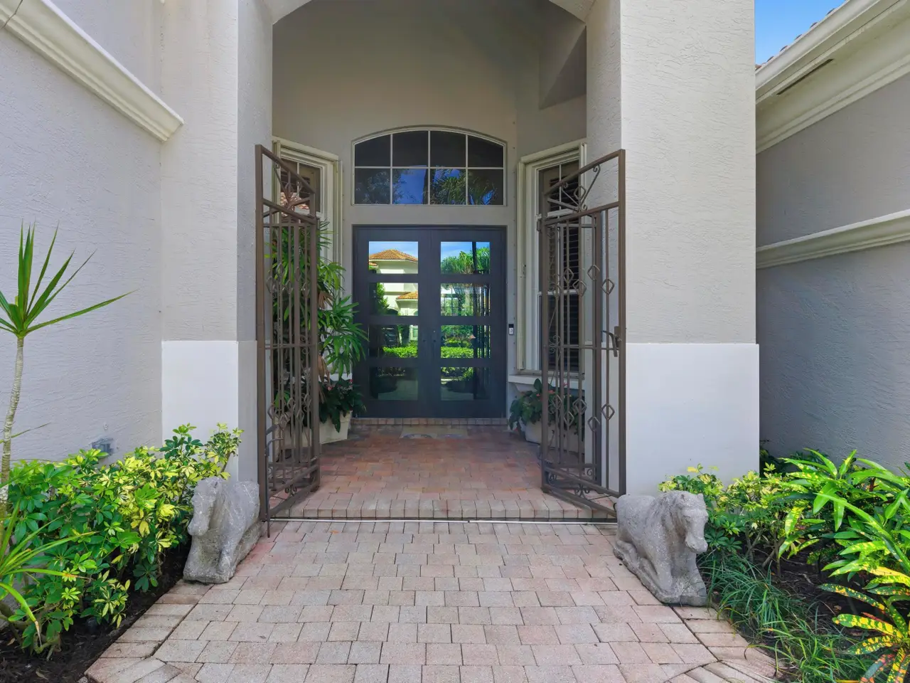Gracious home set in the very desirable Vizcaya Drive neighborhood in The Country Club at Mirasol. The home enjoys exceptional views, overlooking both the Sunrise golf course and a beautiful lake, offering a spectacular private setting. It's a true 3-bedroom, each with its own private bathroom, plus a guest bathroom and an office. Additional features include hurricane shutters installed in 2017, a Generac generator installed in 2020 with a 10-year warranty, and new hurricane impact-resistant front doors. A screened-in patio overlooks the wonderful views. In addition, a new refrigerator and dishwasher were installed in 2022, and an LG washer and dryer in 2019.This lovely home offers a social membership, which can be upgraded to a sports membership.