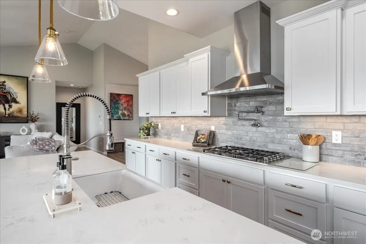 Enjoy sweeping views of Lake Chelan from this stunning 3bd/2bth 1,910sf rambler perfectly set on a 1.66 acre homesite. This home offers an open floor plan w/ abundant natural light & seamless indoor-outdoor living. The gourmet kitchen features quartz countertops, stainless steel appliances, spacious island & pantry. Entertaining is easy w/ the adjacent dining & living areas & a built-in bar. Sliding glass doors lead to a covered dining & lounge area, BBQ, fire pit & grassy lawn - all with panoramic lake views. The spacious primary suite features a walk-in closet & spa-like bath + 2 bedrooms & a den. The 3-car garage & RV Parking w/ hookups offer room for vehicles & lake toys. All just steps from Manson's many shops, restaurants & wineries.